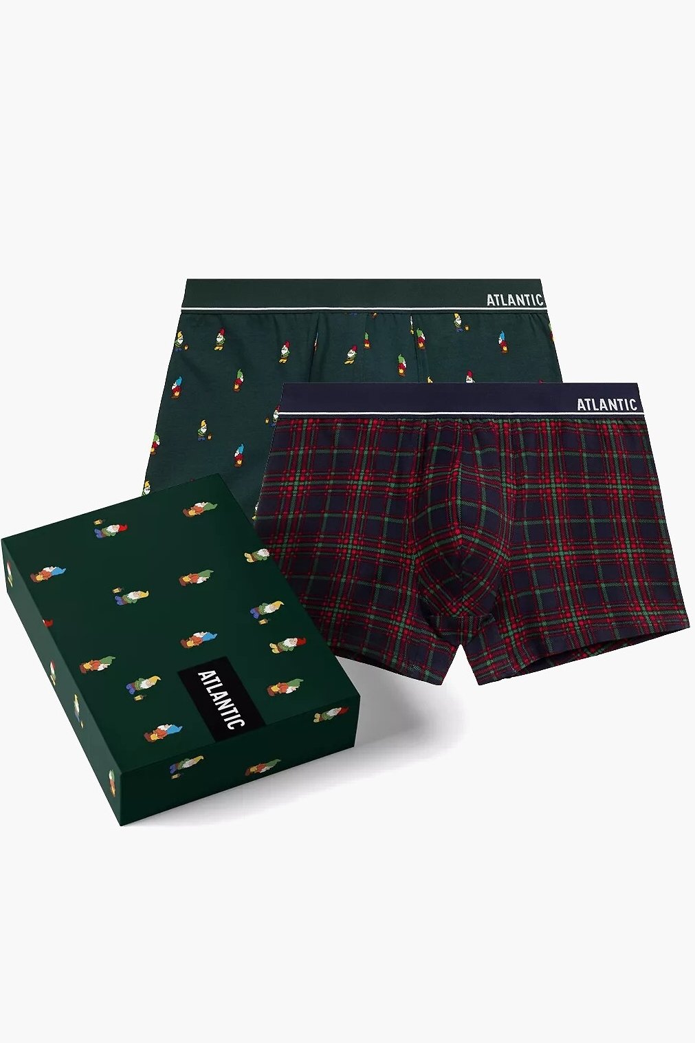 Pánské boxerky Atlantic spojují komfort, styl a špetku humoru. Vyrobené z měkké a pružné bavlny, perfektně se přizpůsobí tělu a zajistí celodenní pohodlí. Díky elastanu si zachovávají tvar i po mnoha praních. Široká guma v pase s logem Atlantic poskytuje jisté a pohodlné nošení bez tlaku. V sadě najdete dva originální vzory – tmavě zelený s vtipným potiskem tučňáků a klasický kostkovaný motiv v červených tónech. Oba modely působí elegantně a zároveň hravě, což z nich činí ideální volbu pro moderního muže. Balení v dárkové krabičce navíc z těchto boxerek dělá perfektní dárek s osobitým stylem.