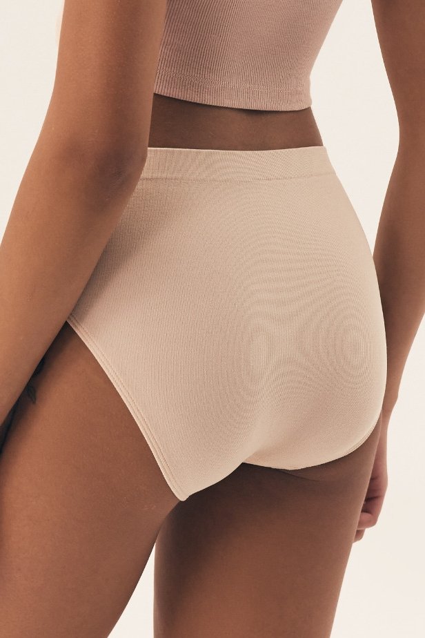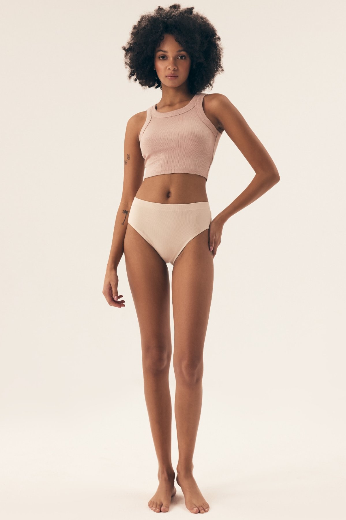 Tyto dámské kalhotky v klasickém střihu bikini jsou ideální volbou pro každodenní nošení. Vyrobené z jemně žebrované pleteniny příjemně obepínají tělo, zajišťují volnost pohybu a současně dodávají pocit lehkosti. Vyšší pas krásně podrží oblast bříška a lehce zabudované boky poskytují komfort i při celodenním nošení.