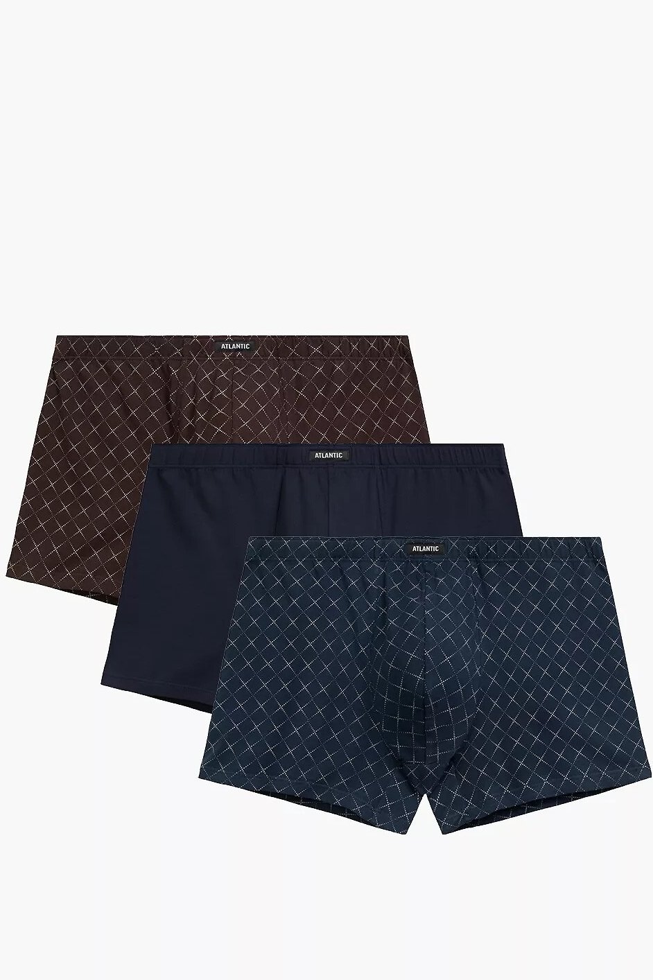 Pánské boxerky 3MH-216 spojují klasický styl s maximálním komfortem. Díky kombinaci bavlny a elastanu se dokonale přizpůsobí postavě a zachovají si tvar i po mnoha praních. Měkká látka je prodyšná a příjemná na dotek, elastický pas s decentní nášivkou drží prádlo spolehlivě na místě. V praktickém trojbalení najdete dvoje vzorované a jedny jednobarevné boxerky.