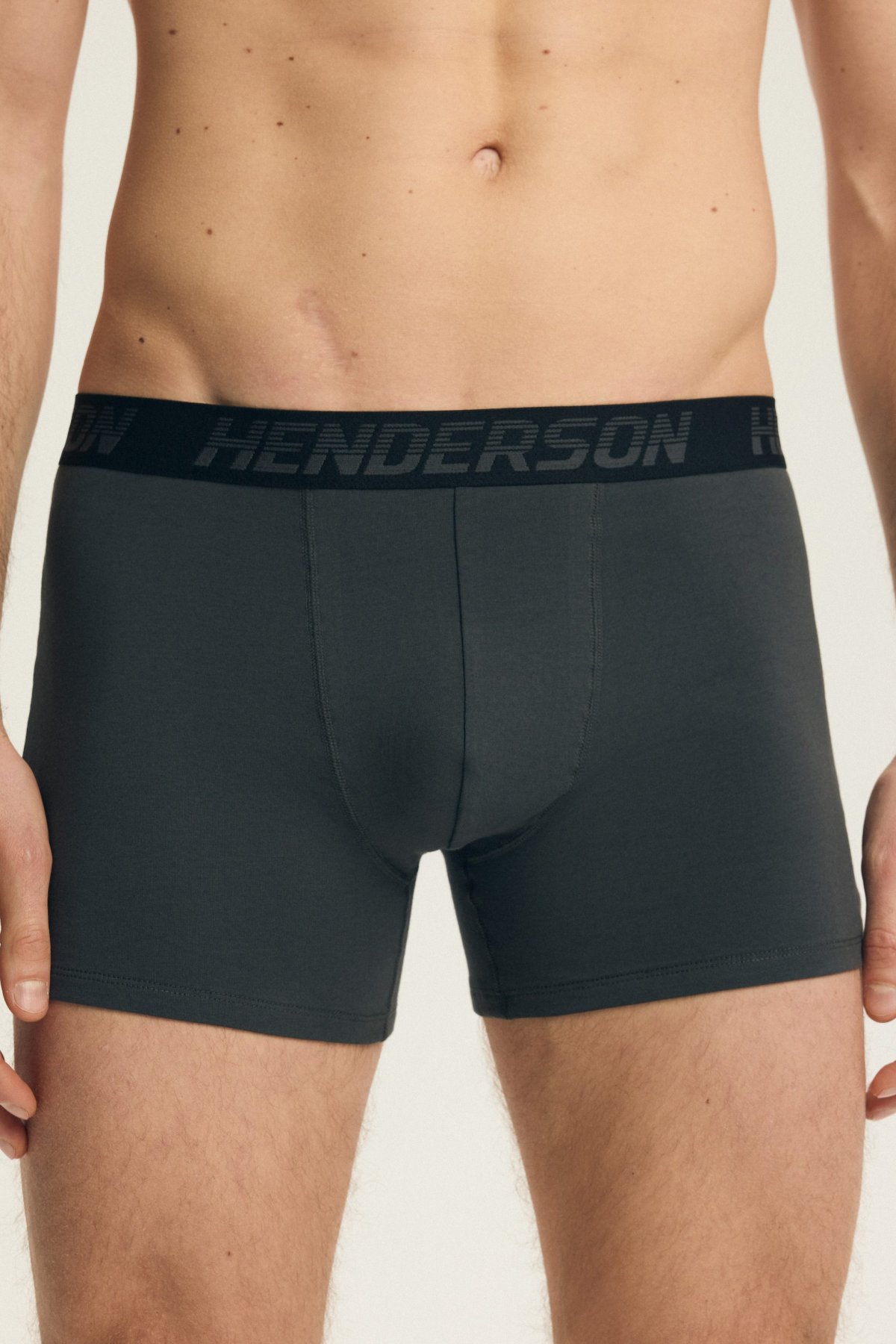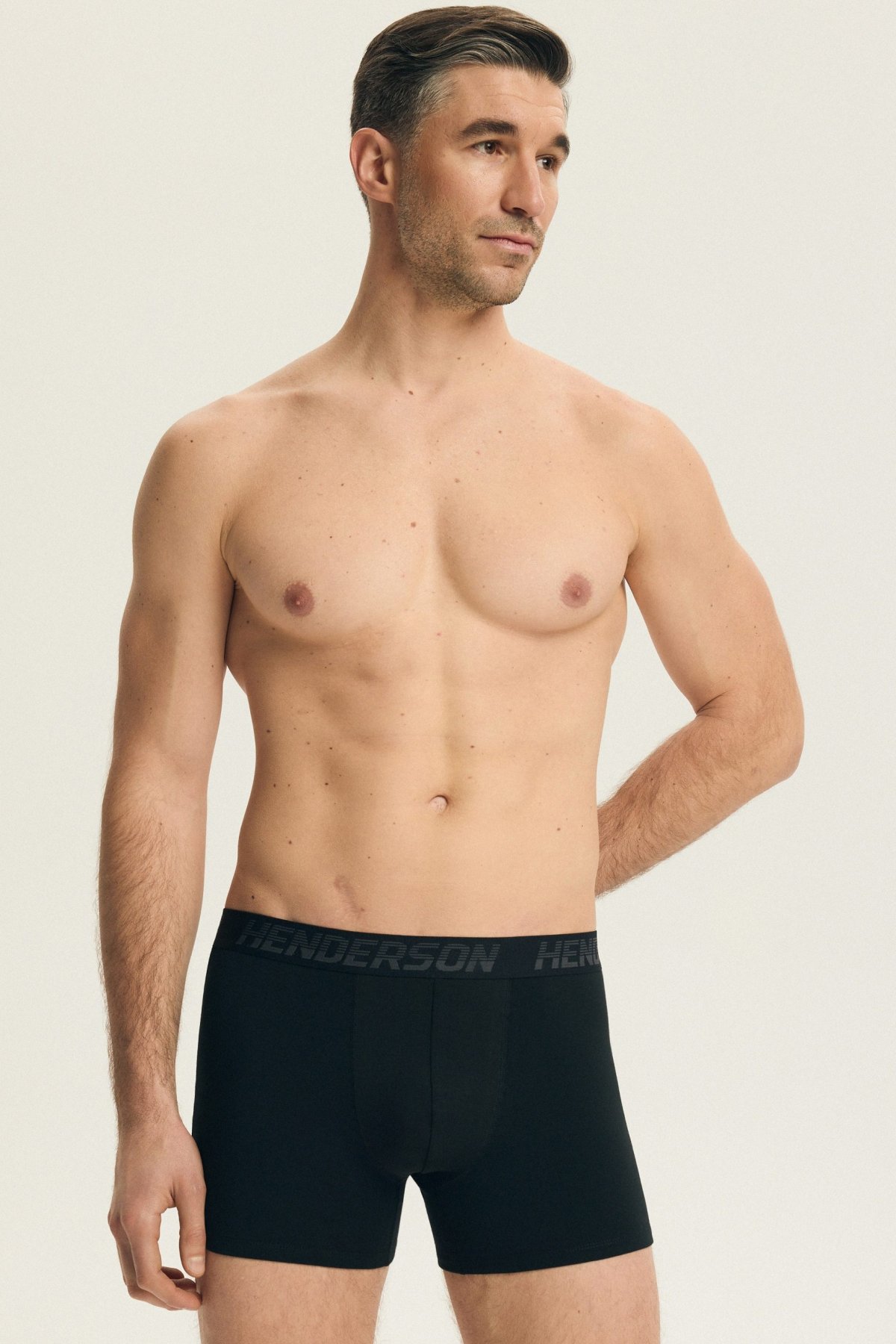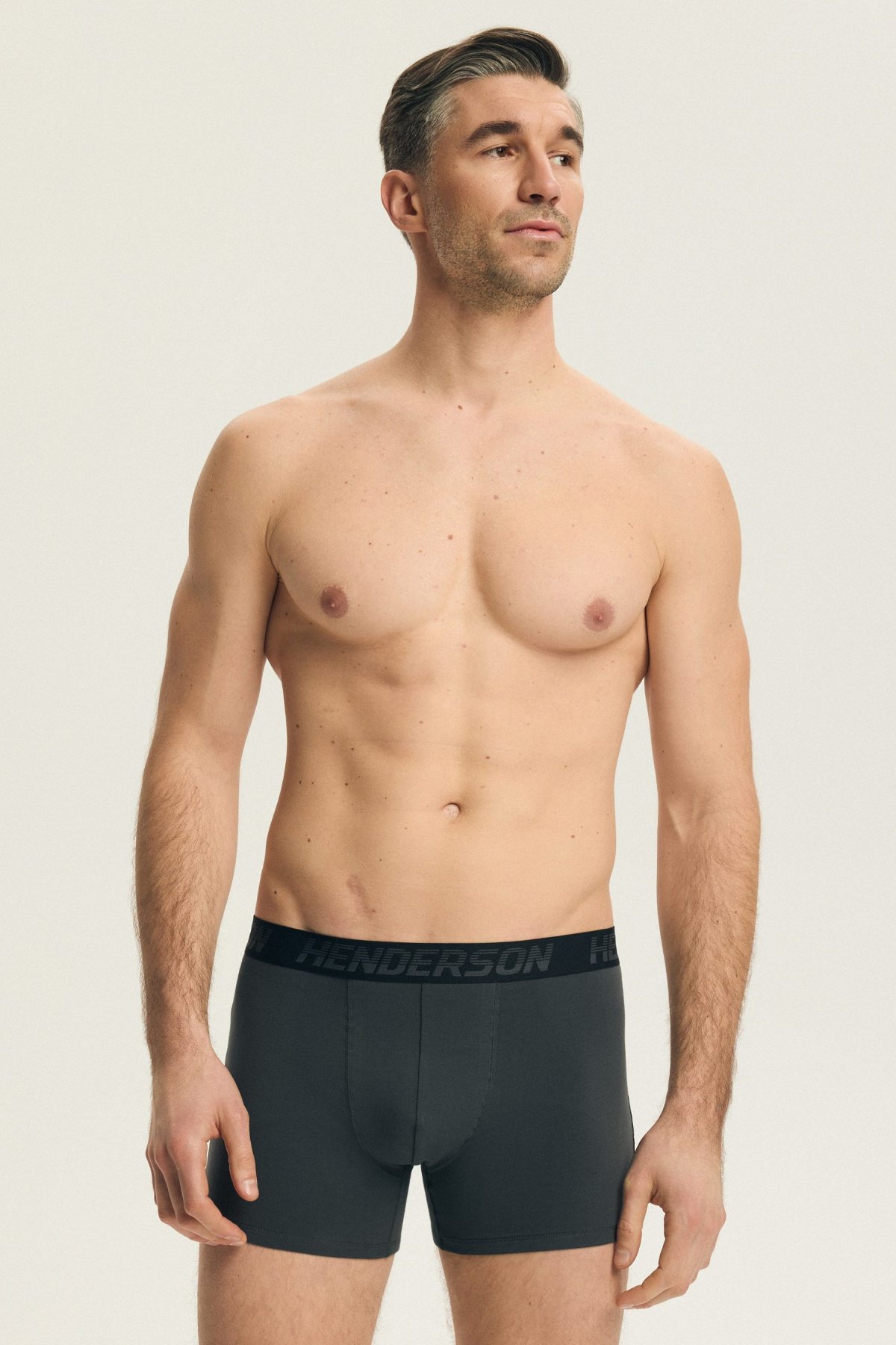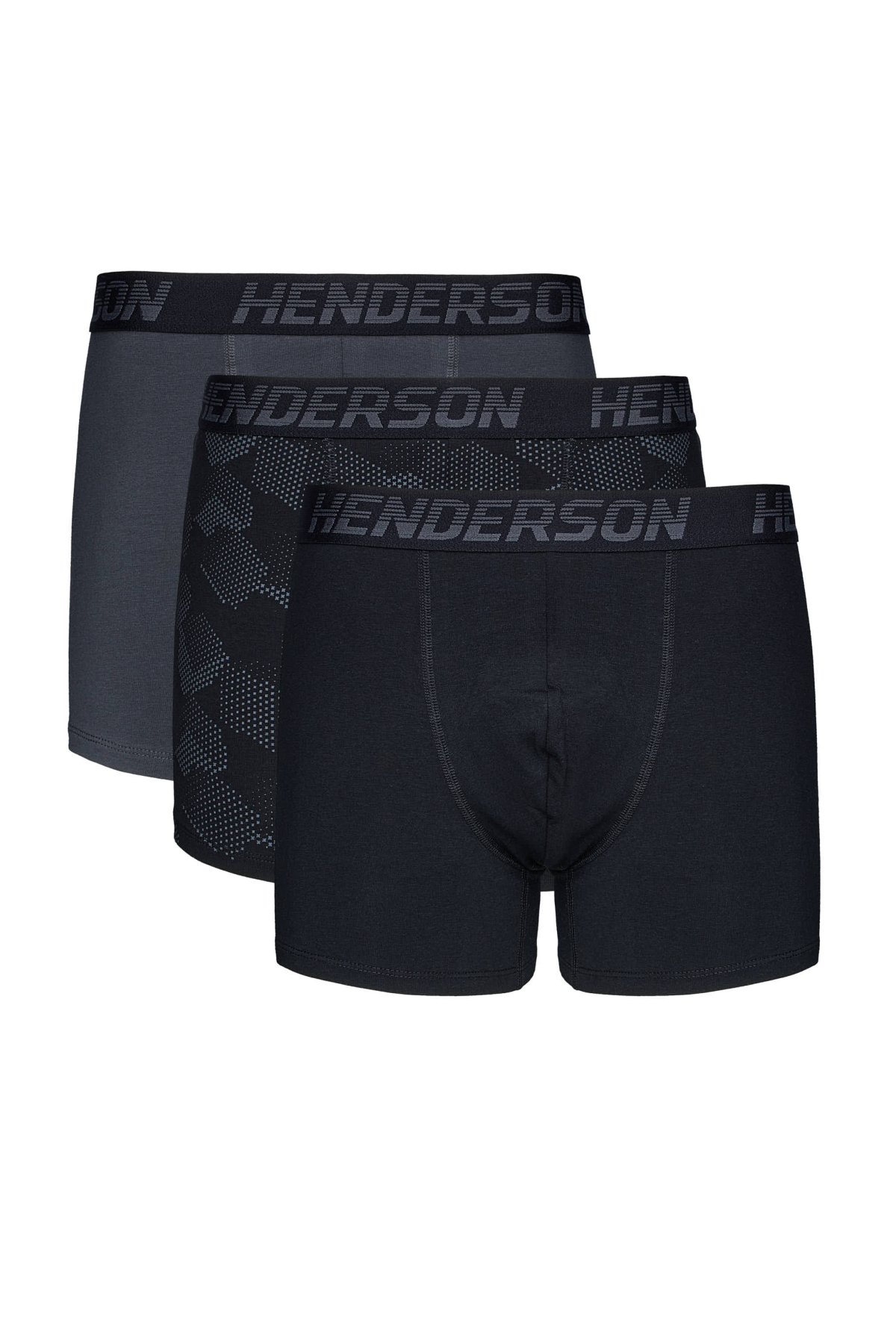 Pánské boxerky Henderson 44540 Bench jsou klasický model pro každodenní nošení. Kvalitní bavlna s příměsí elastanu je příjemná na těle, dobře se přizpůsobí a zároveň si drží tvar. Pohodlný střih doplňuje široká guma v pase s logem značky, která dobře sedí a podporuje komfort při nošení. Boxerky jsou balené po třech kusech v kombinaci černé a grafitové barvy