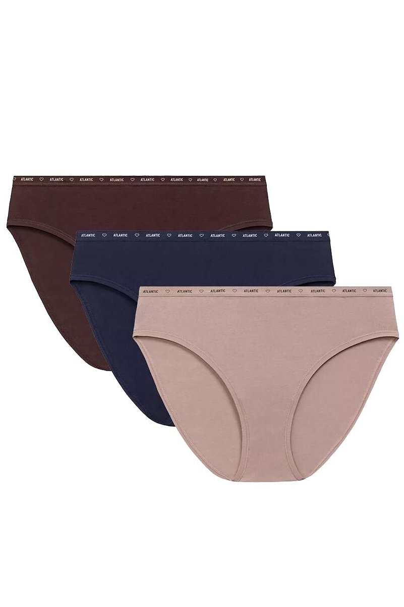 Kalhotky jsou baleny po třech kusech v elegantních barevných kombinacích – ideální pro ženy, které hledají stylové a funkční spodní prádlo pro každý den.