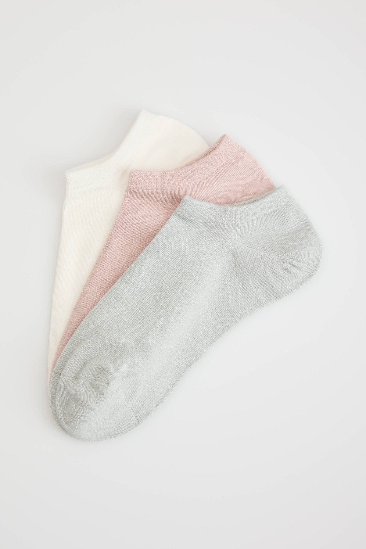Dámské ponožky Reya v balení po třech kusech jsou praktickým doplňkem pro běžné každodenní nošení. Materiál s vysokým podílem modalu je měkký, příjemný na dotek a pohodlně se nosí během dne. Kombinace krémové, modré a růžové barvy působí jemně a svěže, takže trojbalení snadno doplní základní výbavu ponožek o dobře kombinovatelné varianty. Příměs polyamidu a elastanu pomáhá lepšímu přizpůsobení a pohodlnému usazení na noze.