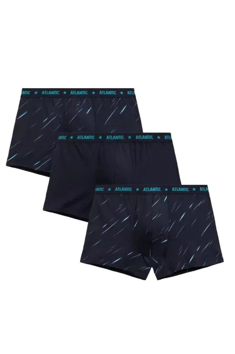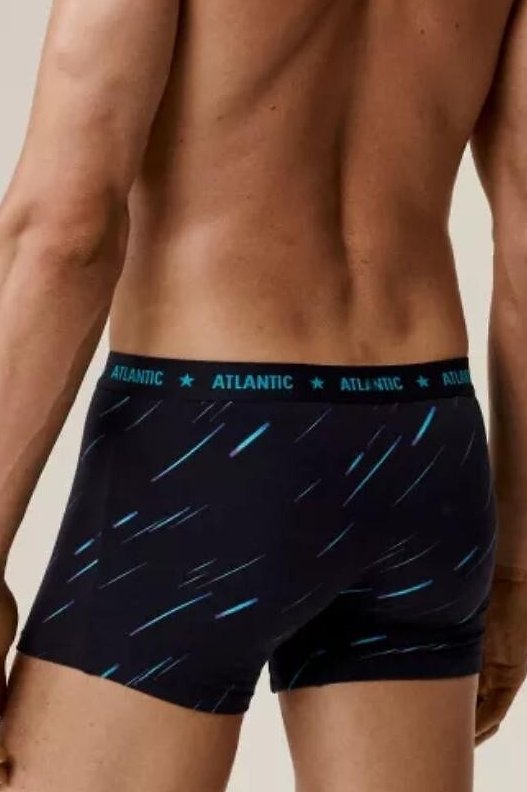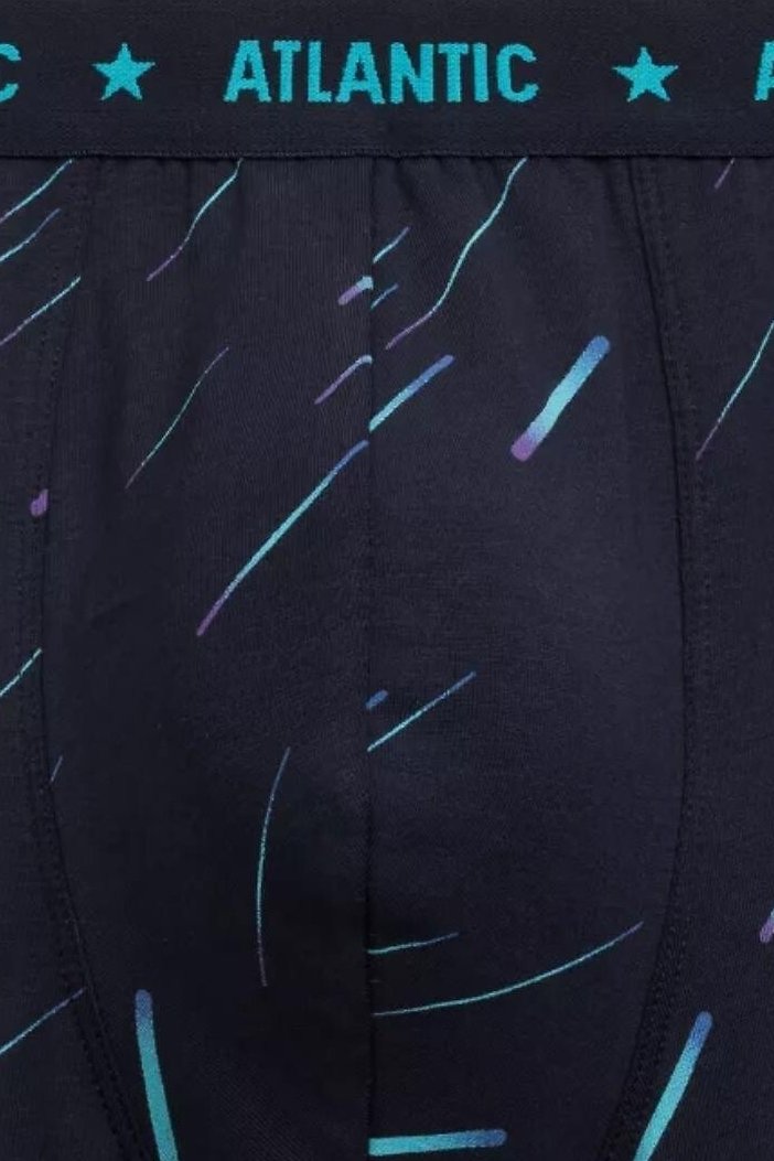 Pánské boxerky Atlantic v praktickém balení po třech kusech spojují moderní vzhled, vysoký komfort a kvalitu zpracování. Vyrobené z měkké, elastické bavlny, zaručují maximální pohodlí při celodenním nošení i během sportovních aktivit. Pružný materiál se dokonale přizpůsobí postavě, zatímco široká guma v pase drží prádlo na místě bez nepříjemného tlaku. Elegantní tmavý podklad doplňuje kontrastní potisk s jemnými liniemi a hvězdnými motivy, které dodávají modelu energický, sportovní charakter. Tyto boxerky jsou ideální volbou pro muže, kteří hledají spojení stylu, funkčnosti a pohodlí v každém pohybu.