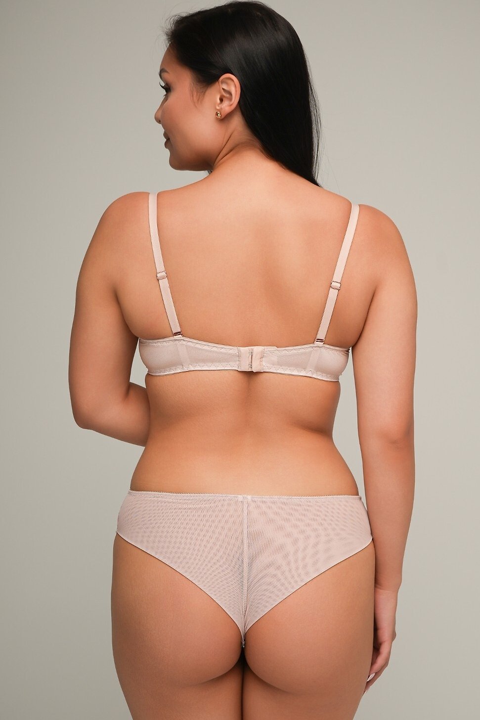 Brazilky, které představují ideální rovnováhu mezi komfortem a ženskou přitažlivostí. Hladké mikrovlákno na přední straně vytváří čistý, elegantní vzhled, zatímco zadní část z dvojité síťoviny působí lehce a svůdně, aniž by se kalhotky rýsovaly pod oblečením. Díky preciznímu střihu se krásně přizpůsobují postavě a zdůrazňují křivky. Bavlněný klínek zajišťuje celodenní pohodlí a prodyšnost.
