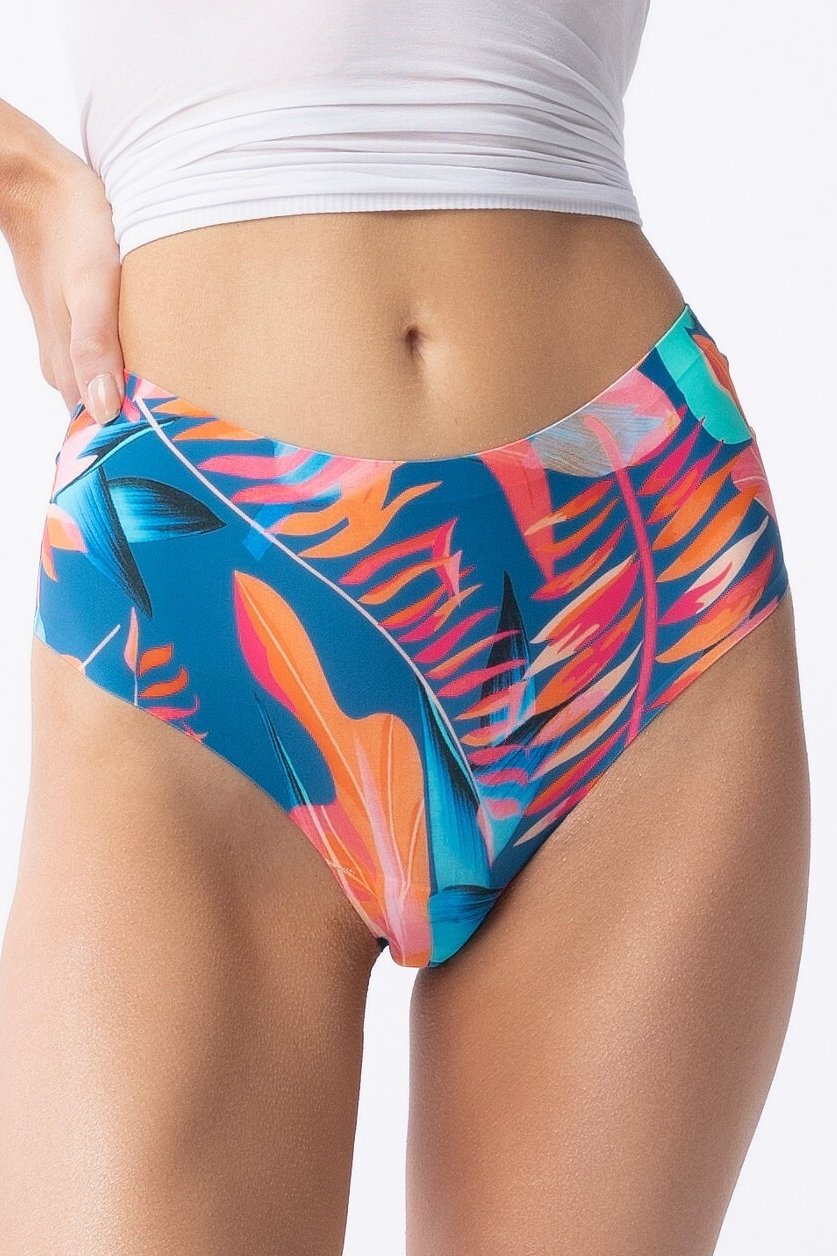 Brazilky Jungle vás přenesou do srdce tropické džungle. Jejich jedinečný potisk, inspirovaný barvami exotických papoušků, spojuje hluboké odstíny modré symbolizující tajemství a hloubku s živými červenými akcenty dodávajícími energii a vášeň.