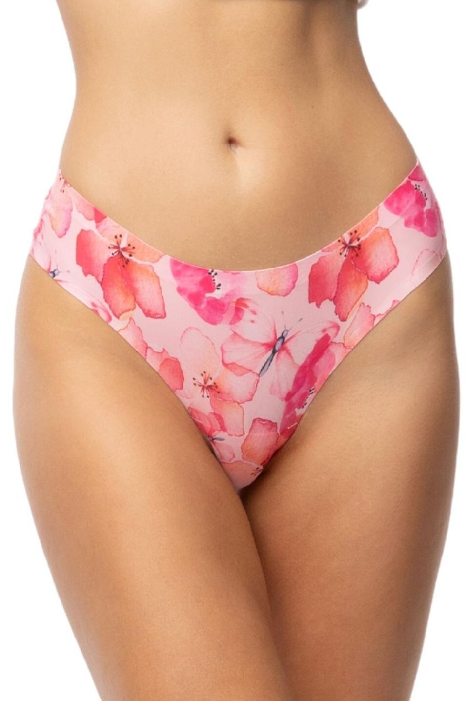 Zadní šev jemně zvýrazňuje linii hýždí, zatímco lepené okraje pomáhají udržet hladký vzhled pod oblečením. Print Mallow kombinuje pastelové tóny růžové a fuchsiové s květinovým motivem, takže působí jemně, ale ne fádně. Příjemný detail představuje také bavlněný klínek. Hot stamping místo klasické etikety ocení i ženy citlivé na rušivé detaily při nošení. Složení: 89 % polyamid, 10 % elastan, 1 % bavlna.