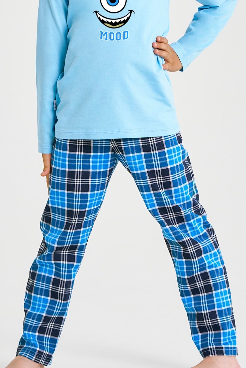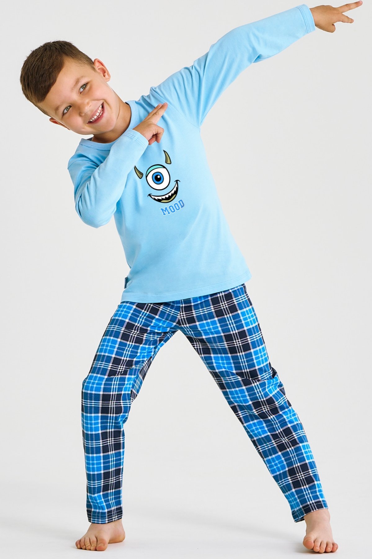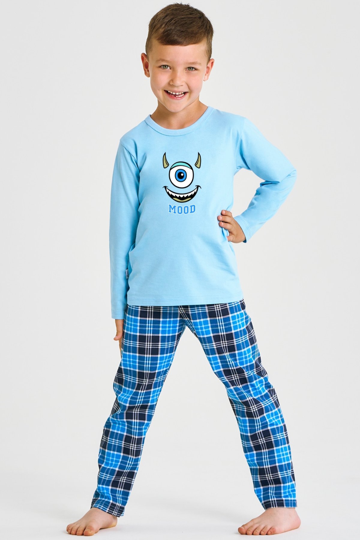 Chlapecké pyžamo Joel. Hravý design a vysoký komfort pro vaše děti. Měkká bavlna je ideální pro celoroční nošení – zajistí volné proudění vzduchu, odvádí vlhkost a příjemně hřeje během chladnějších nocí. Triko s dlouhým rukávem zdobí veselý barevný potisk, který potěší každého malého spáče. Kostkované kalhoty s pružnou gumou v pase se pohodlně přizpůsobí postavě a neomezují v pohybu. Pyžamo je perfektní pro každodenní spánek i domácí pohodu – hebké, praktické a vyrobené s tou největší péčí.