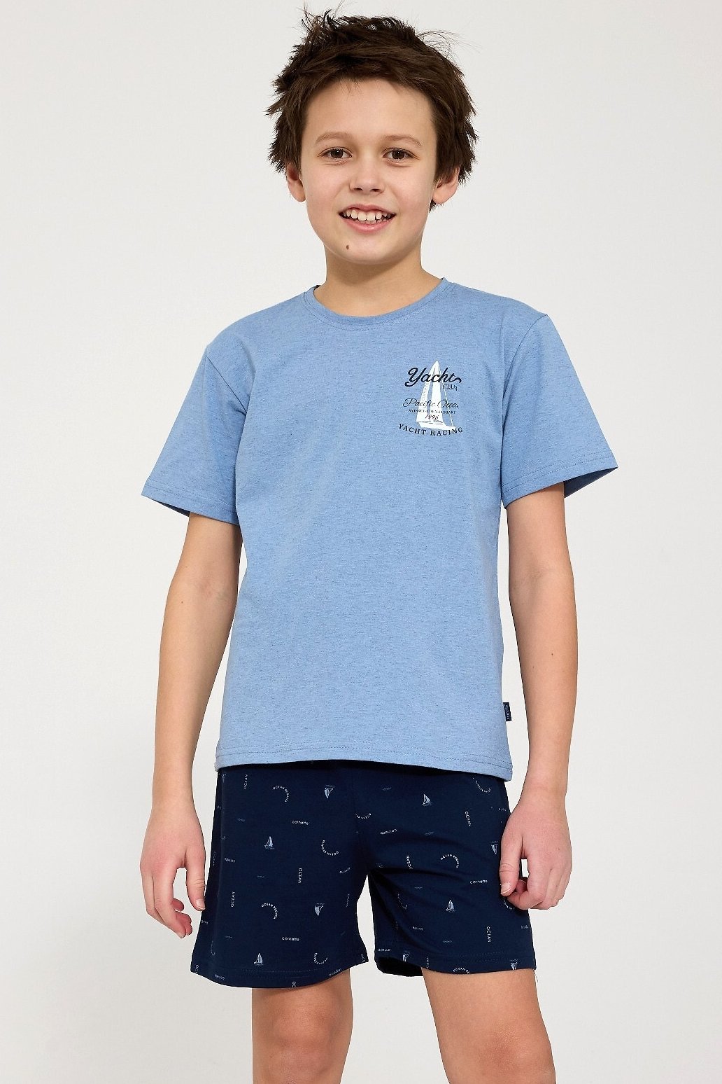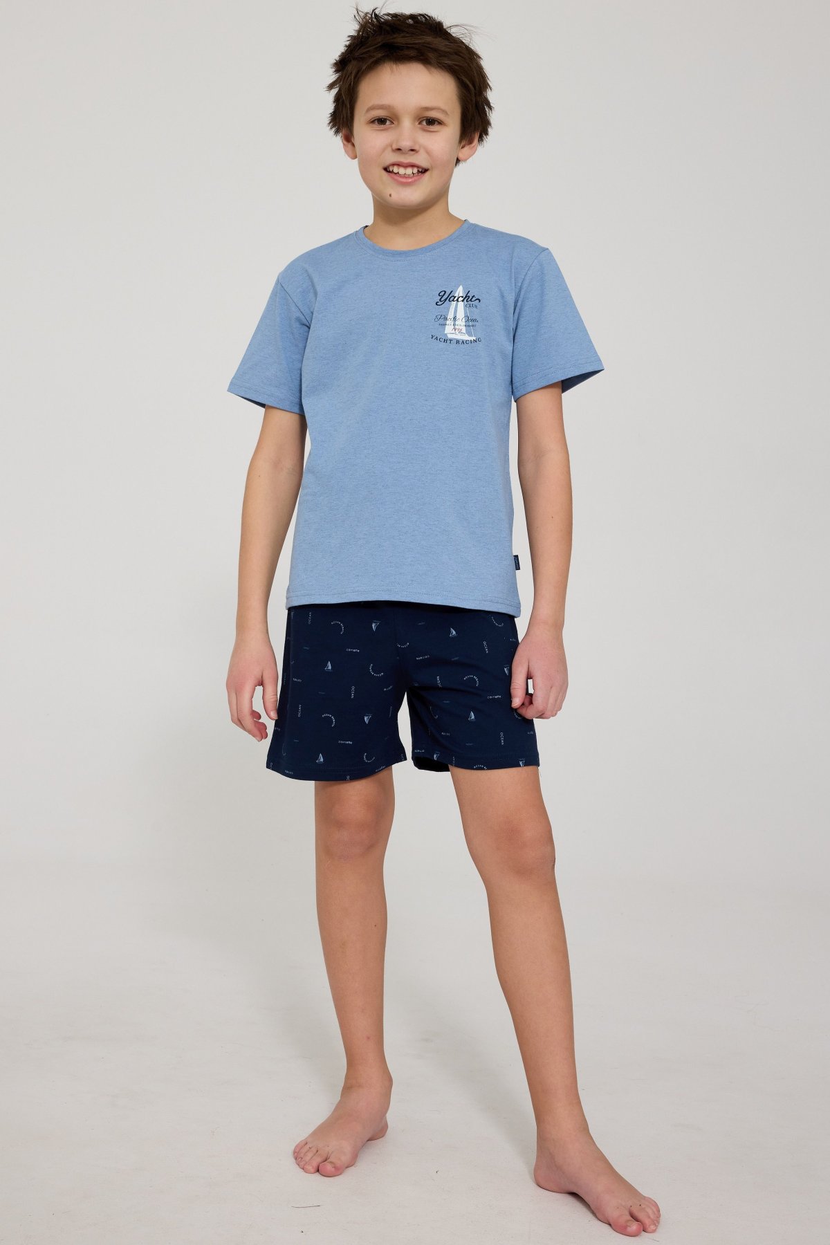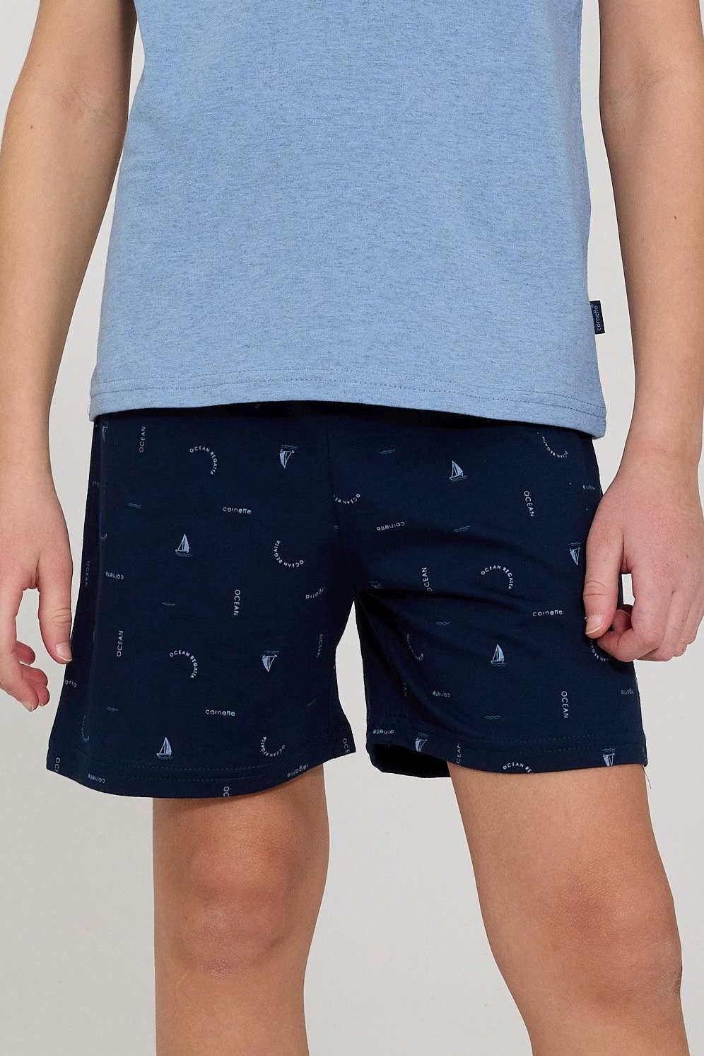 Chlapecké pyžamo Pacific je ideální pro kluky, kteří mají rádi pohodlí a svěží styl. Tričko s krátkým rukávem zdobí barevný motiv inspirovaný mořem, který pyžamu dodává letní, energický vzhled. Vzorované šortky se skvěle doplňují s horním dílem a poskytují volnost pohybu i během aktivního spánku. Díky příjemnému, měkkému materiálu je pyžamo lehké, prodyšné a velmi pohodlné. Stylový komplet, který se hodí na teplé noci i na domácí odpočinek – navíc zabalený v krabičce, ideální také jako dárek pro malé cestovatele a milovníky moře.