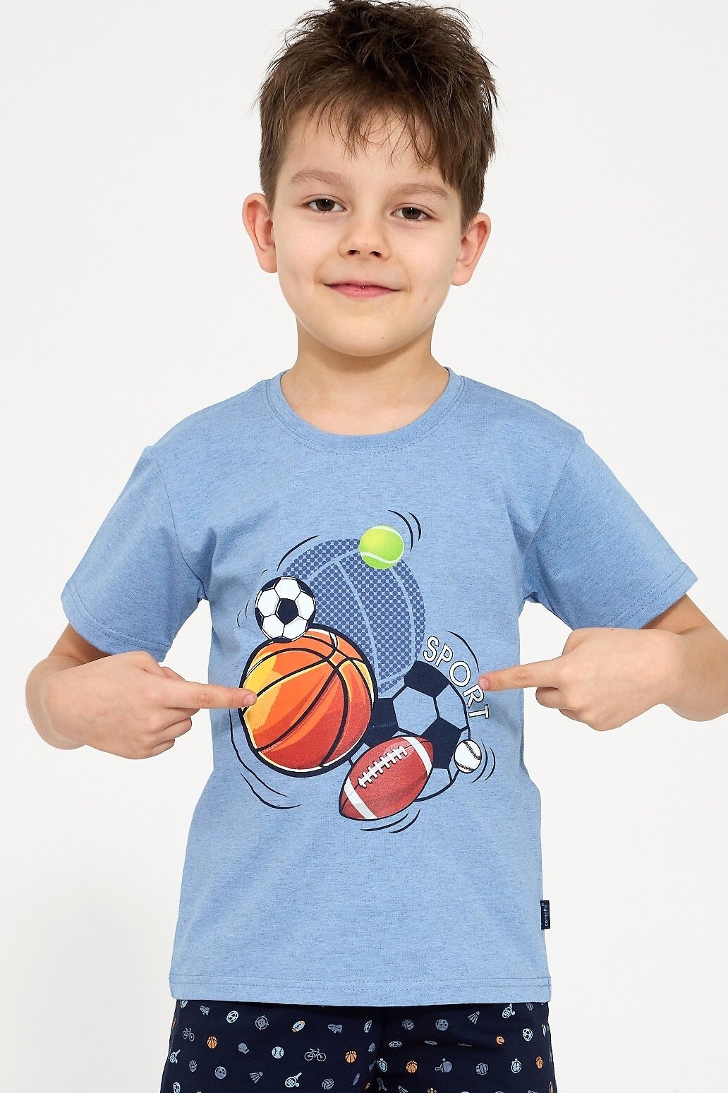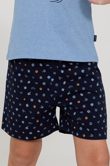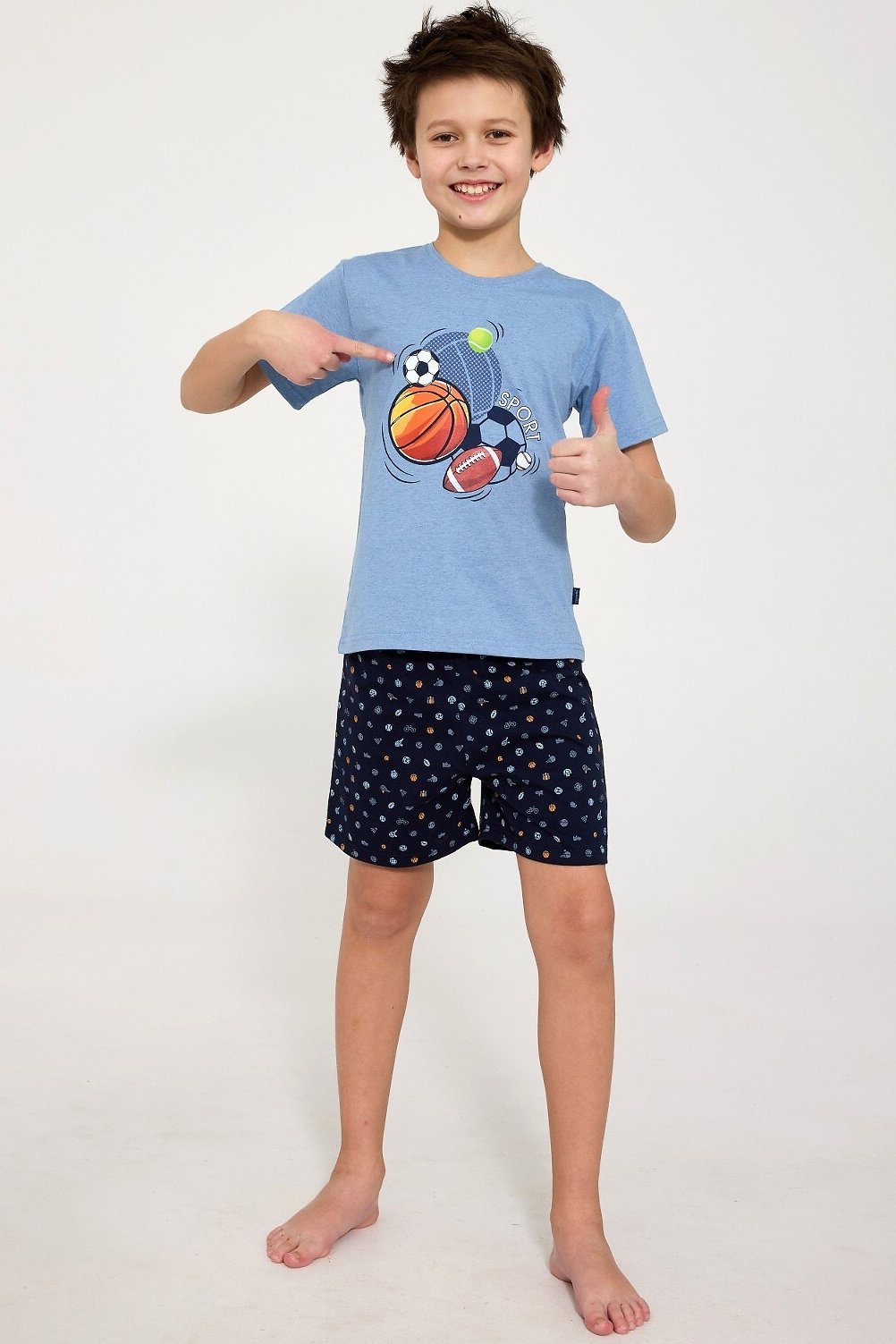 Chlapecké pyžamo Sport je ideální pro aktivní chlapce, kteří chtějí pohodlně spát a zároveň vypadat stylově. Vyrobené z měkké, kvalitní bavlny, poskytuje volnost pohybu a maximální komfort během noci. Tričko s krátkým rukávem zdobí výrazný sportovní potisk, který dodává pyžamu energický a moderní vzhled. Krátké šortky s hravým vzorem perfektně ladí s tričkem a zajišťují pohodlí i v teplejších dnech. Pyžamo je zabalené v krabičce, takže se skvěle hodí také jako dárek. Praktický, měkký a veselý model, který se jistě stane oblíbeným kouskem v dětském šatníku.