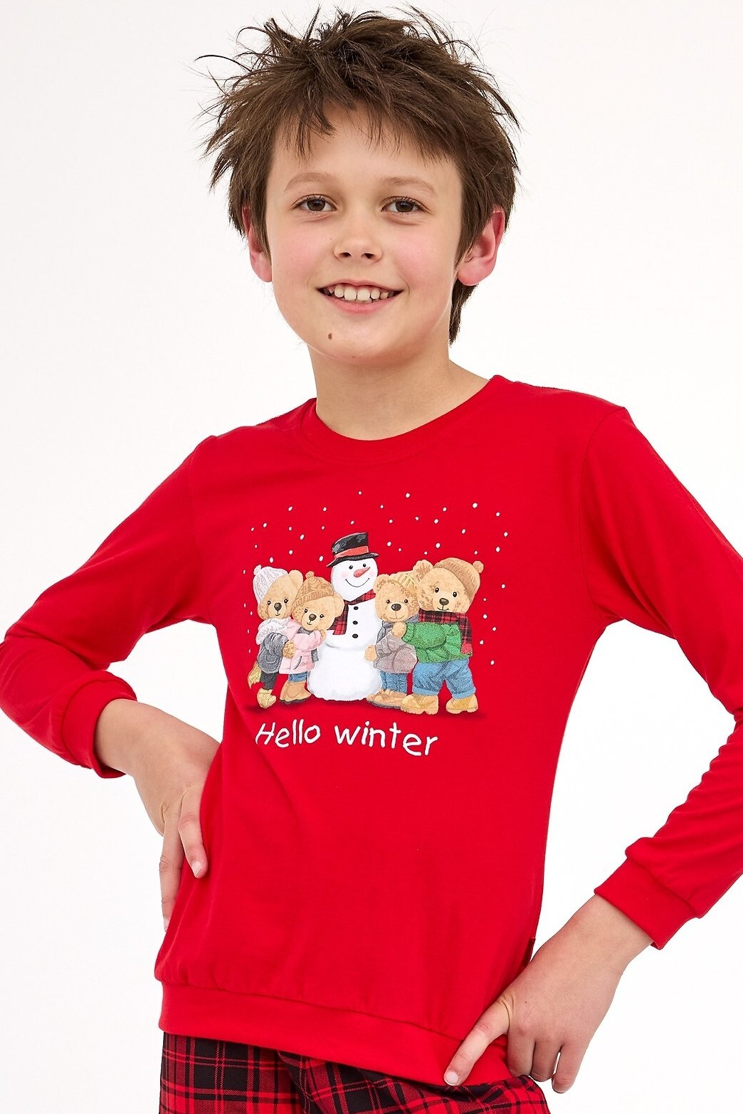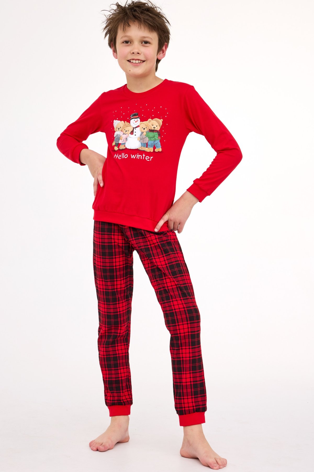 Chlapecké pyžamo Young Bears vnese do zimních večerů hřejivou sváteční atmosféru. Hebká bavlna poskytuje maximální pohodlí a volnost pohybu, zatímco roztomilý motiv medvídků a kostkované kalhoty ladí s kouzlem Vánoc. Ideální volba pro klidné, pohádkové noci i rodinné sváteční ráno.