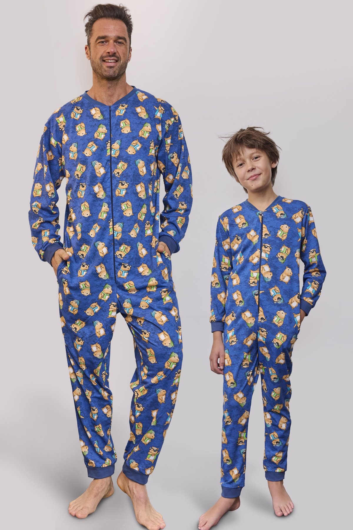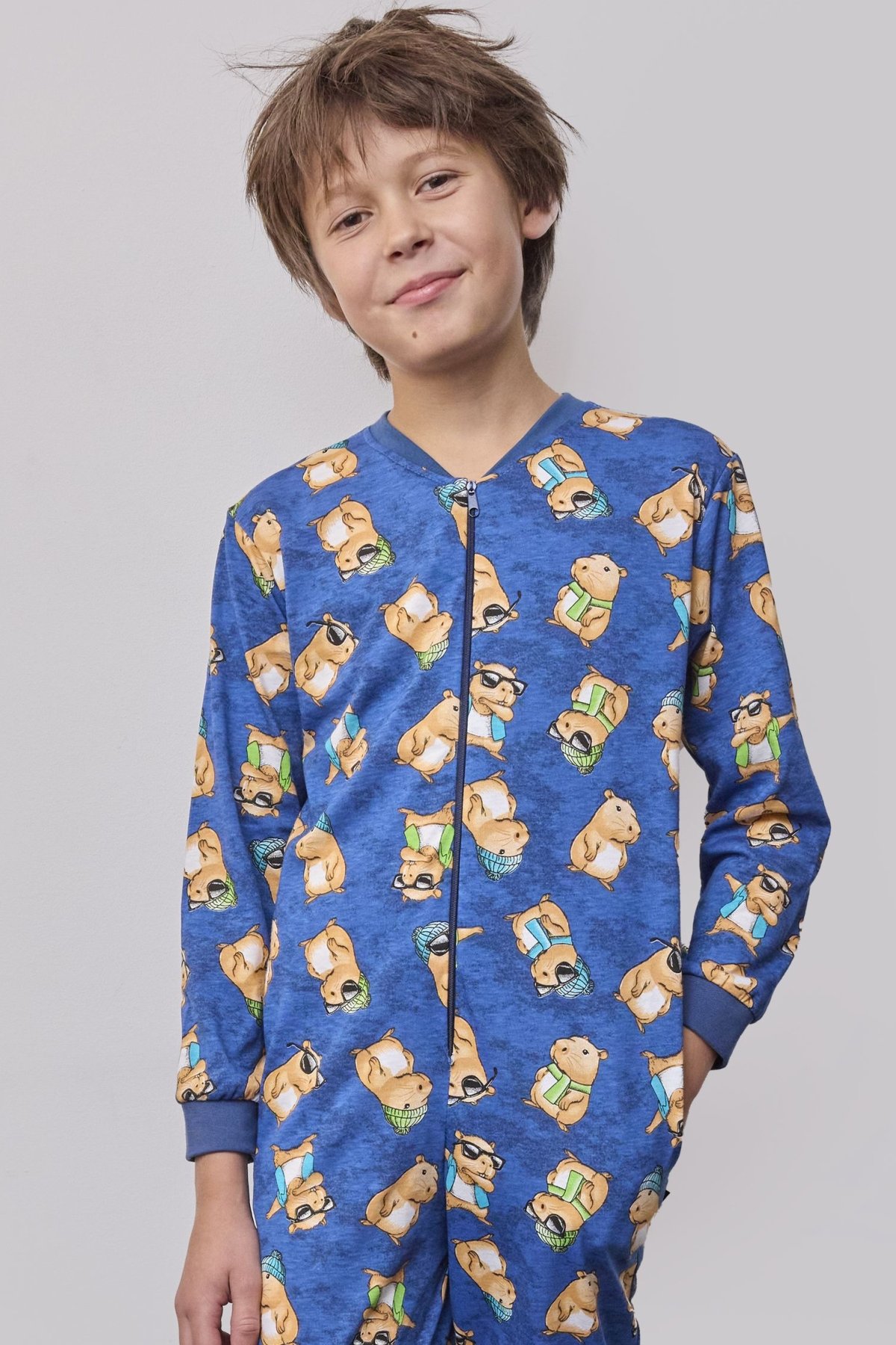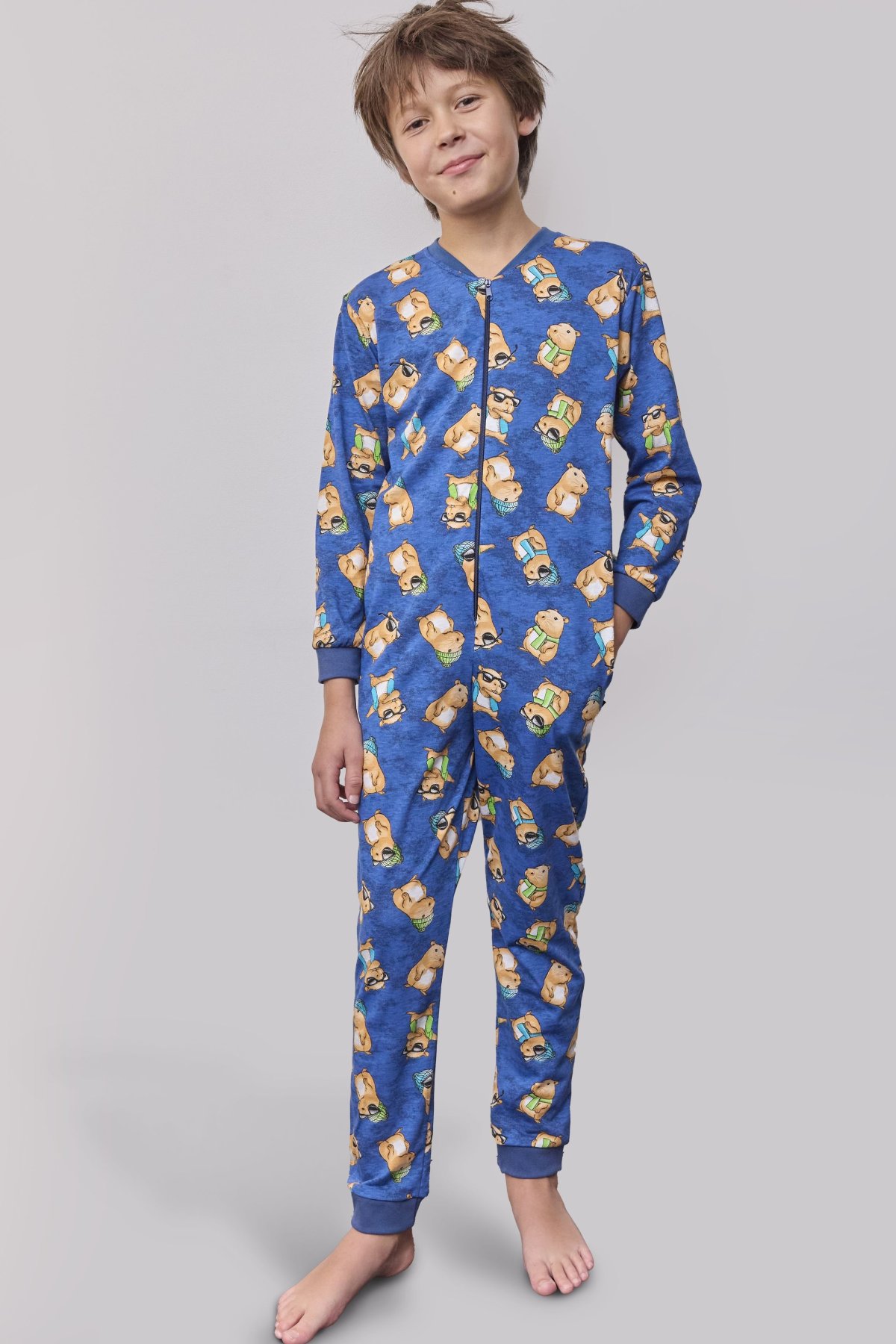 Chlapecký overal Capybara 2 spojuje pohodlí, hravost a funkční design. Vyrobený z měkké bavlny, zaručuje příjemné nošení a komfort při spánku i domácím lenošení. Dlouhé rukávy a nohavice s elastickými náplety udržují teplo, zatímco praktický zip usnadňuje oblékání. Vtipný potisk s kapybarou dodává modelu veselý a hravý charakter. Overal je doplněn postranními kapsami, ideálními na drobnosti nebo zahřátí rukou. Tento model je perfektní volbou pro chladnější období – zaručuje pohodlí, volnost pohybu i úsměv na tváři před spaním.