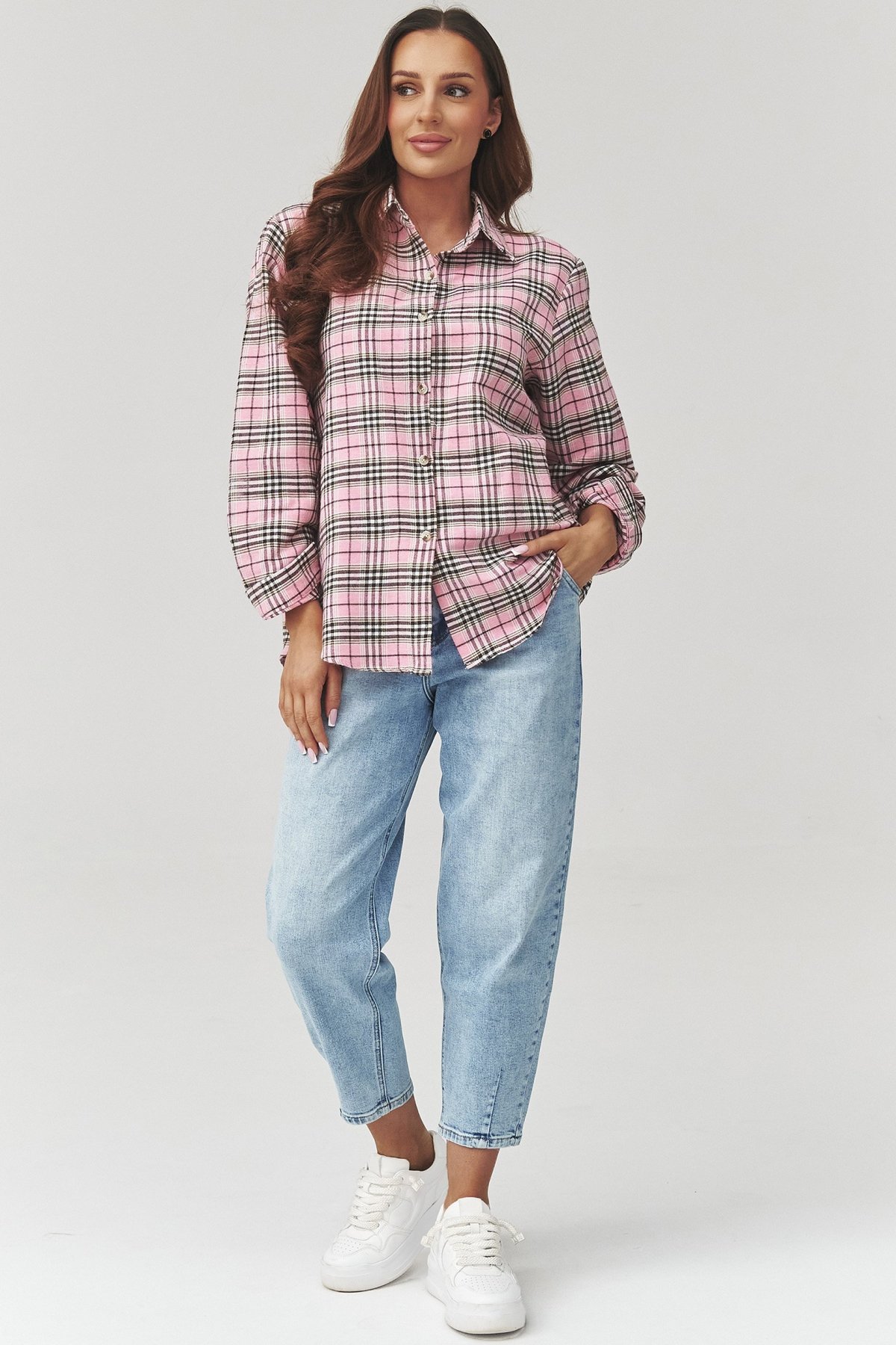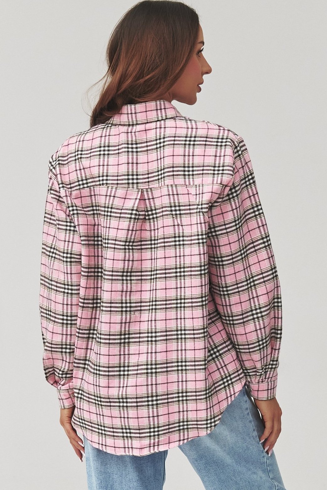 Dámská košile růžové barvy je moderní interpretací klasického kostkovaného stylu. Díky uvolněnému střihu a prodlouženému zadnímu dílu působí ležérně, ale zároveň elegantně. Jemná, měkká tkanina příjemně obepíná tělo a poskytuje komfort po celý den. Košile se skvěle hodí k džínům, legínám nebo jako lehká vrchní vrstva přes tričko. Je ideálním základem pro neformální i městské outfity — můžete ji nosit rozepnutou, zapnutou nebo přepásanou páskem v pase. Tento univerzální model spojuje pohodlí, ženský šarm a nadčasový design, díky čemuž se stane oblíbeným kouskem pro celoroční nošení.