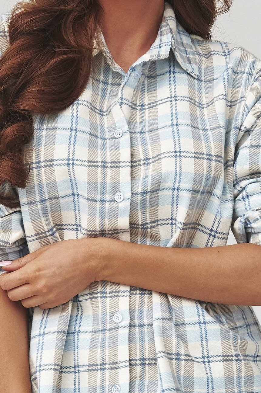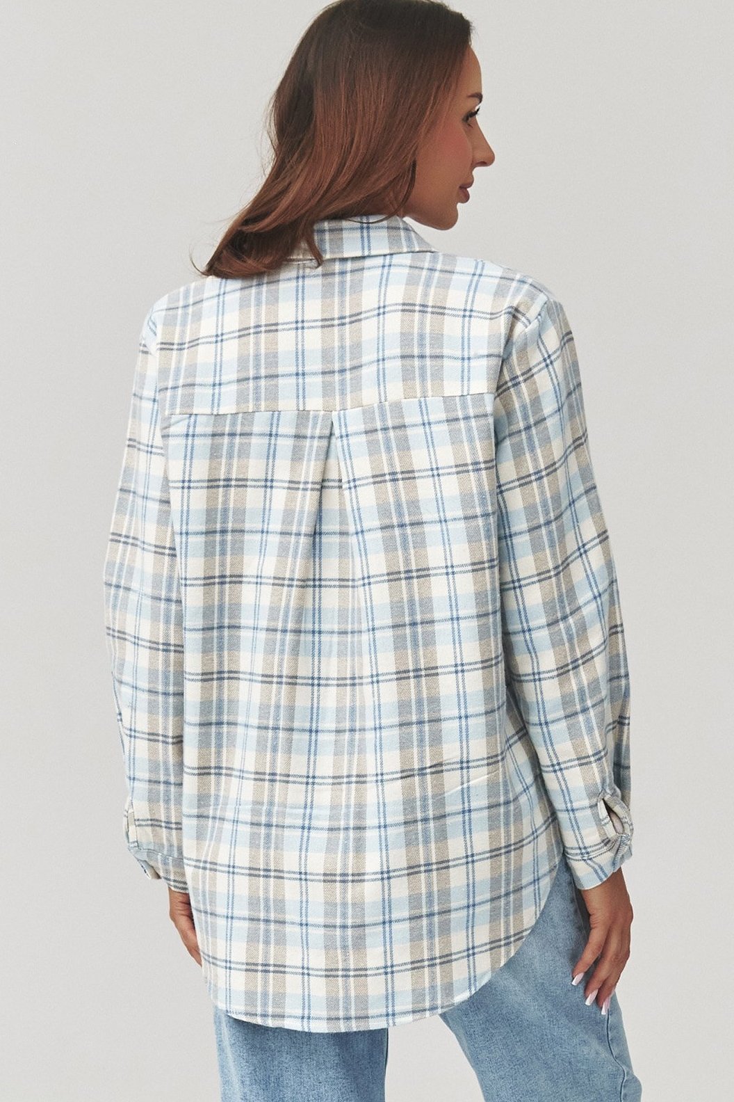 Dámská košile světle modré barvy je moderní interpretací klasického kostkovaného stylu. Díky uvolněnému střihu a prodlouženému zadnímu dílu působí ležérně, ale zároveň elegantně. Jemná, měkká tkanina příjemně obepíná tělo a poskytuje komfort po celý den. Košile se skvěle hodí k džínům, legínám nebo jako lehká vrchní vrstva přes tričko. Je ideálním základem pro neformální i městské outfity — můžete ji nosit rozepnutou, zapnutou nebo přepásanou páskem v pase. Tento univerzální model spojuje pohodlí, ženský šarm a nadčasový design, díky čemuž se stane oblíbeným kouskem pro celoroční nošení.