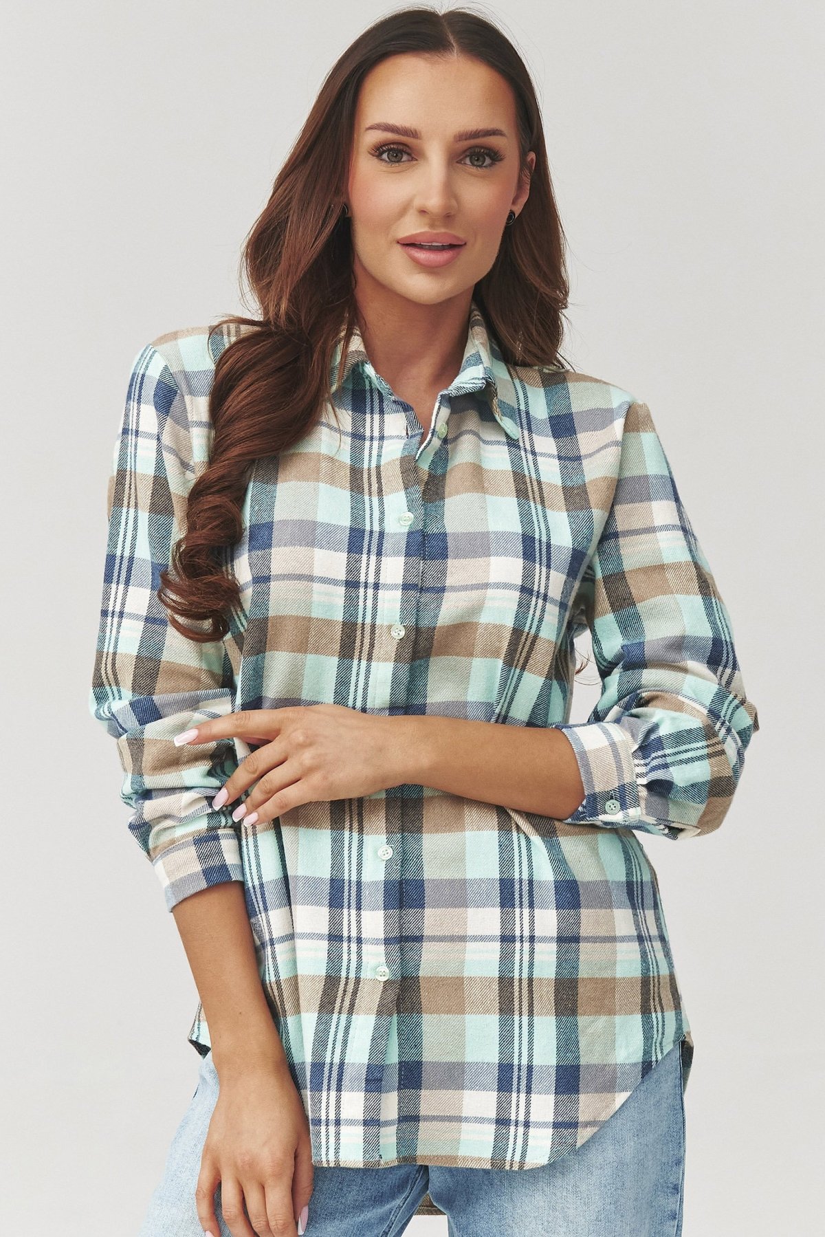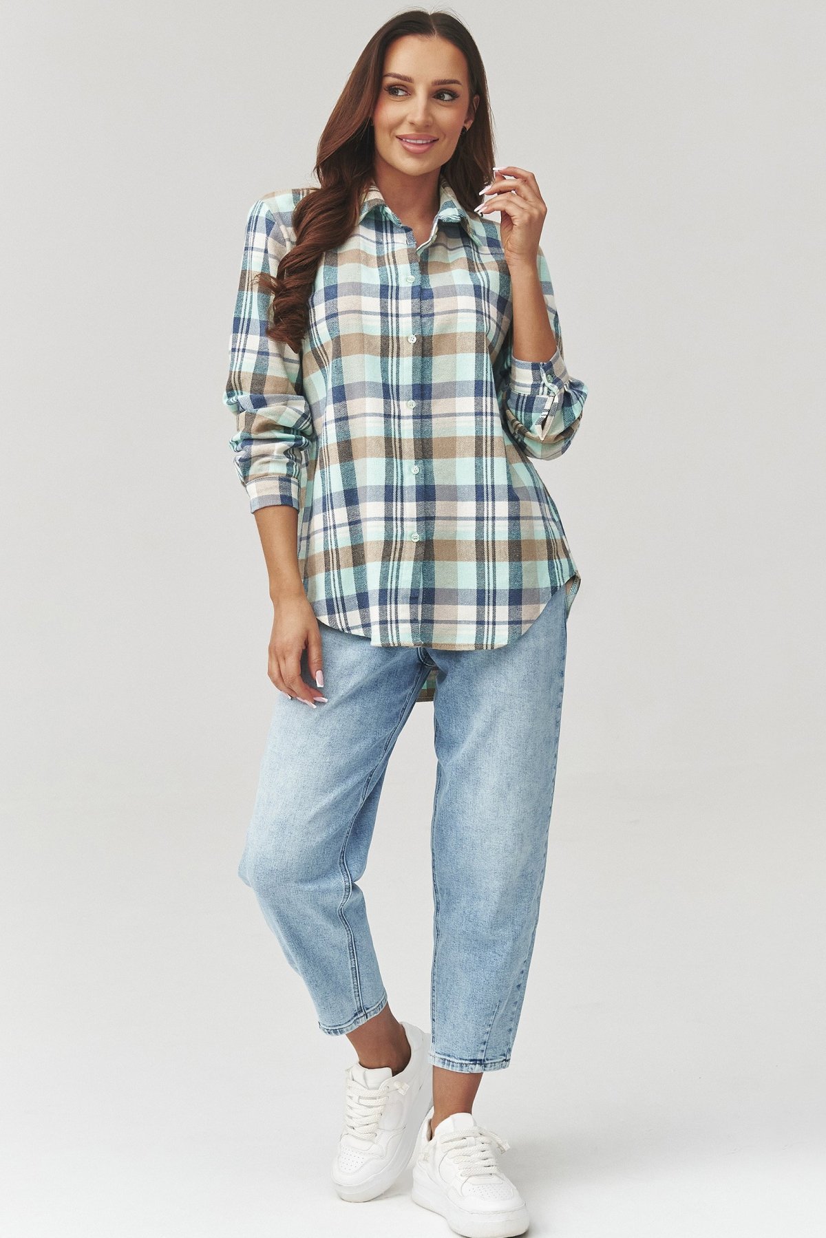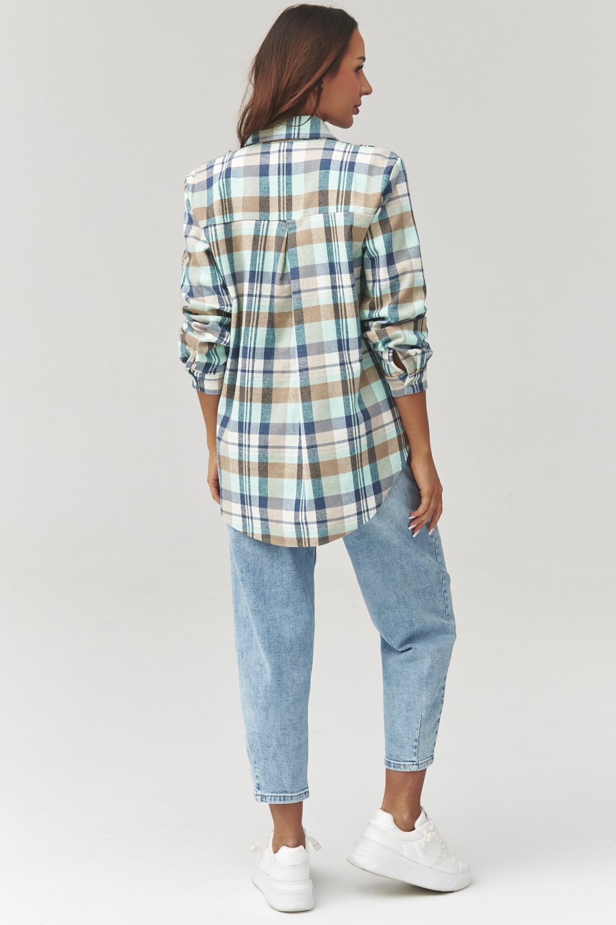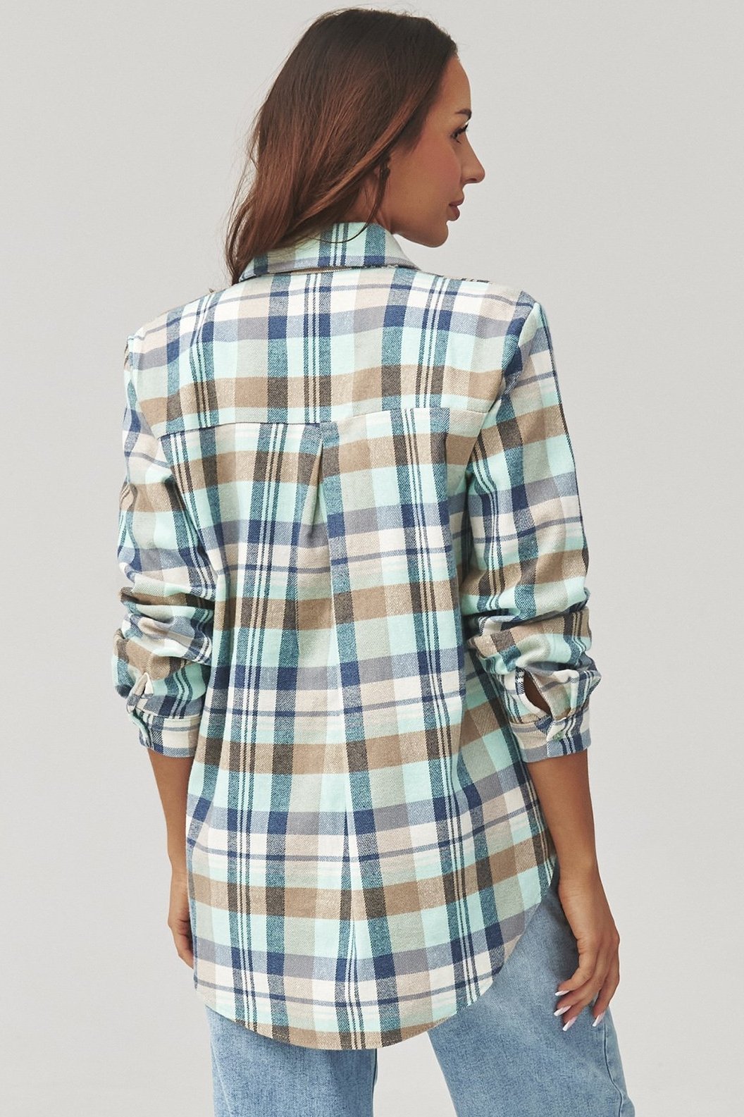 Dámská košile v modrých, zelených a béžových tónech. Je moderní interpretací klasického kostkovaného stylu. Díky uvolněnému střihu a prodlouženému zadnímu dílu působí ležérně, ale zároveň elegantně. Jemná, měkká tkanina příjemně obepíná tělo a poskytuje komfort po celý den. Košile se skvěle hodí k džínům, legínám nebo jako lehká vrchní vrstva přes tričko. Je ideálním základem pro neformální i městské outfity — můžete ji nosit rozepnutou, zapnutou nebo přepásanou páskem v pase. Tento univerzální model spojuje pohodlí, ženský šarm a nadčasový design, díky čemuž se stane oblíbeným kouskem pro celoroční nošení.