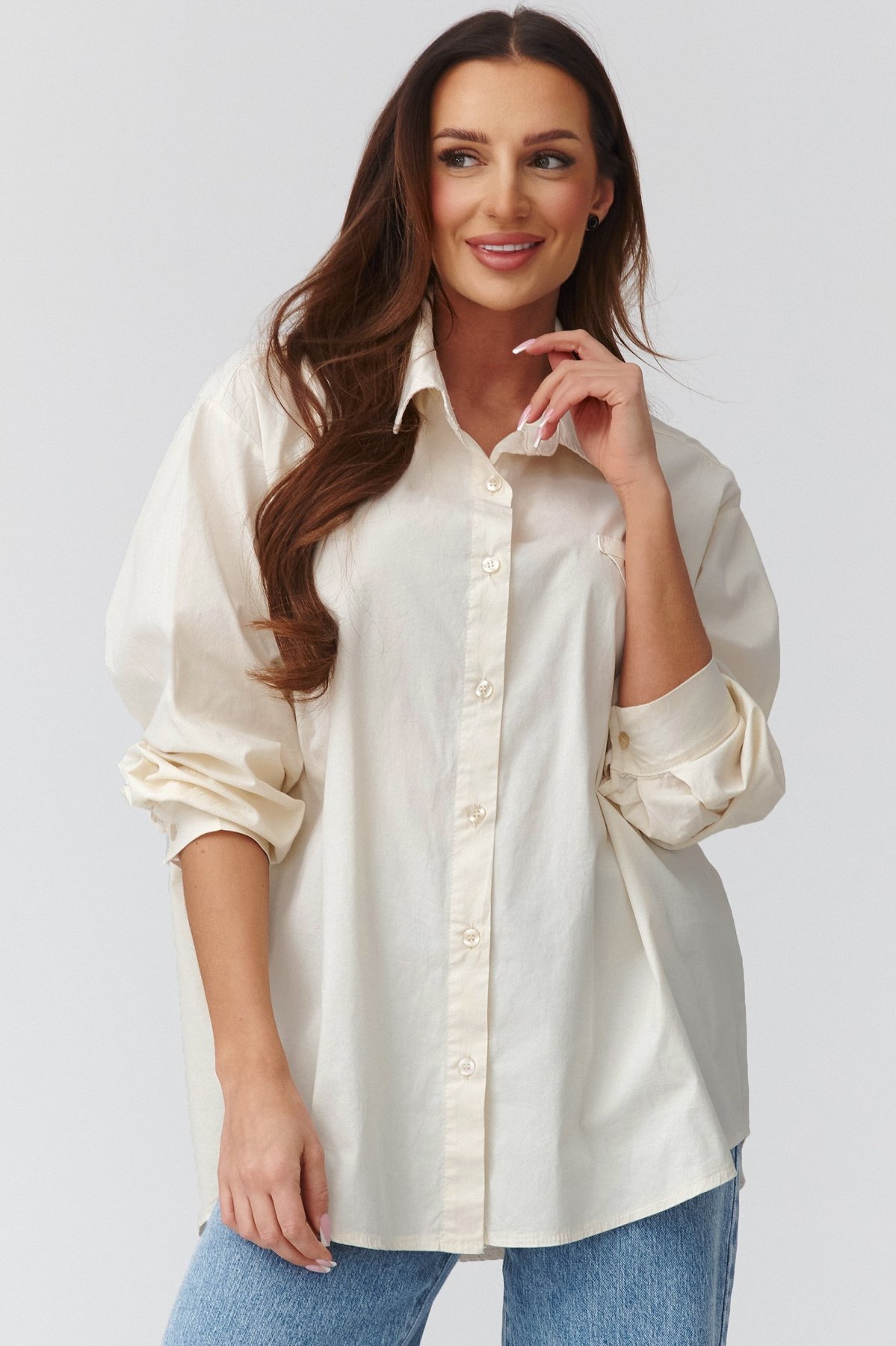 Dámská, světle béžová košile je univerzální kousek, který snadno zařadíte do každodenního i elegantnějšího šatníku.