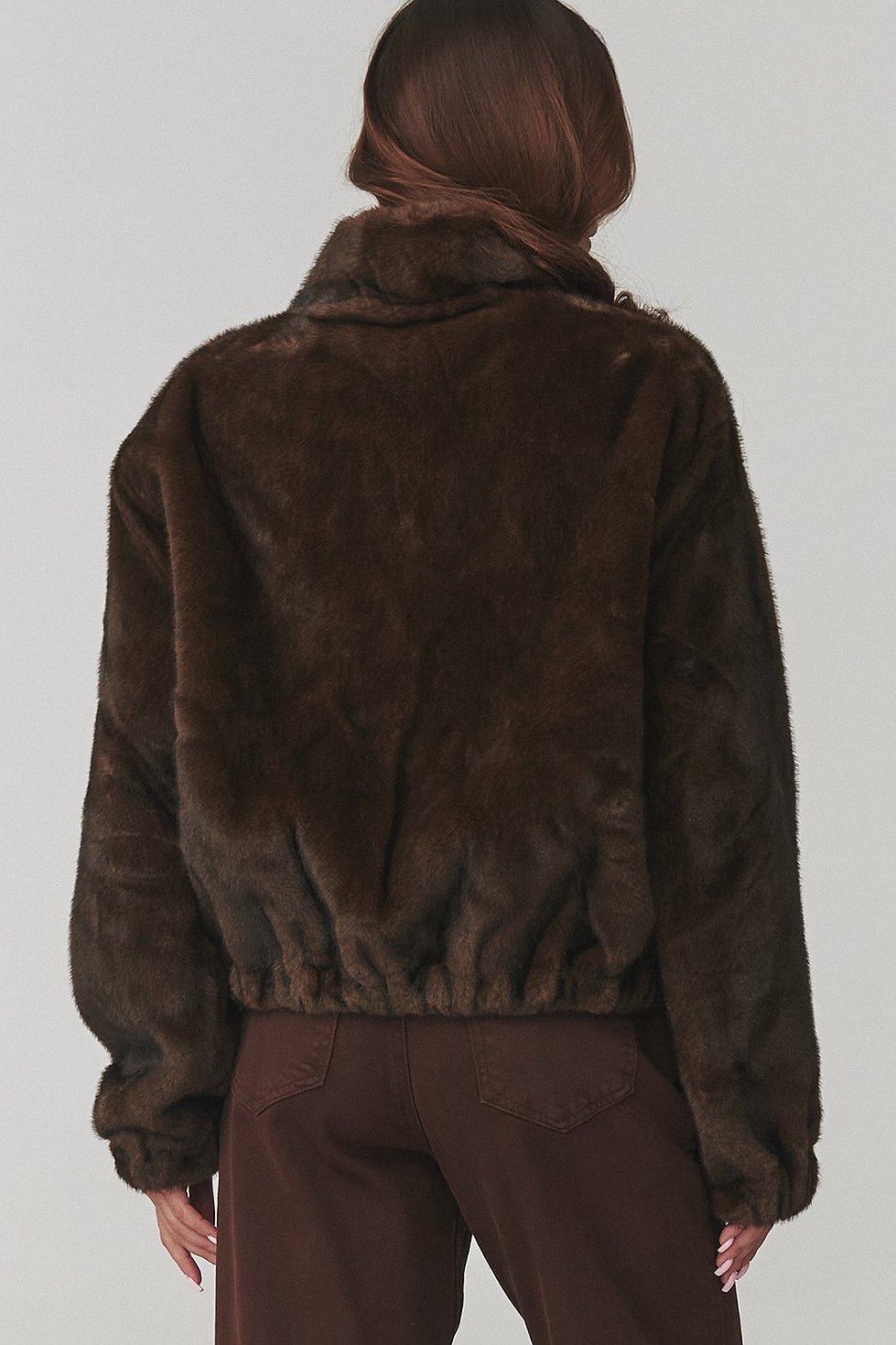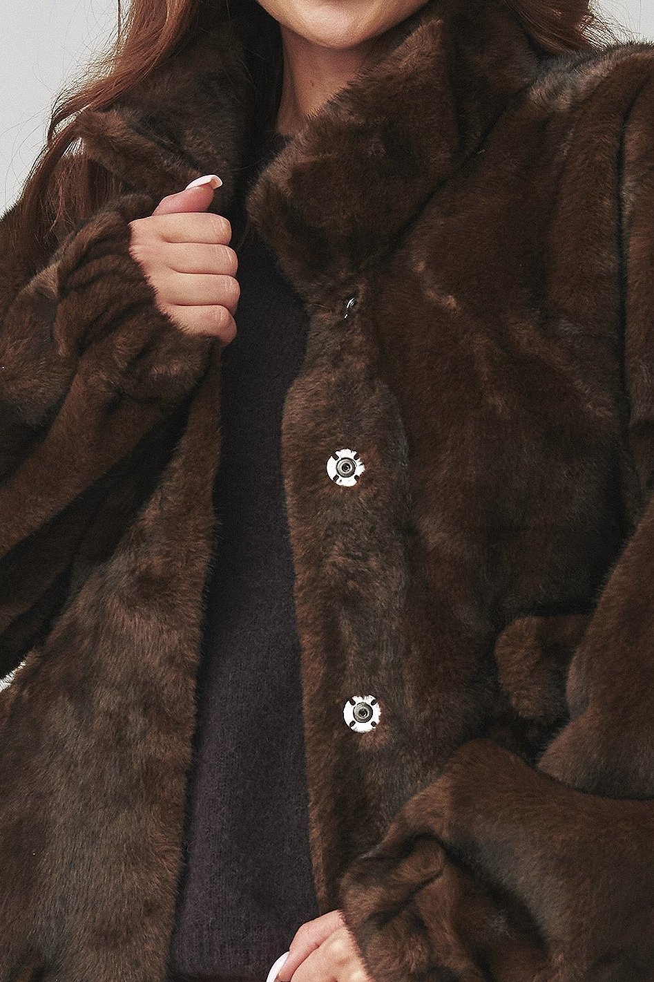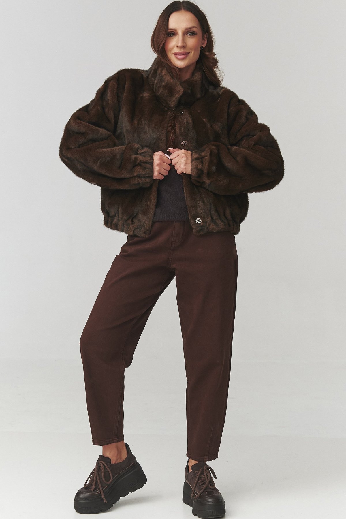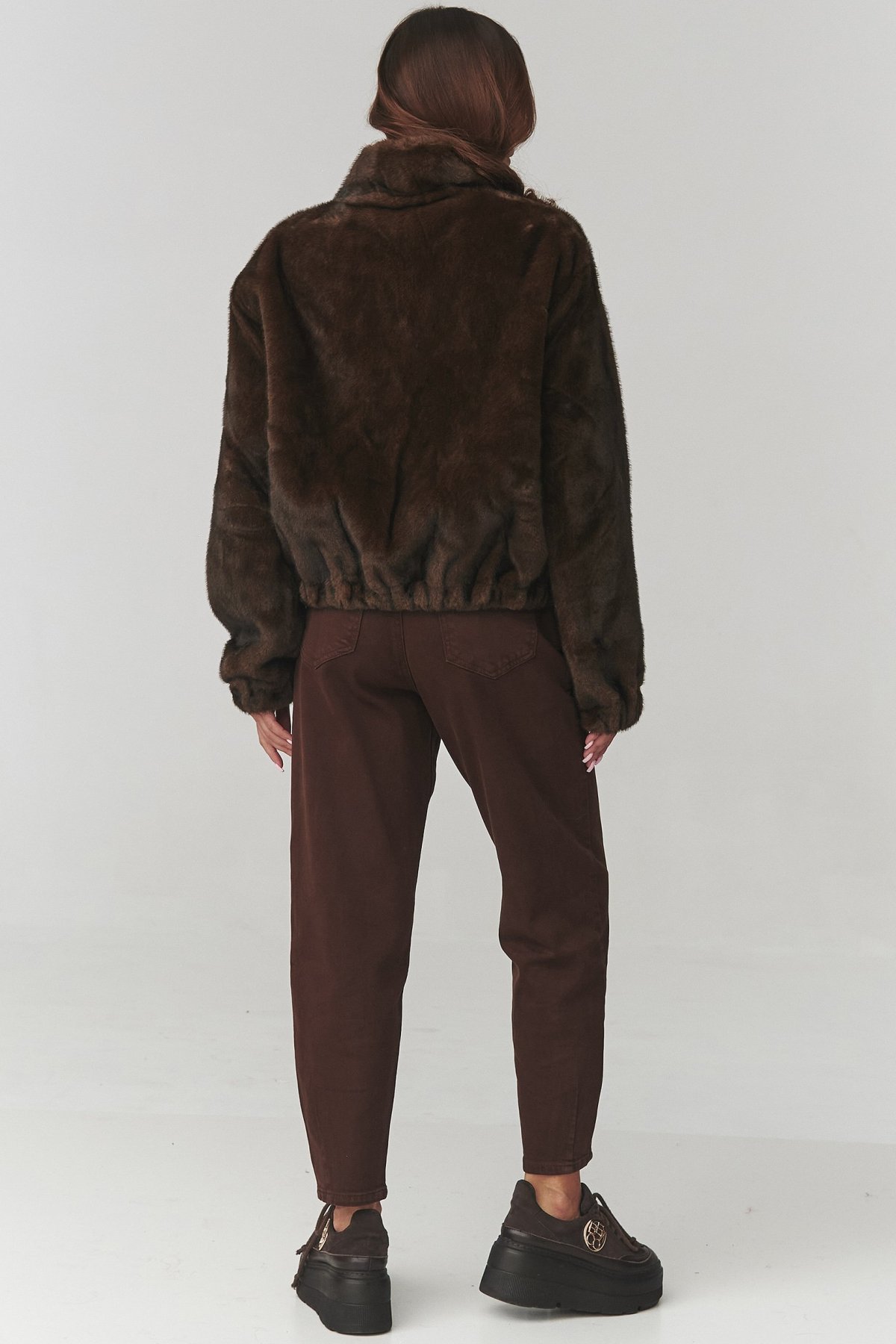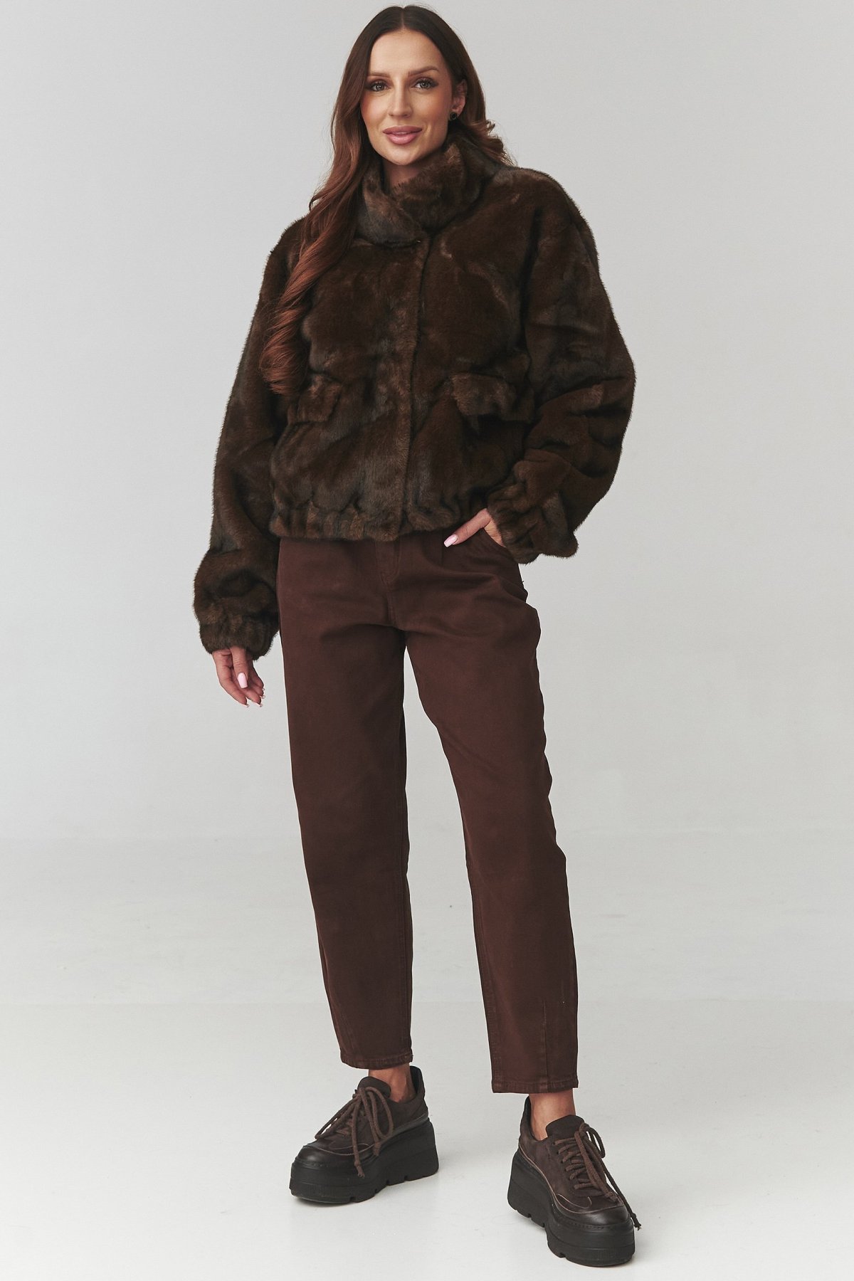 Dámská kožešinová bunda v tmavě hnědé barvě je stylovým kouskem, který spojuje eleganci s pohodlím. Vyrobená z mimořádně měkké eko kožešiny, zahřeje v chladných dnech a dodá outfitu nádech luxusu. Kratší střih s klasickým límečkem krásně zvýrazňuje postavu, zapínání na skryté patenty a praktické kapsy zajišťují komfort a funkčnost. Bundu snadno sladíte s džíny, koženými kalhotami i elegantními šaty.