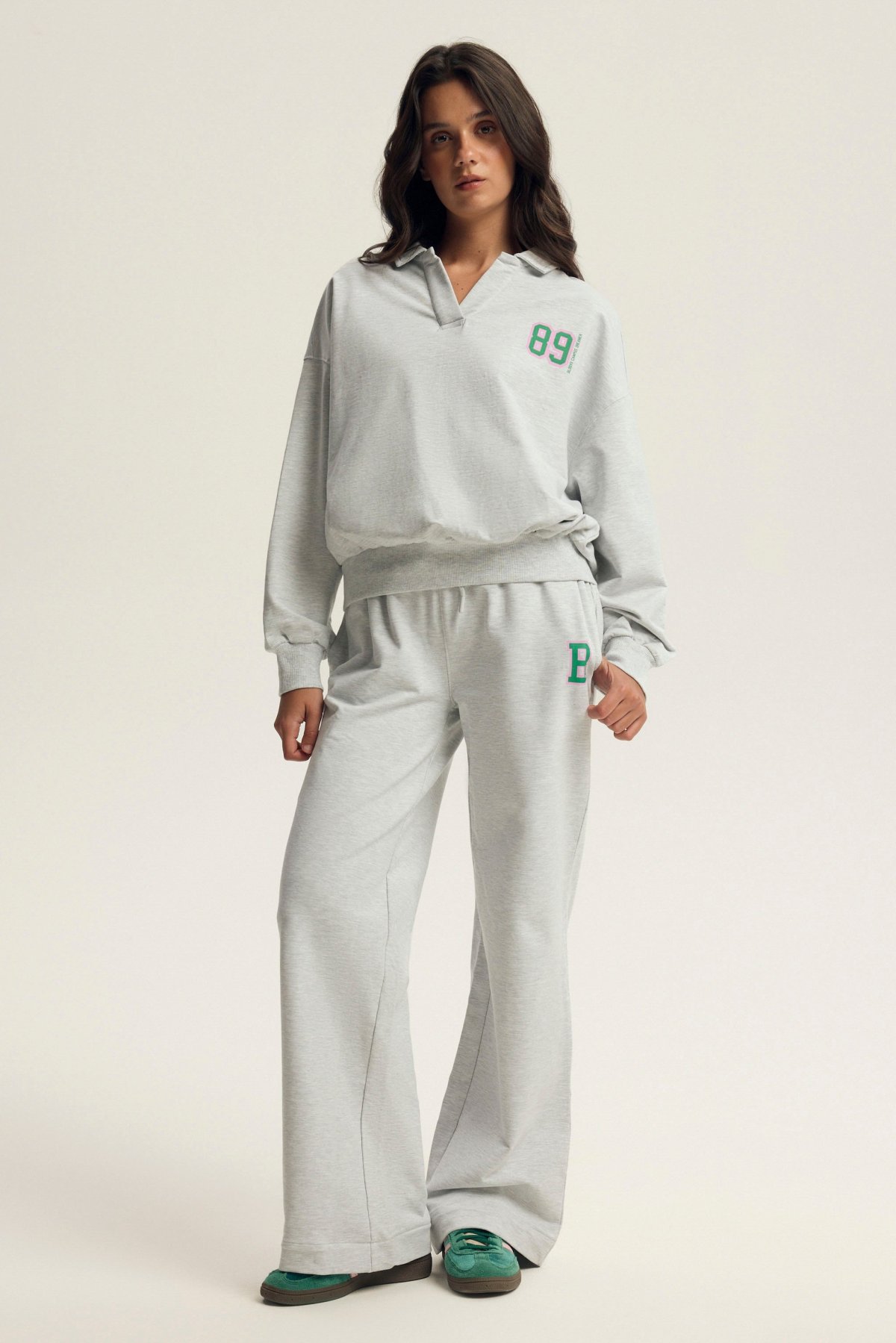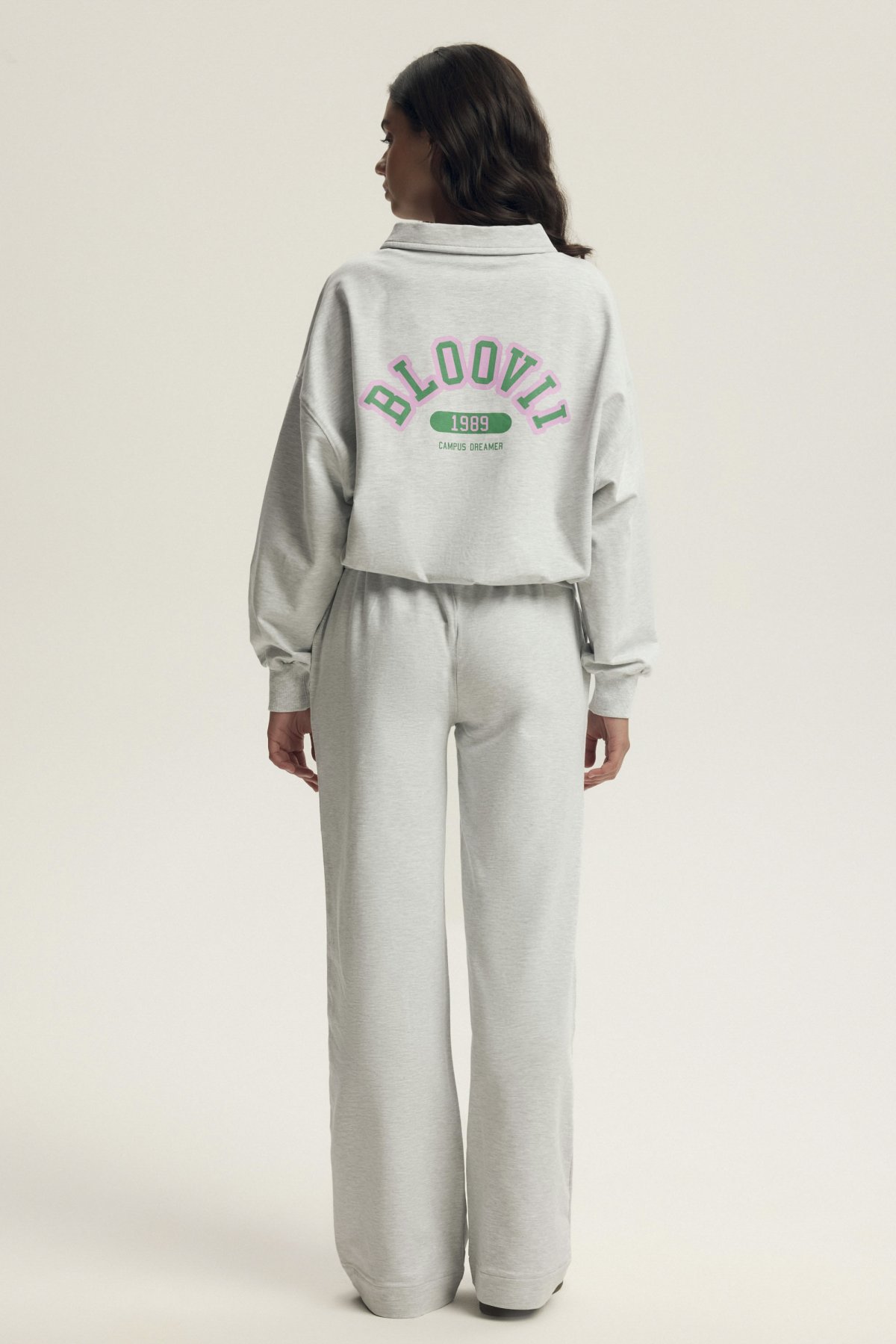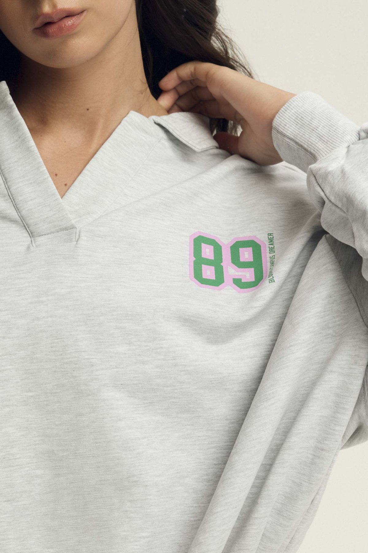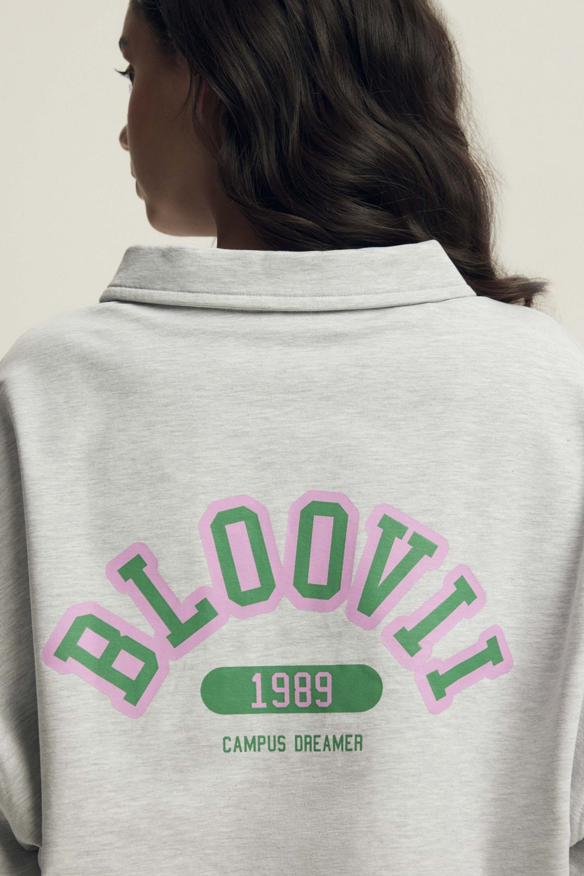 Dámská mikina Kayci v šedém odstínu zaujme svým univerzitním stylem a ležérní elegancí. Díky měkké bavlněné směsi a volnému střihu nabízí maximální komfort při každodenním nošení. Límec polo dodává modelu originální, retro nádech, zatímco výrazný potisk na zádech přináší mladistvou energii.