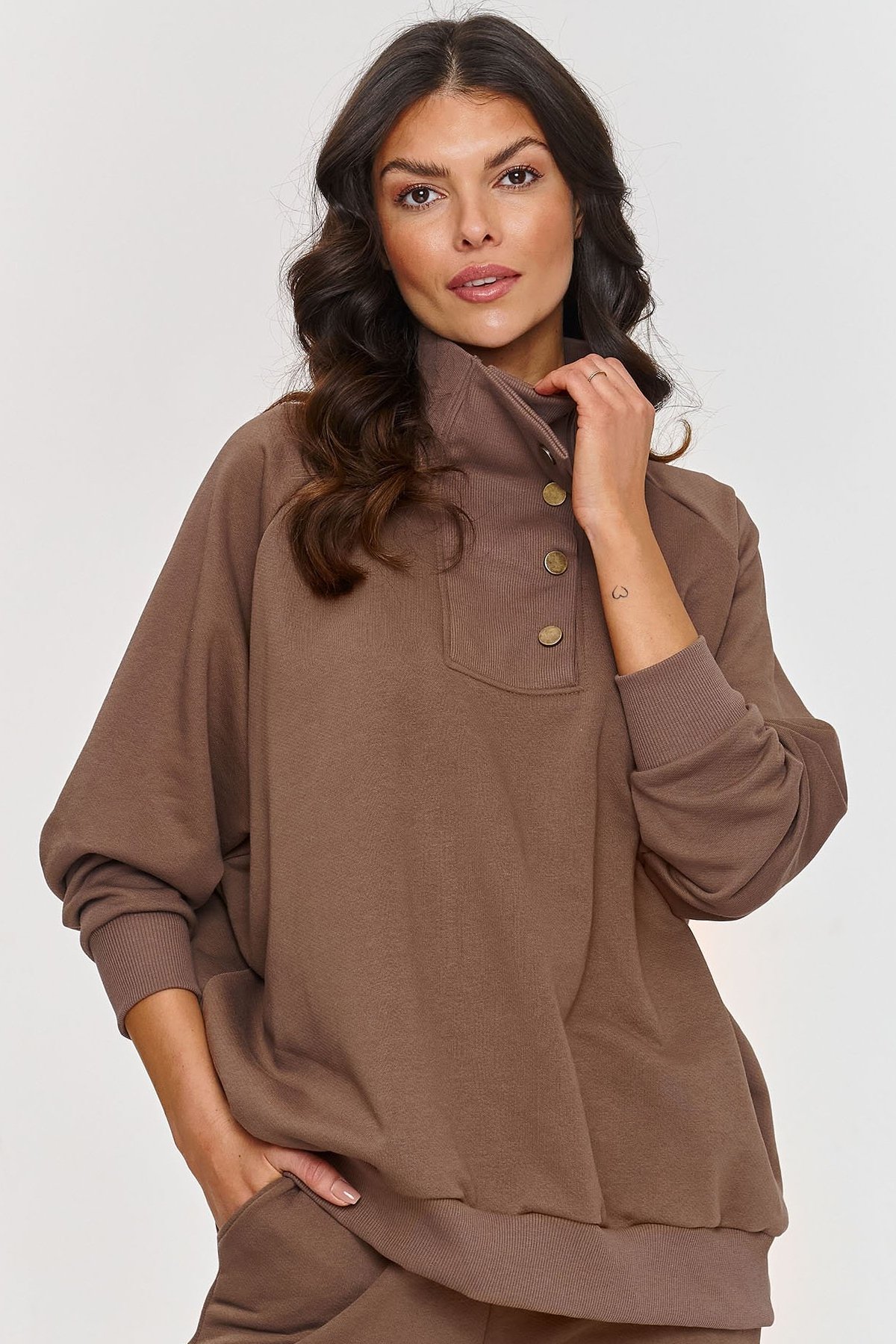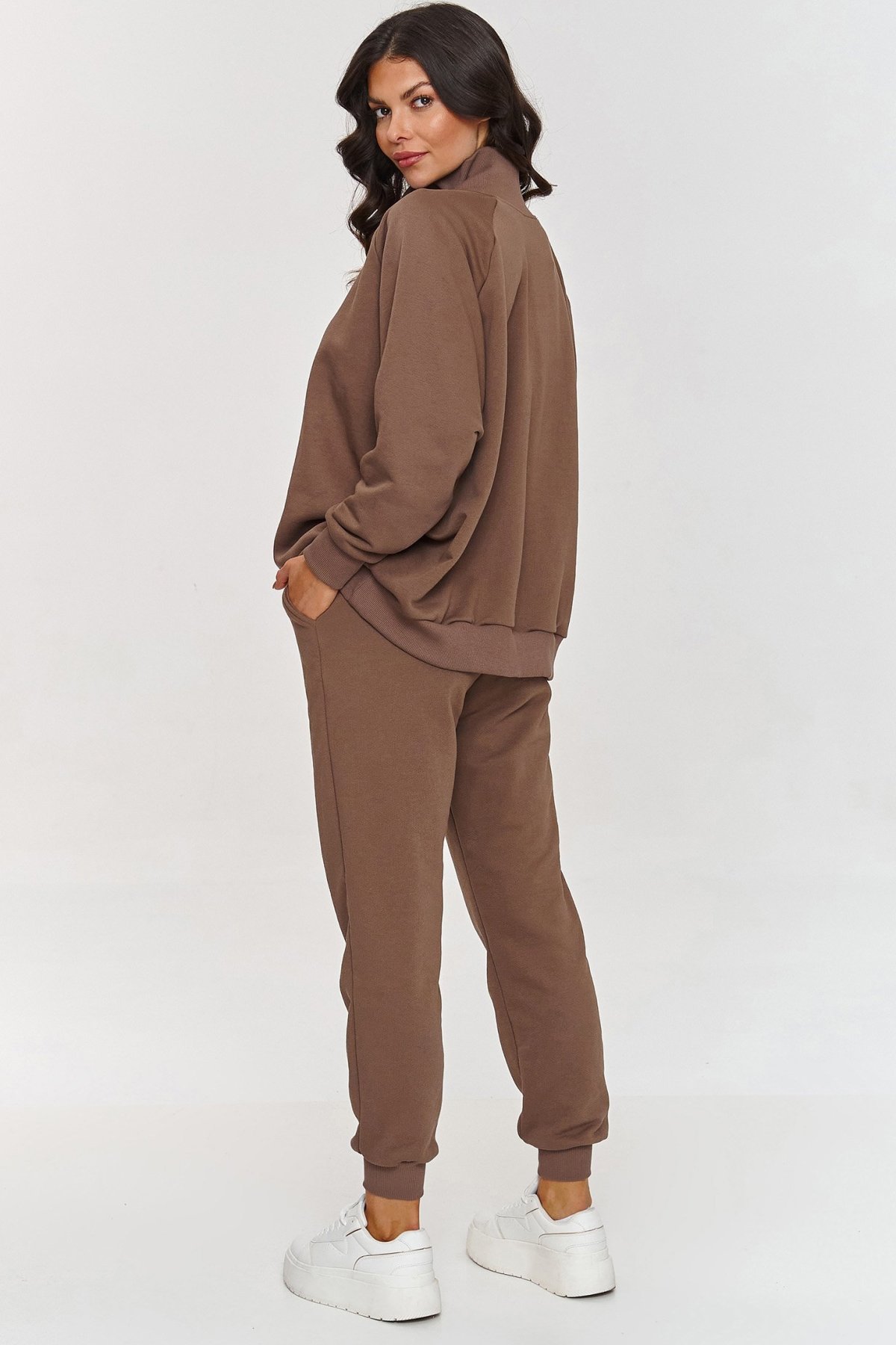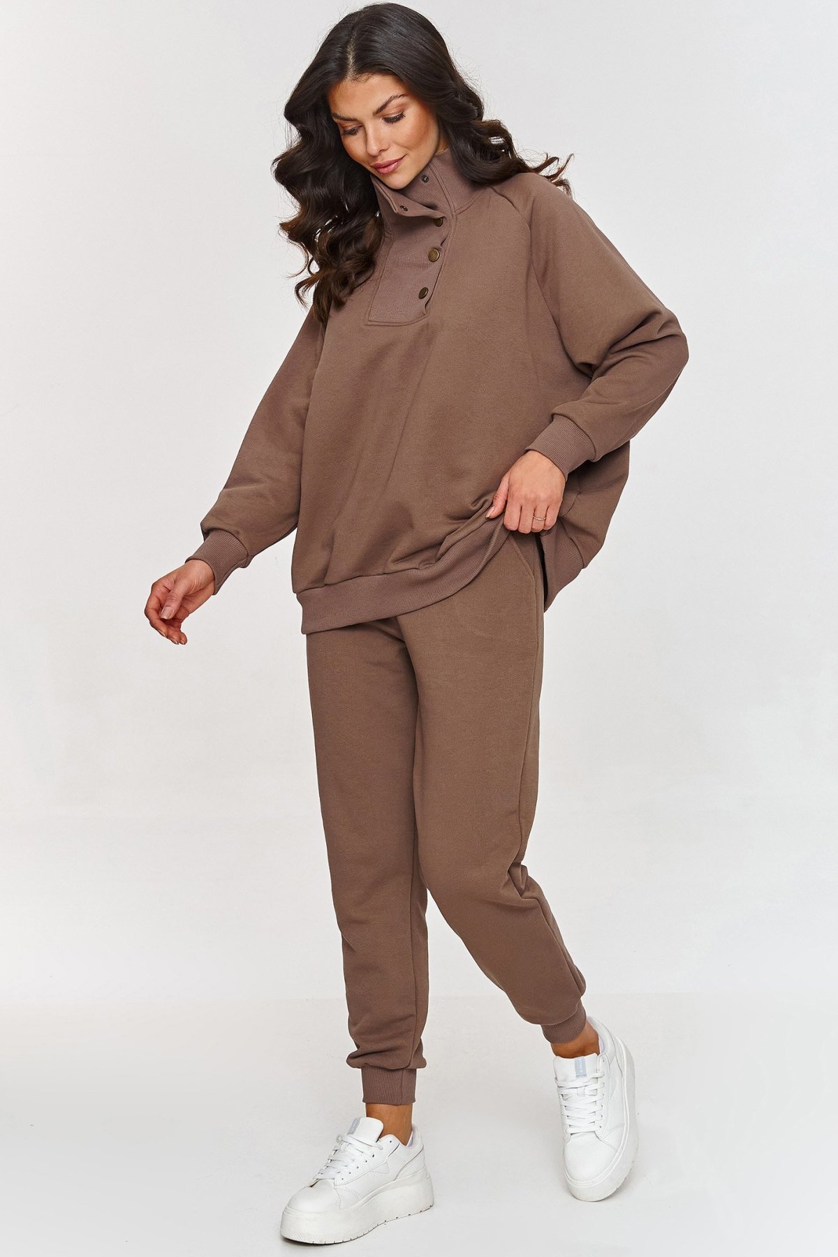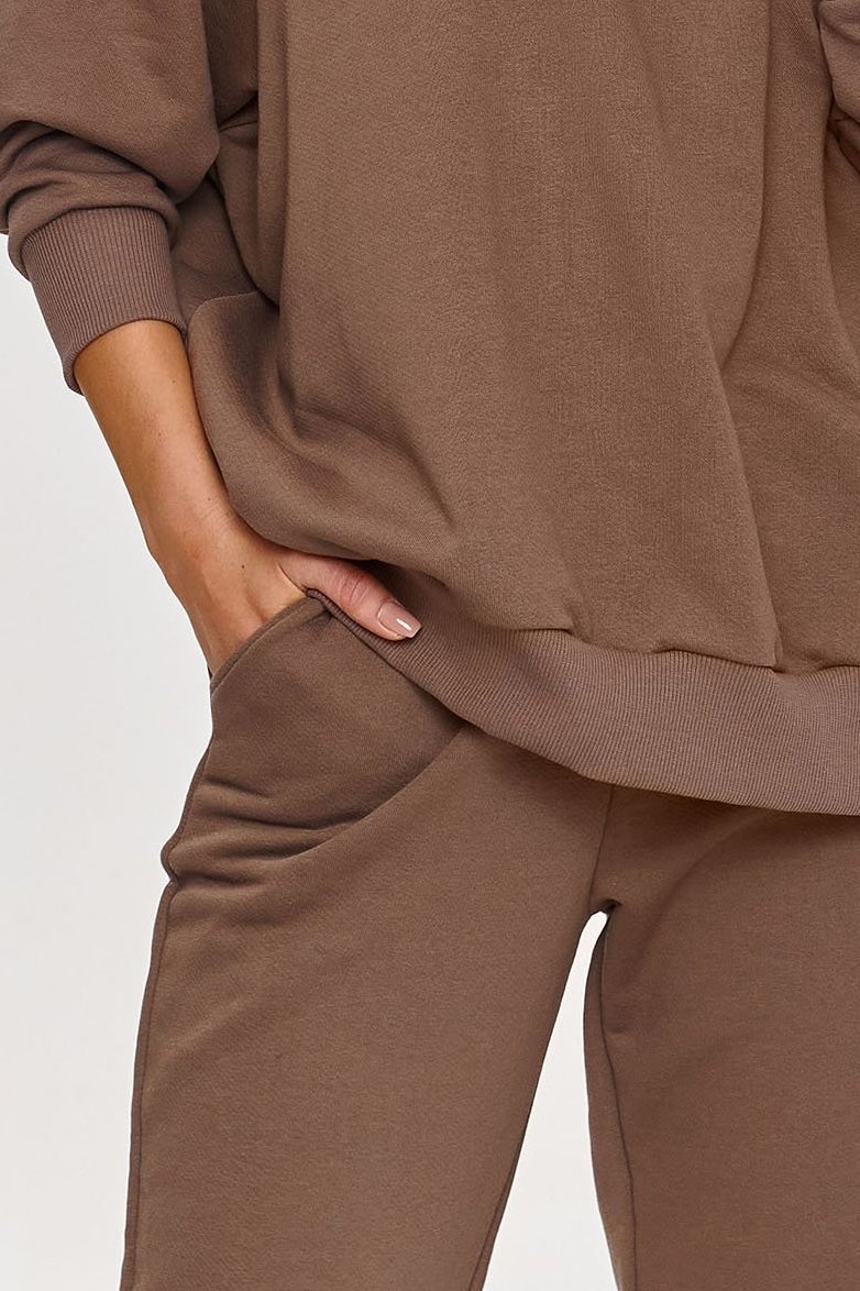 Jednoduchý, ale mimořádně stylový komplet s mikinou v odstínu mocca.