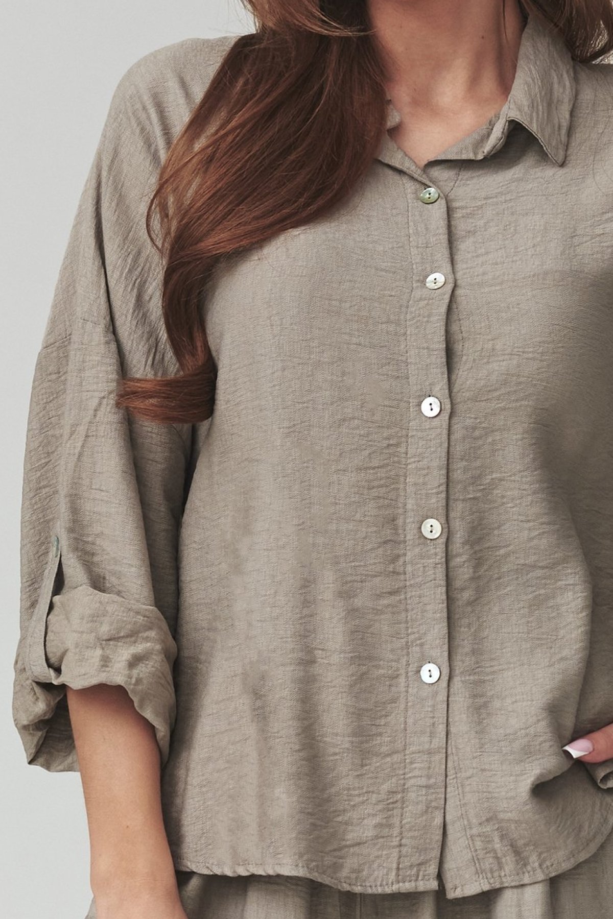 Působí lehce, upraveně a přitom velmi pohodlně. Volnější střih dává prostor pohybu a vytváří uvolněnou siluetu, která funguje pro běžný den i pro chvíle, kdy chcete vypadat více sladěně bez zbytečné námahy. Košile se zapínáním na knoflíky můžete nosit volně, zastrčenou i rozepnutou přes top. Široké kalhoty s elastickým pasem se příjemně přizpůsobí postavě a podtrhnou nenucený charakter celého setu. Viskóza dodává modelu splývavost, prodyšnost a příjemný kontakt s pokožkou, takže se komplet hodí hlavně na teplejší dny.