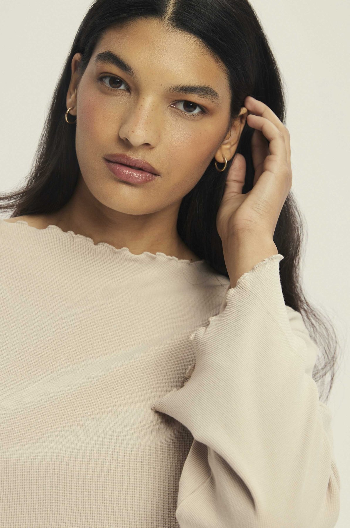 - triko s jemně rozšířenými rukávy a vlnkovým zakončením