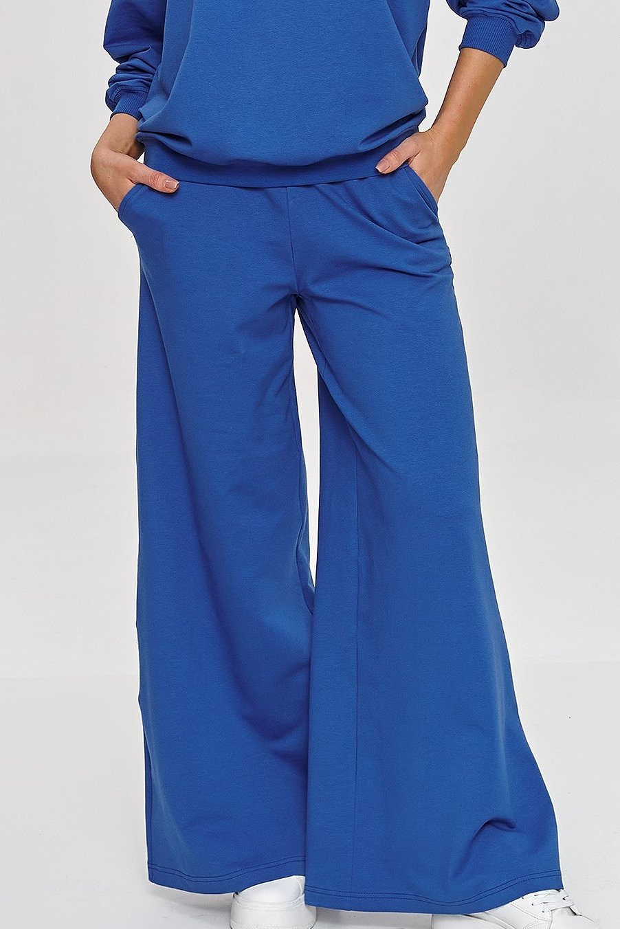 Kalhoty mají módní široký střih nohavic a elastický pas, který se dobře přizpůsobí jakémukoli typu postavy. Rozšířené nohavice navíc kalhotám dodávají dynamický a originální vzhled.