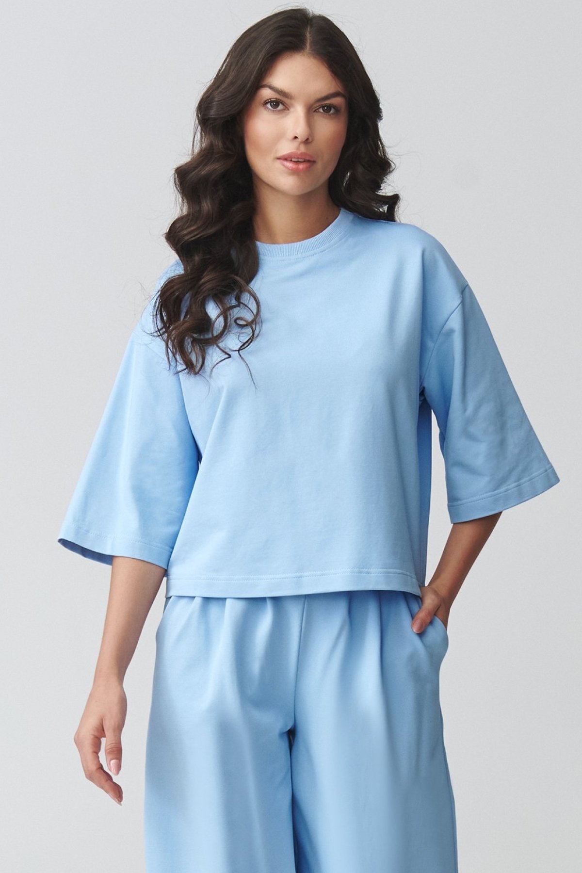 Dámská souprava světle modré barvy spojující uvolněný vzhled s pohodlím, které oceníte při každodenním nošení.