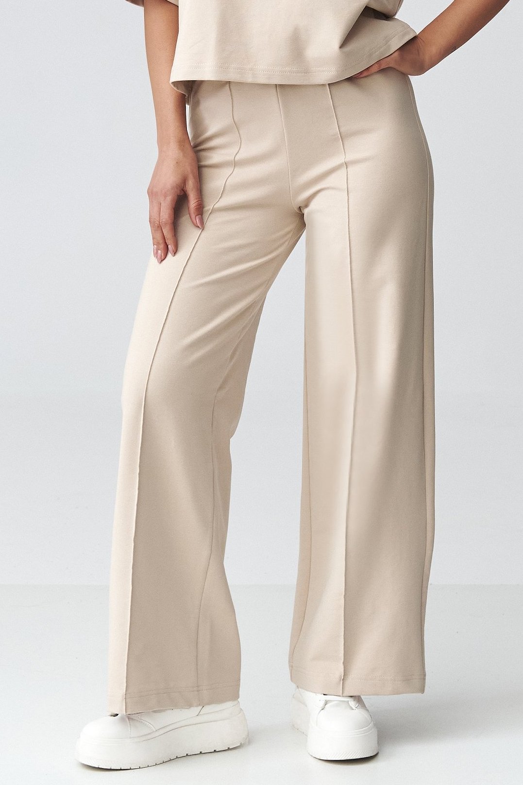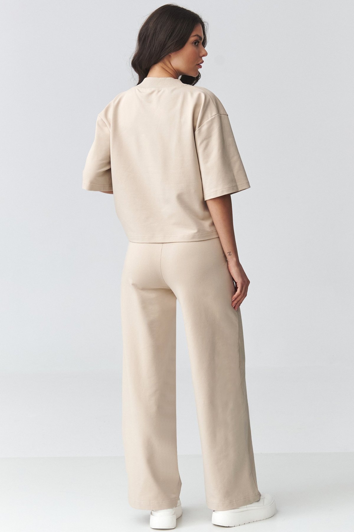 Stylový dámský komplet v odstínu světle béžové spojuje pohodlí s moderní elegancí.