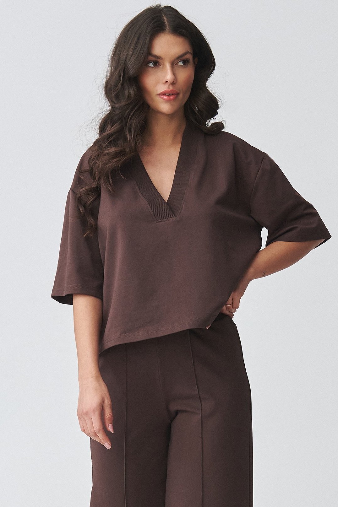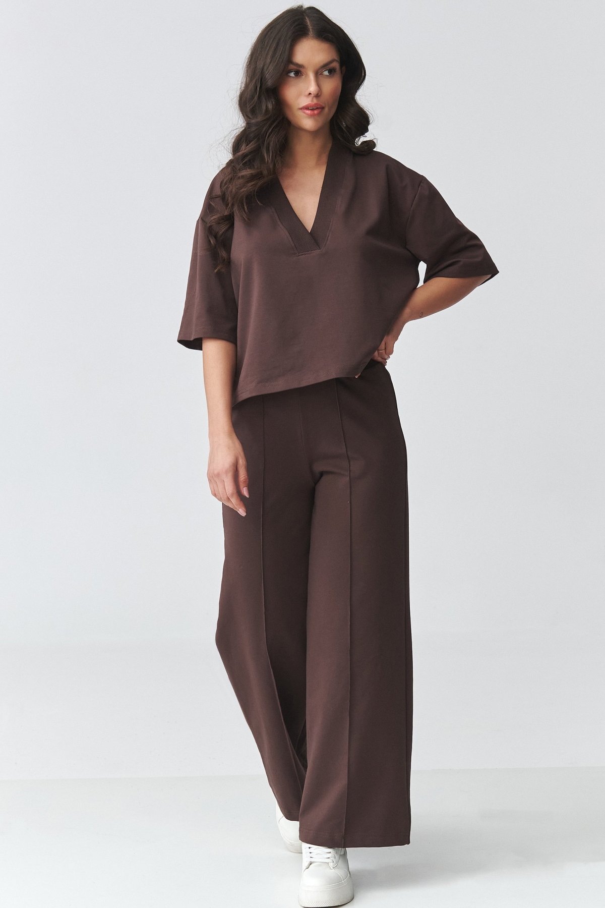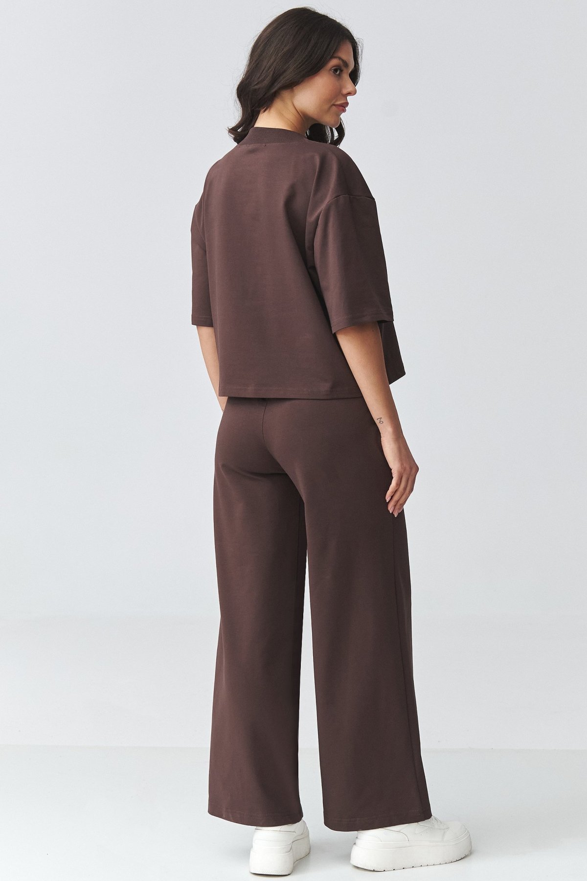 Stylový dámský komplet v odstínu tmavě hnědé spojuje pohodlí s moderní elegancí.