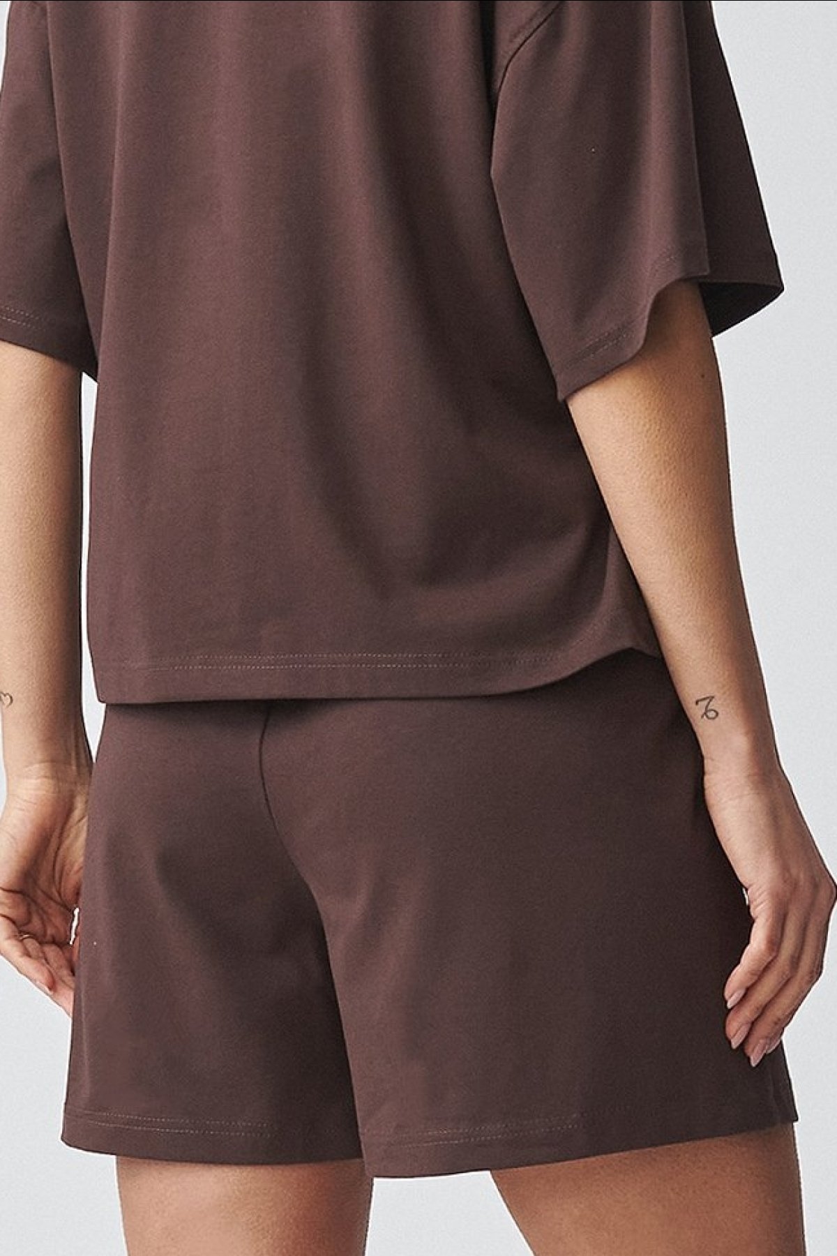 Uvolněný střih nepůsobí těžce a vytváří čistý, moderní vzhled, který snadno využijete doma, na cestách i při běžném denním nošení. Tričko s krátkým rukávem a kulatým výstřihem se nosí lehce a nechává dostatek prostoru pro pohyb. Šortky s elastickým pasem se dobře přizpůsobí postavě, zatímco praktické kapsy zvyšují pohodlí při každodenním nošení. Díky bavlně s příměsí elastanu je materiál příjemný na dotek a zároveň poddajný. Komplet můžete nosit jako sladěný set nebo oba díly kombinovat zvlášť podle nálady a příležitosti.