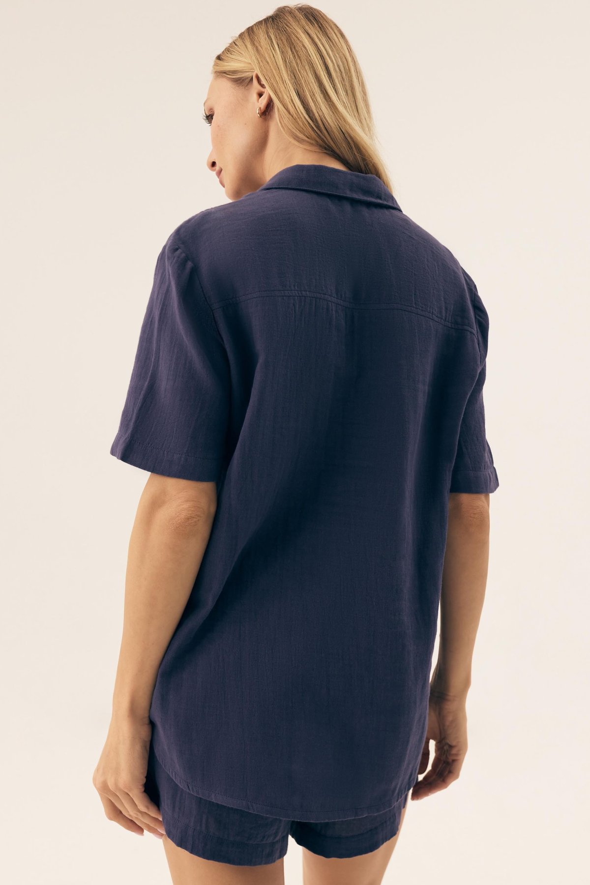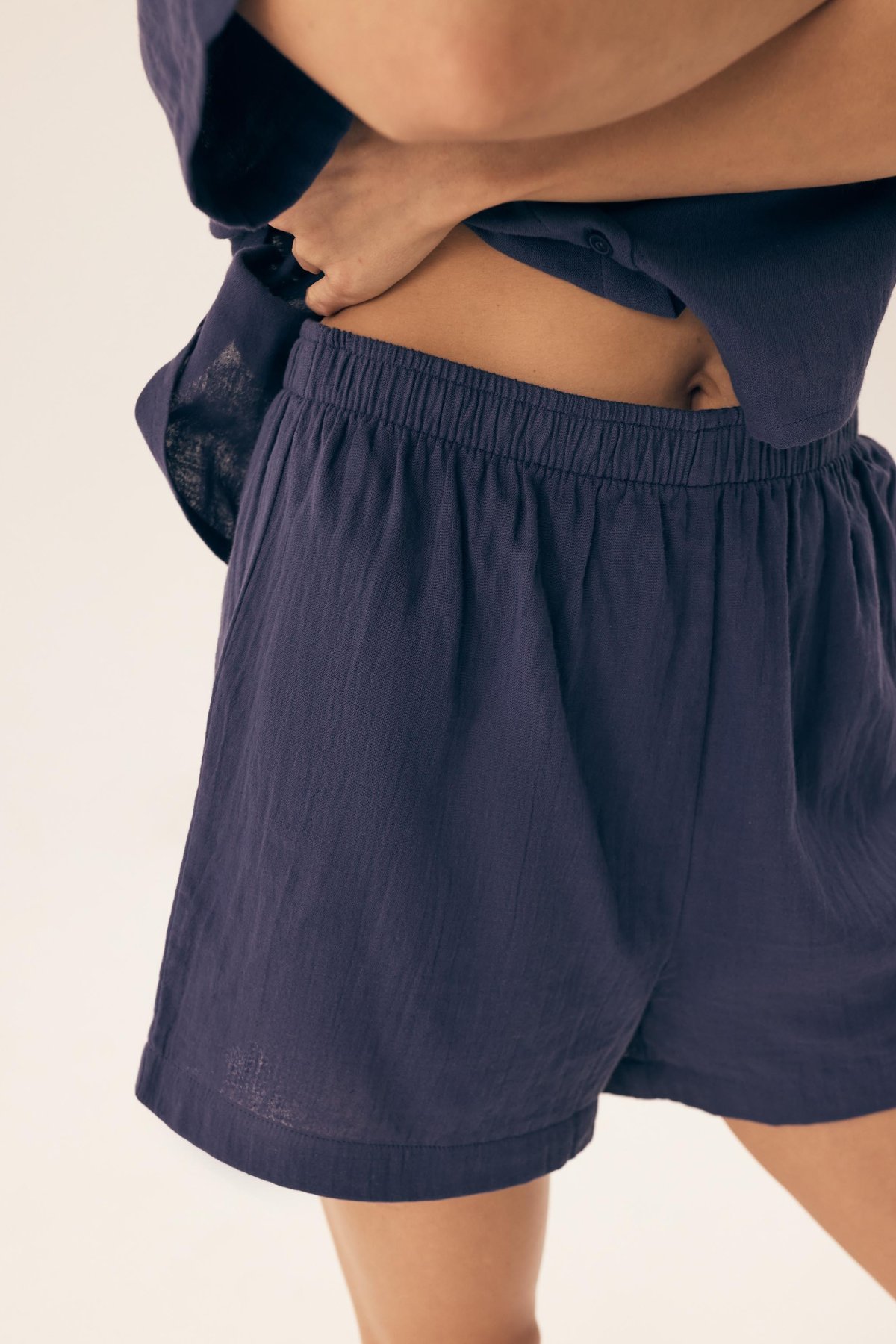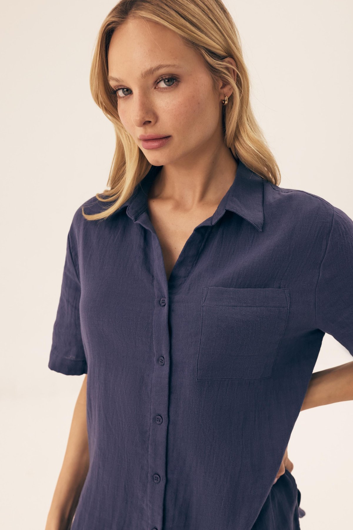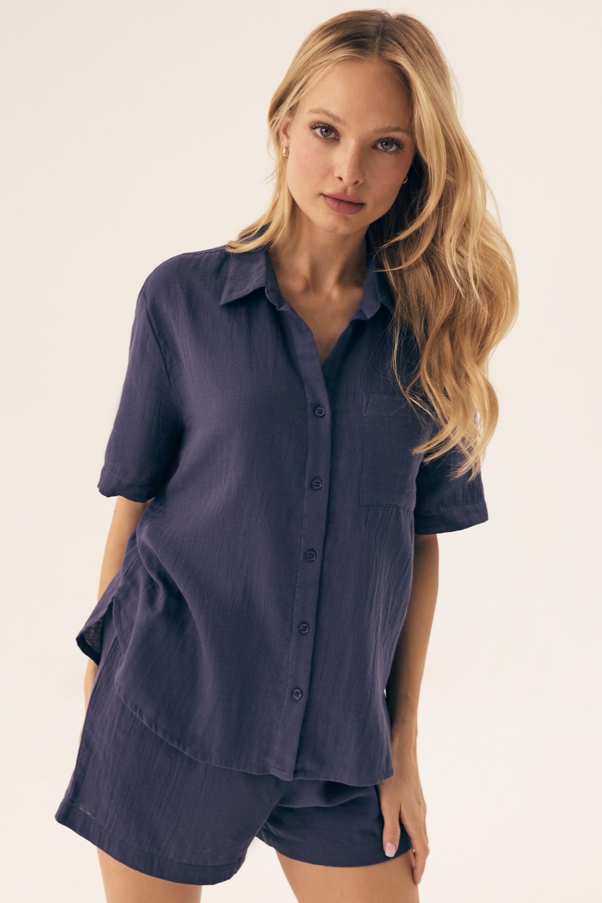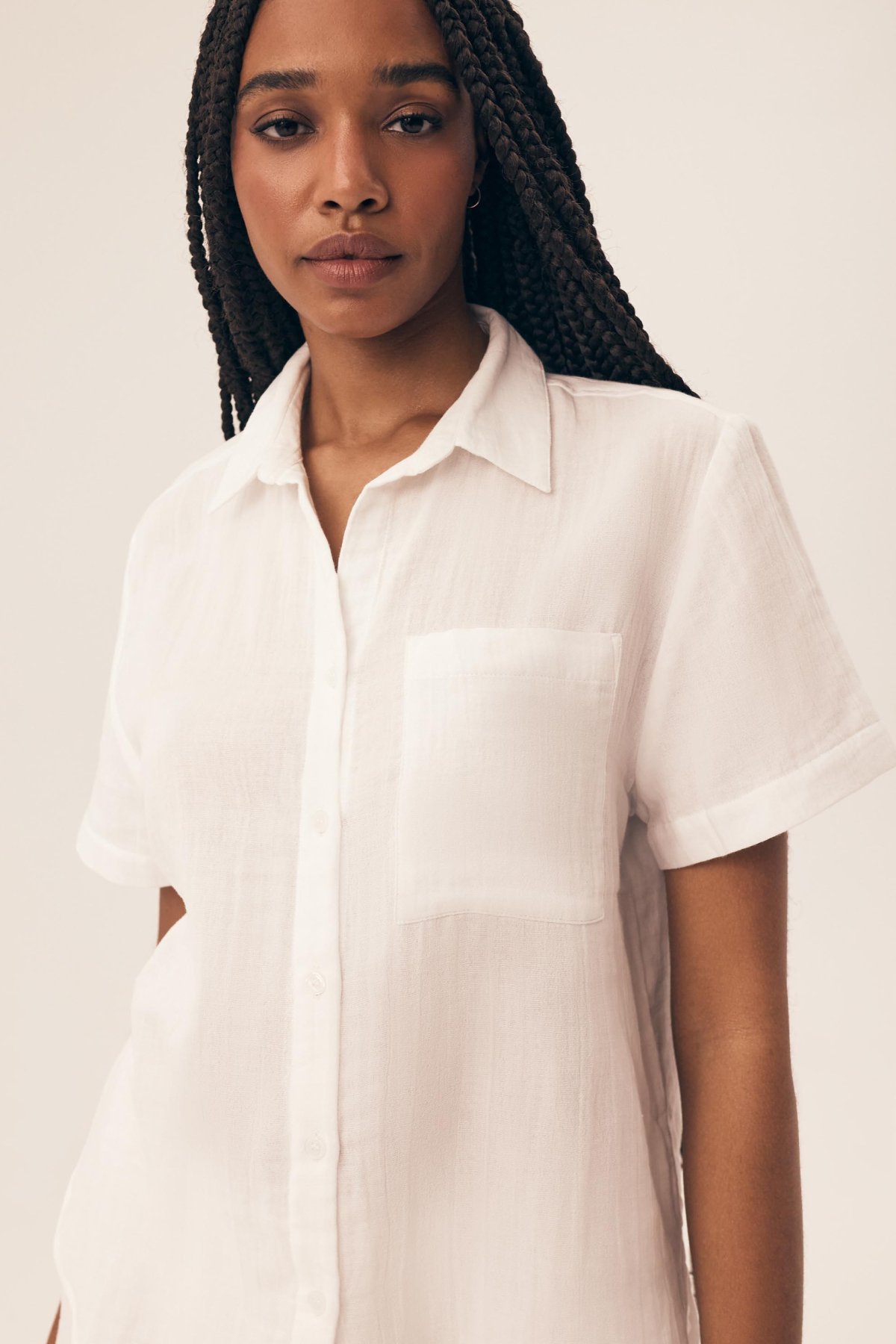 Lehký komplet Ryokan je příjemnou volbou na teplé dny i pohodové chvíle doma. Tvoří ho košile s krátkým rukávem a volnější šortky s pružným pasem. 100% bavlna je vzdušná, příjemná na těle a díky jemně strukturovanému materiálu působí celý komplet lehce a svěže. Bílá barva podtrhuje čistý, nadčasový vzhled.