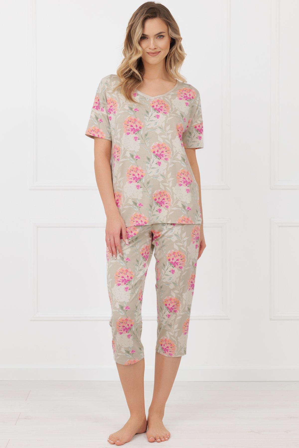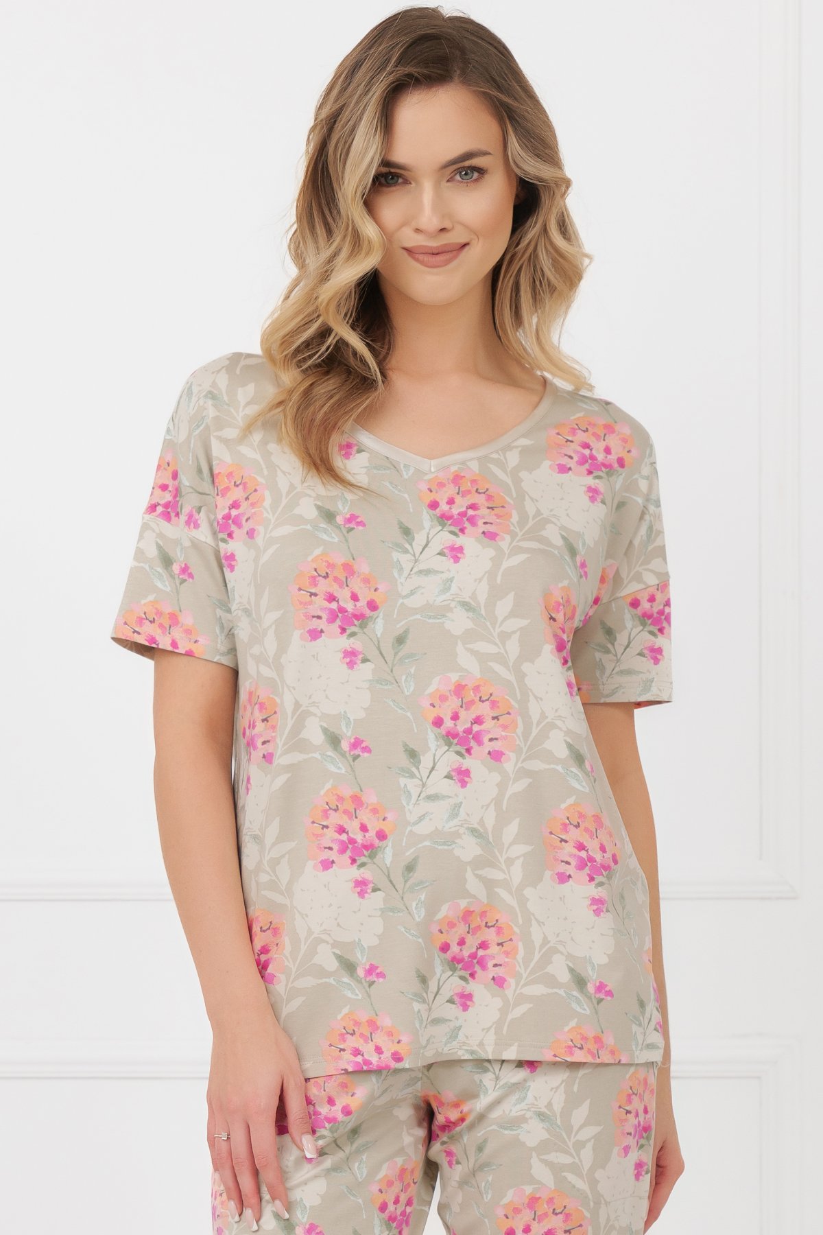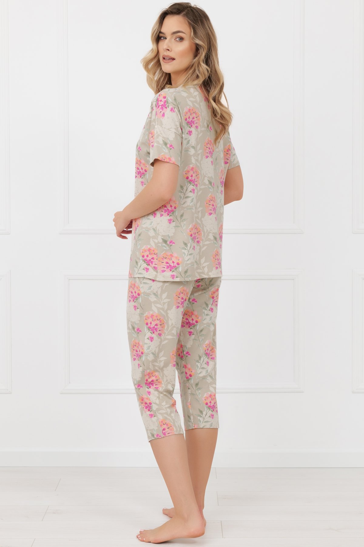 Dámské pyžamo Harmonia s krátkým rukávem a 3/4 kalhotami. Jednoduchý střih dobře sedí, neomezuje v pohybu a je ideální nejen na noc, ale i jako pohodlný domácí outfit.