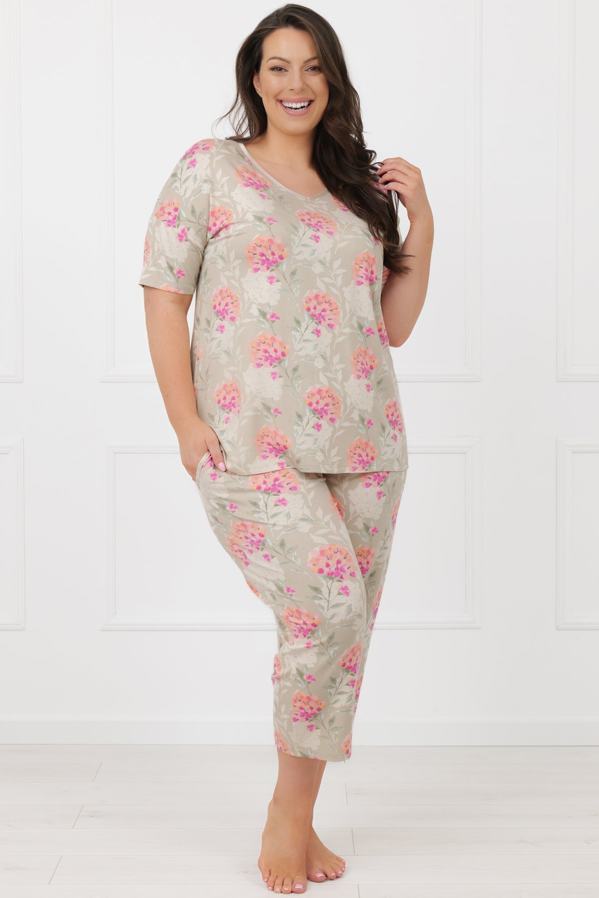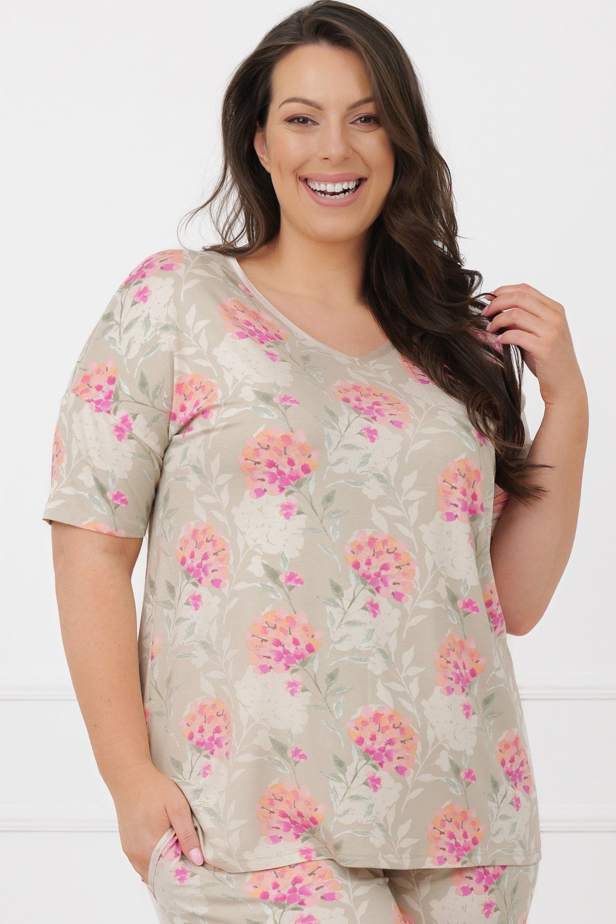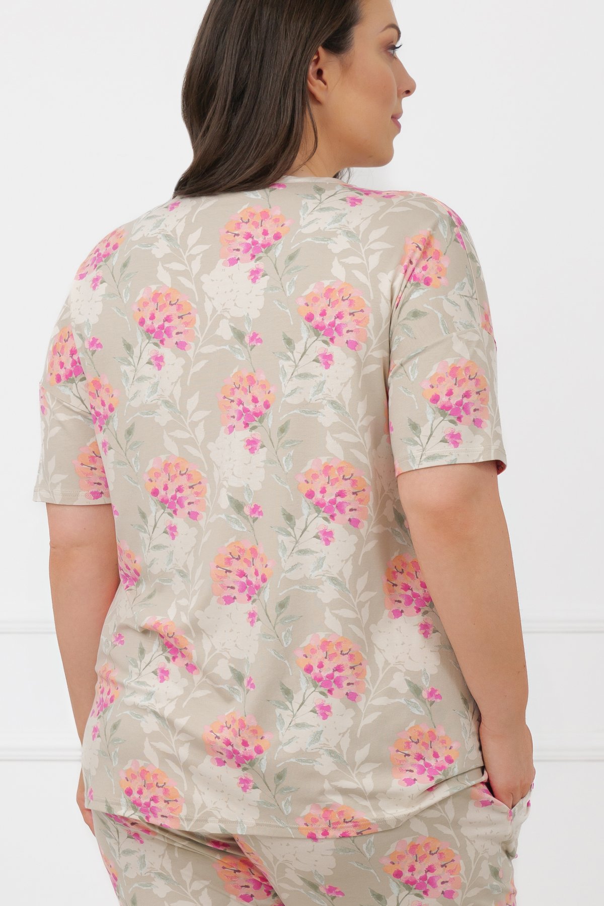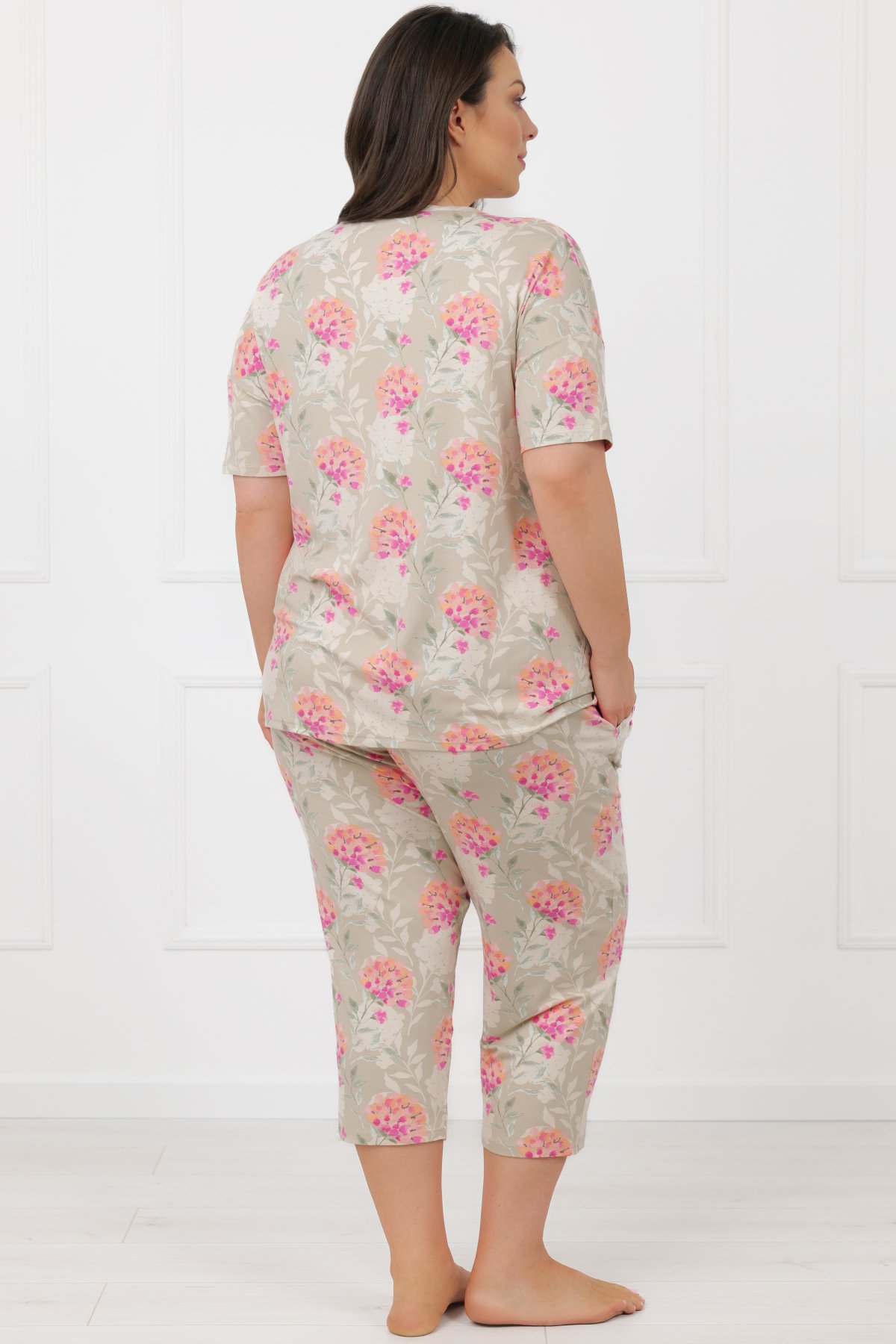 Dámské pyžamo Harmonia s krátkým rukávem a 3/4 kalhotami. Jednoduchý střih dobře sedí, neomezuje v pohybu a je ideální nejen na noc, ale i jako pohodlný domácí outfit.