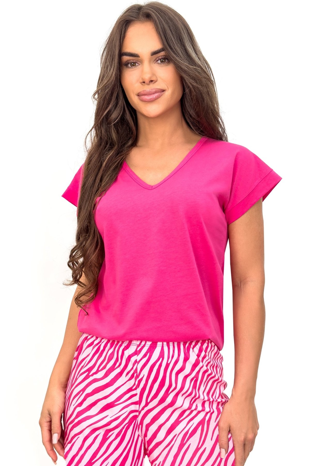 Bavlněné pyžamo Zebra ve výrazně růžovém odstínu. Je ideální pro ženy, které hledají spojení pohodlí, kvality a stylu.