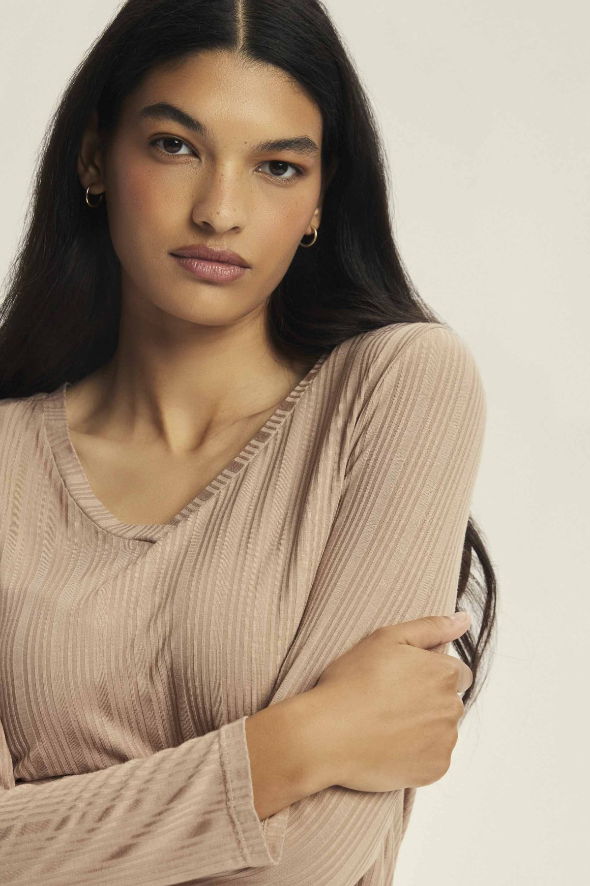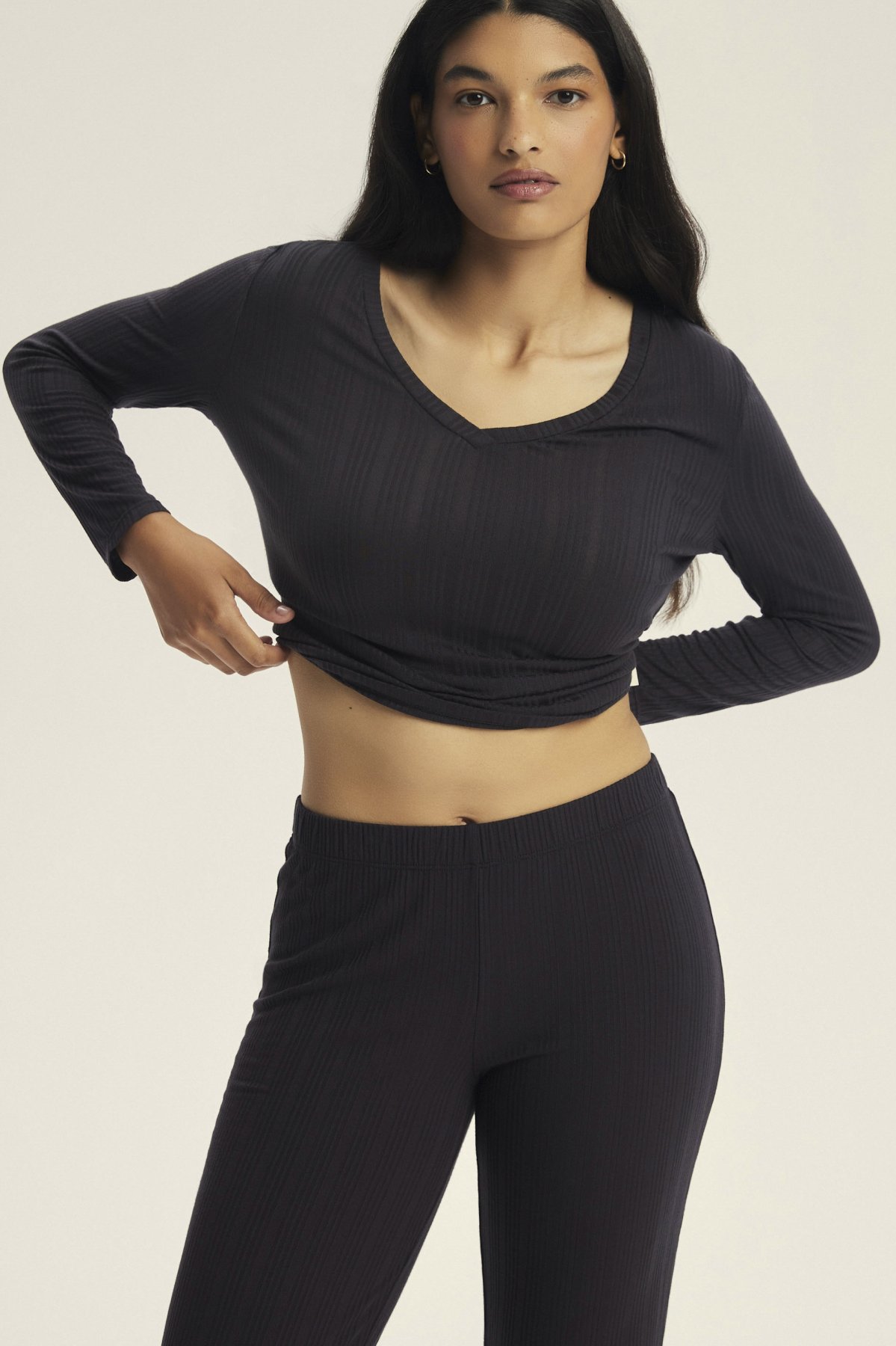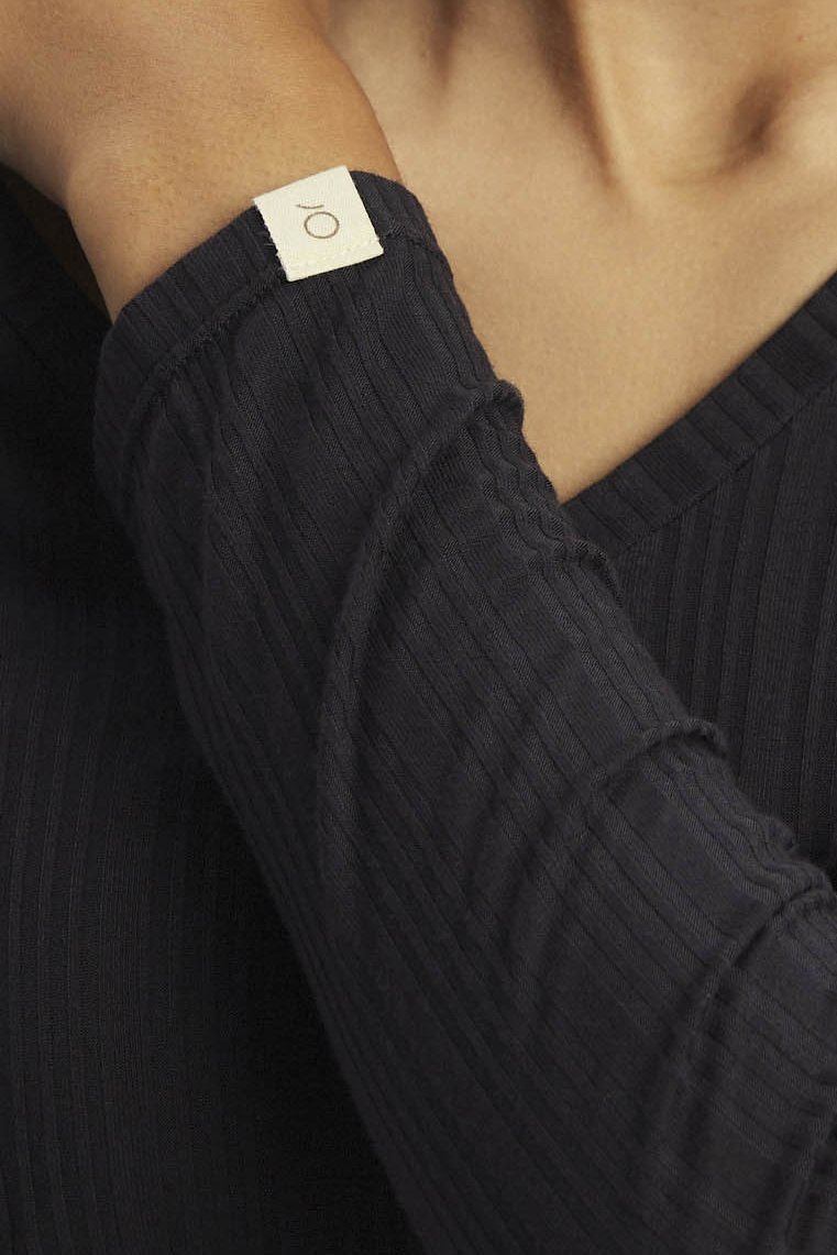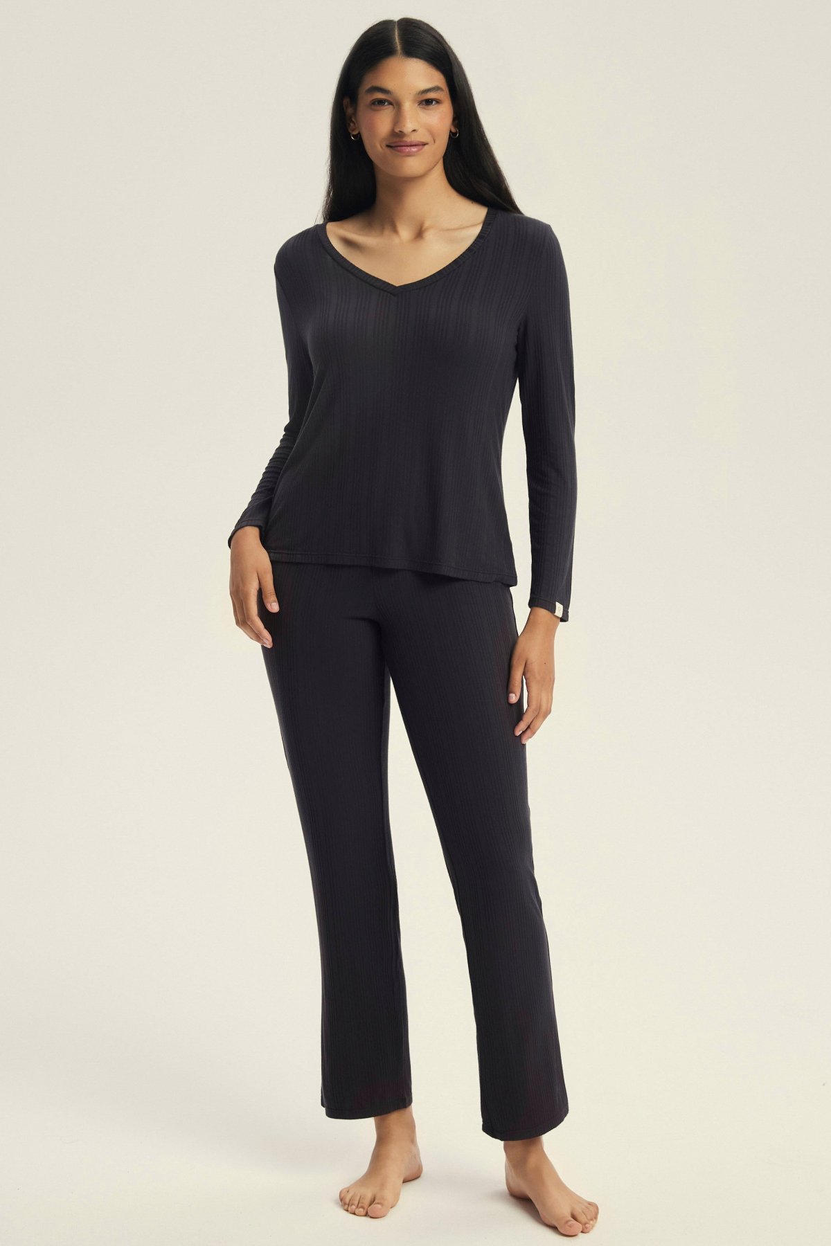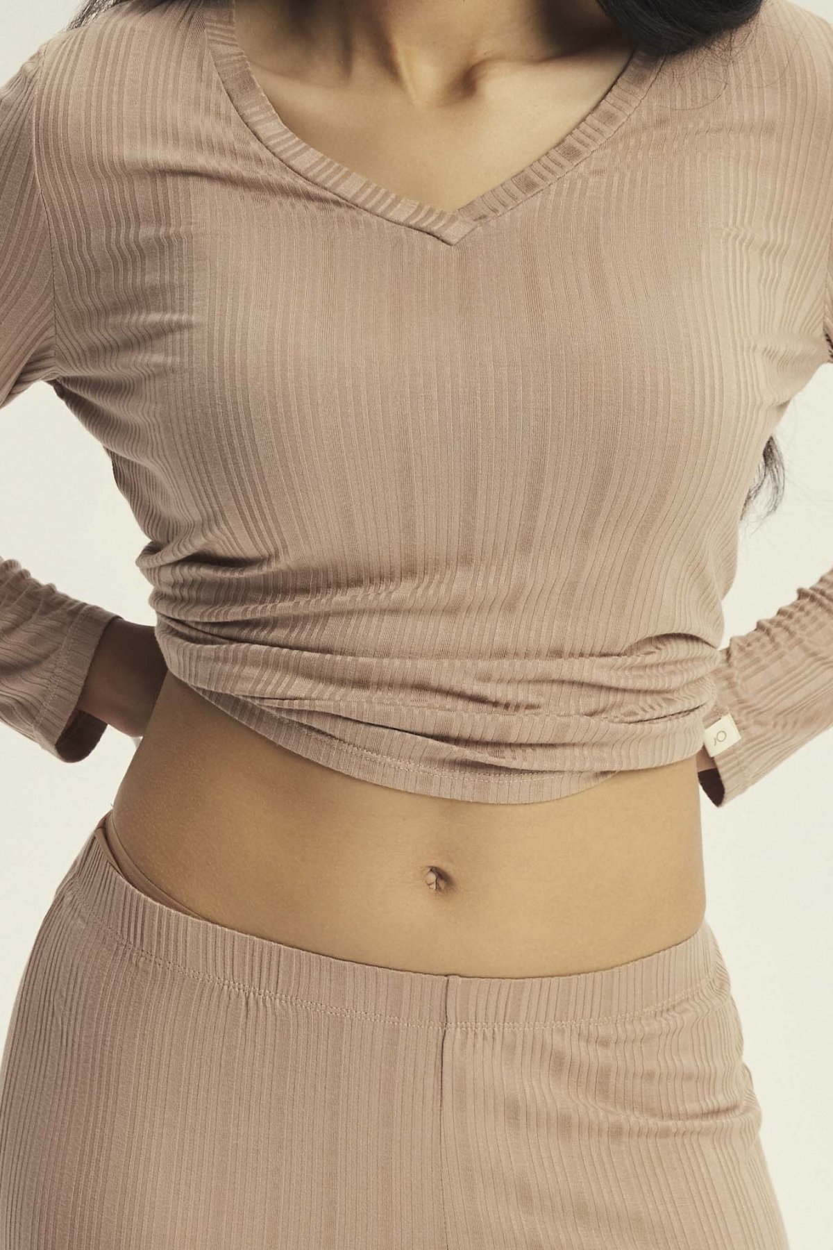 Dámské pyžamo Jenius ztělesňuje klid a jemnost večerní pohody. Vyrobené z měkké, lehce žebrované viskózy, příjemně přiléhá k tělu a poskytuje dokonalý komfort při spánku i odpočinku. Horní díl s výstřihem do „V“ a dlouhými rukávy působí decentně a žensky. Dlouhé kalhoty s volným střihem zajišťují naprostou volnost pohybu. Samozřejmostí je pohodlný pružný pas. Materiál s příměsí elastanu se jemně natahuje, díky čemuž si pyžamo zachovává tvar i po mnoha praních. Ideální volba pro ženy, které si chtějí dopřát pocit luxusu a pohodlí během každého večera i rána.