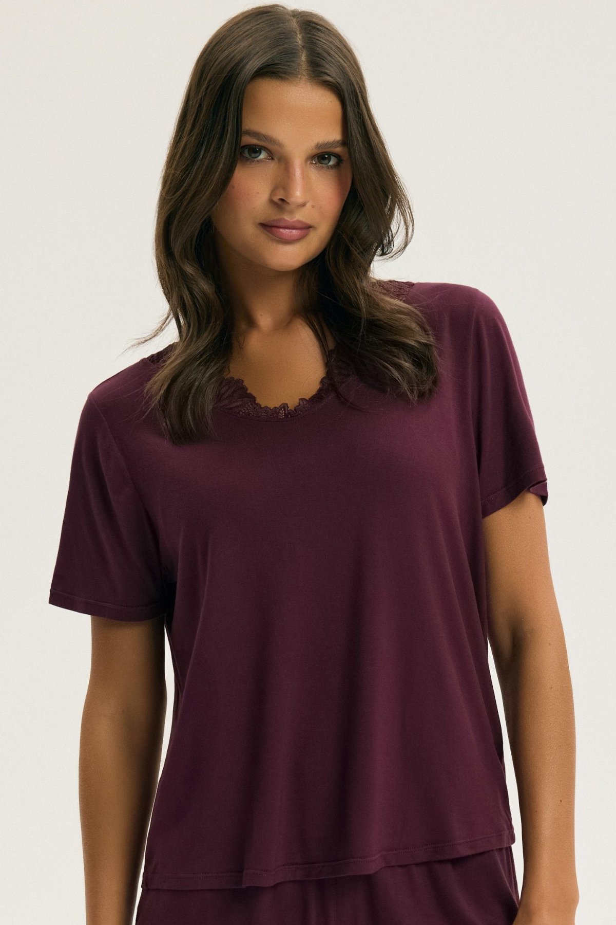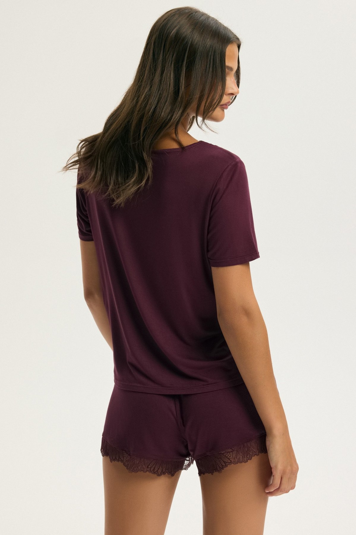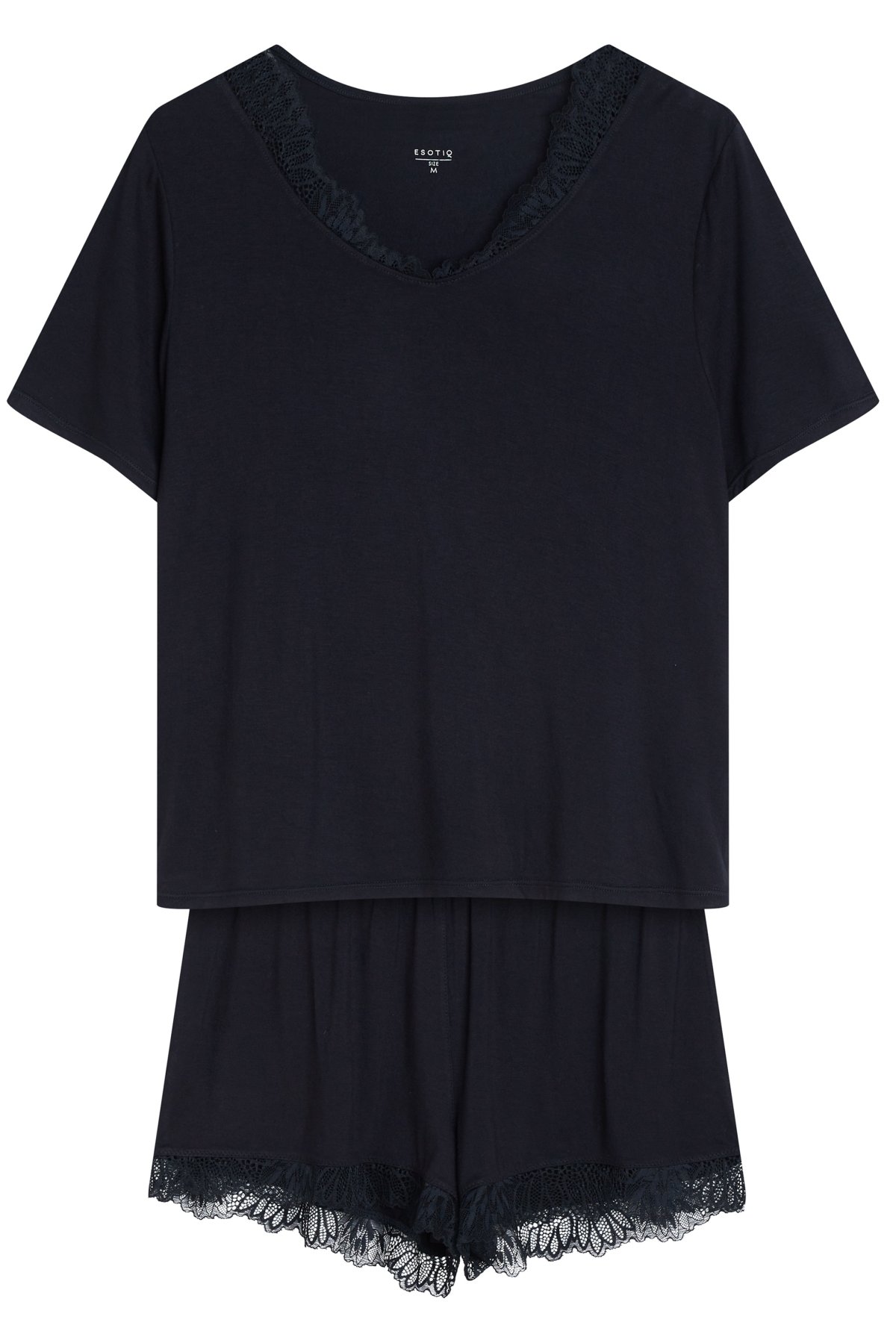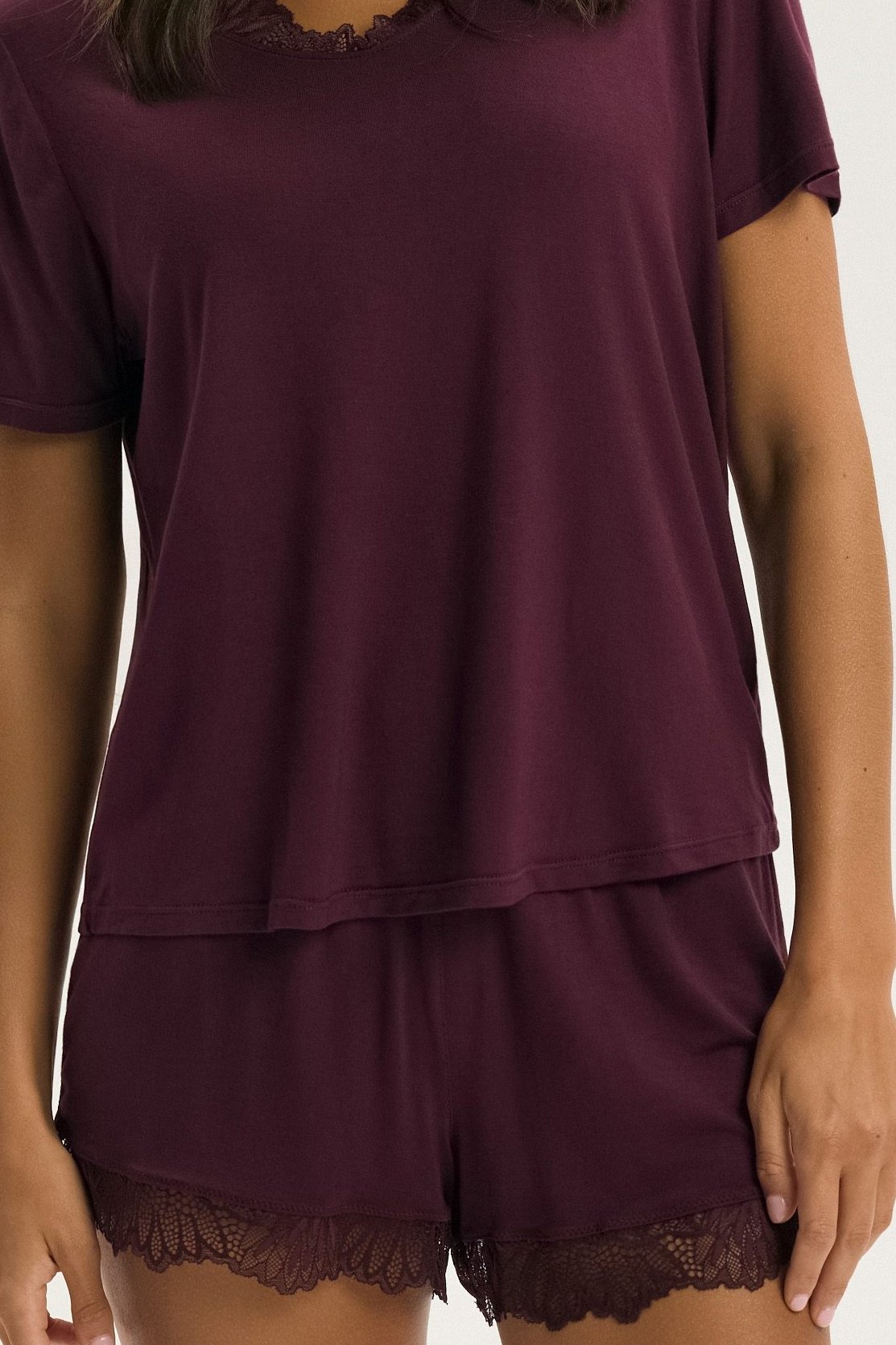 Horní díl s krátkým rukávem a volnějším střihem je doplněn decentní krajkou v dekoltu. Krátké šortky s krajkovým lemem zaručují volnost pohybu a pohodlí během spánku i domácího relaxu. V pase je samozřejmostí pohodlná pružná guma. Pyžamo Canti je ideální pro ženy, které chtějí v noci vypadat stylově, cítit se pohodlně a vychutnat si každý okamžik klidu a pohody.