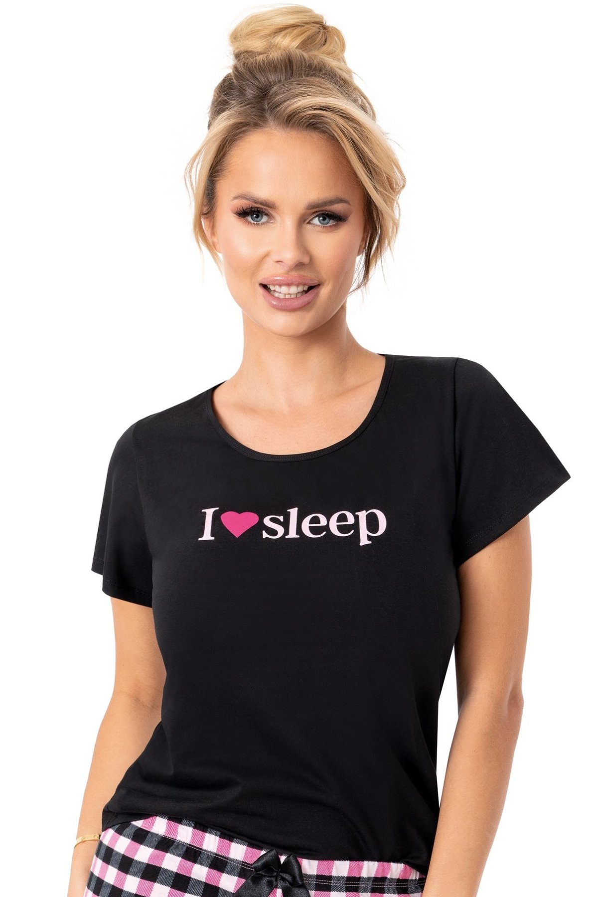 Horní díl je s krátkým rukávem a kulatým výstřihem, decentní potisk u dekoltu dodává stylový akcent. Krátké kostkované šortky v klasickém střihu perfektně ladí s jednobarevným trikem a zajišťují komfort i volnost pohybu. Díky bavlněnému materiálu je pyžamo příjemné k pokožce a prodyšné, takže poskytuje pohodlí nejen při spánku, ale i při večerním relaxu doma. Skvělá volba na teplejší dny.