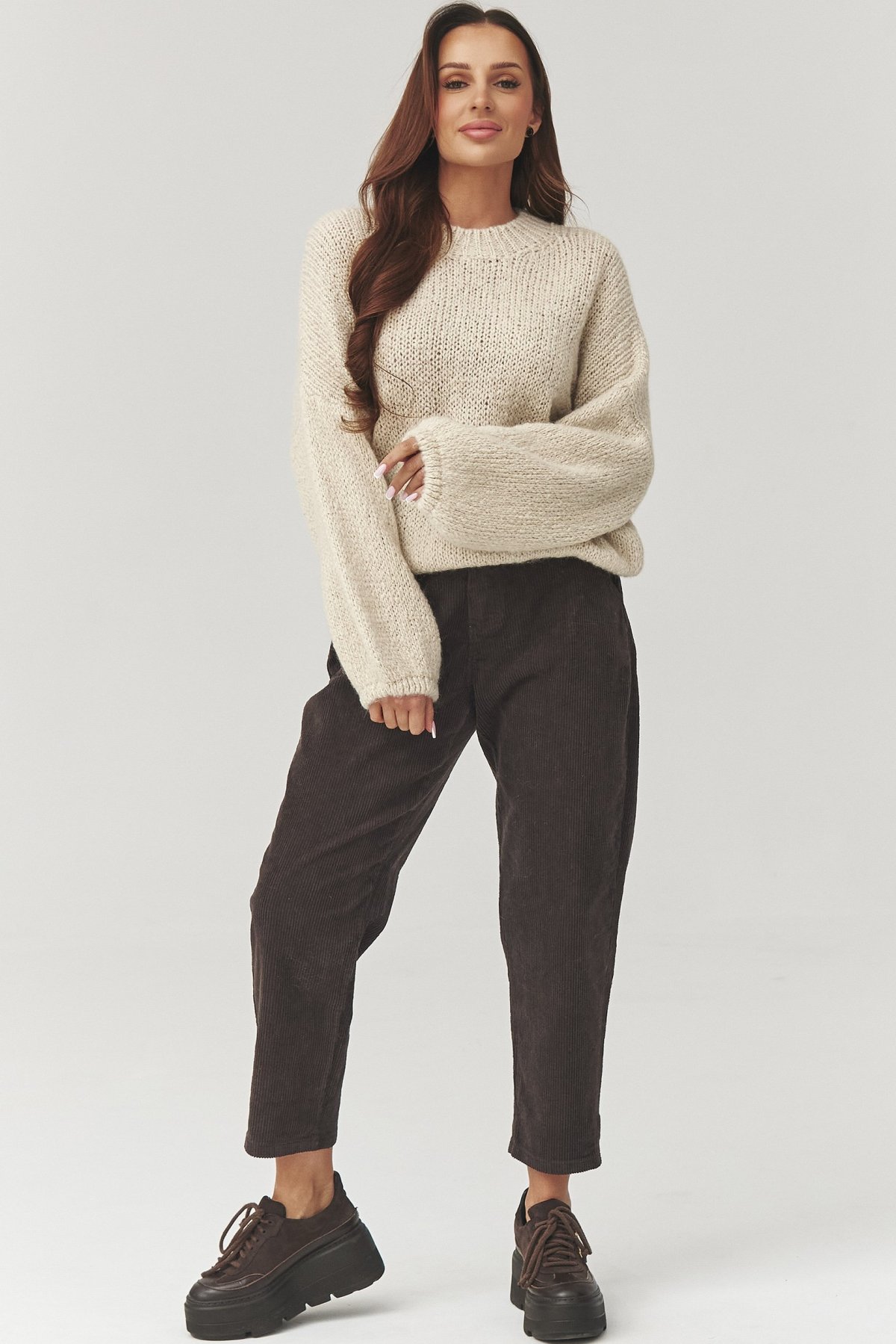 Dámské manšestrové kalhoty C33 - tm. hnědé
