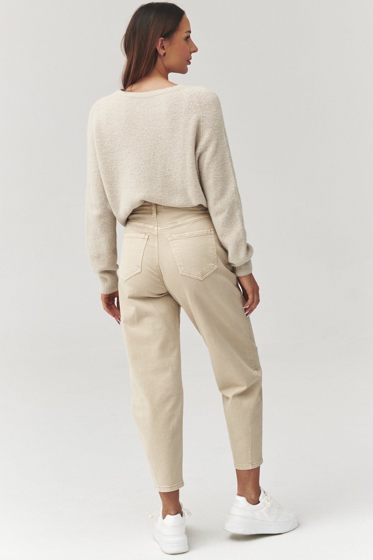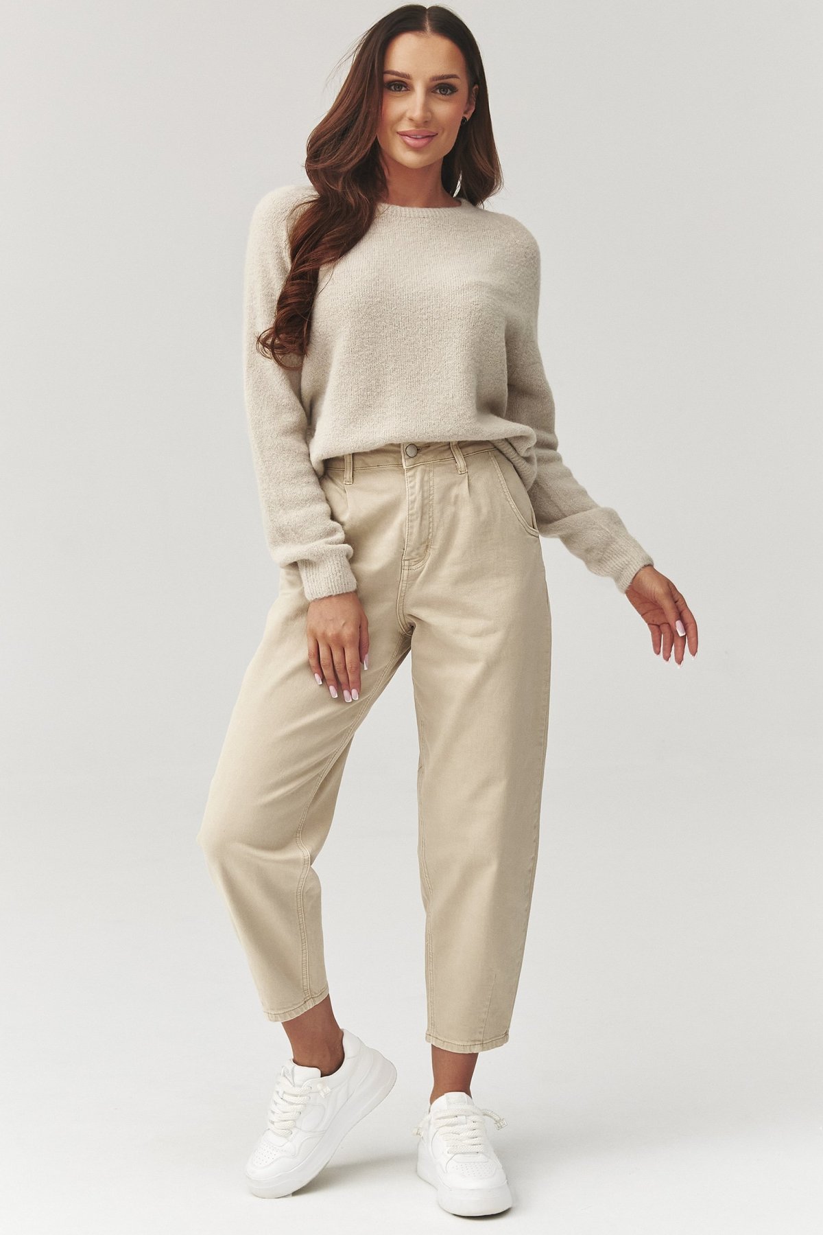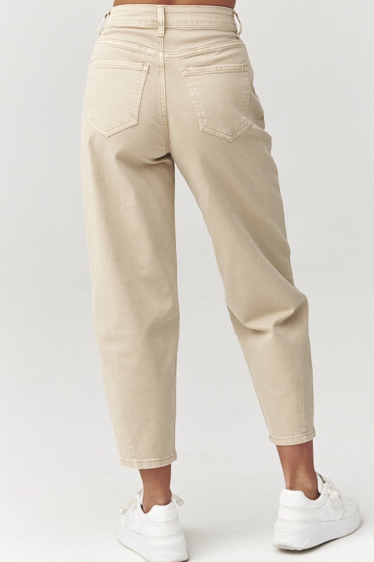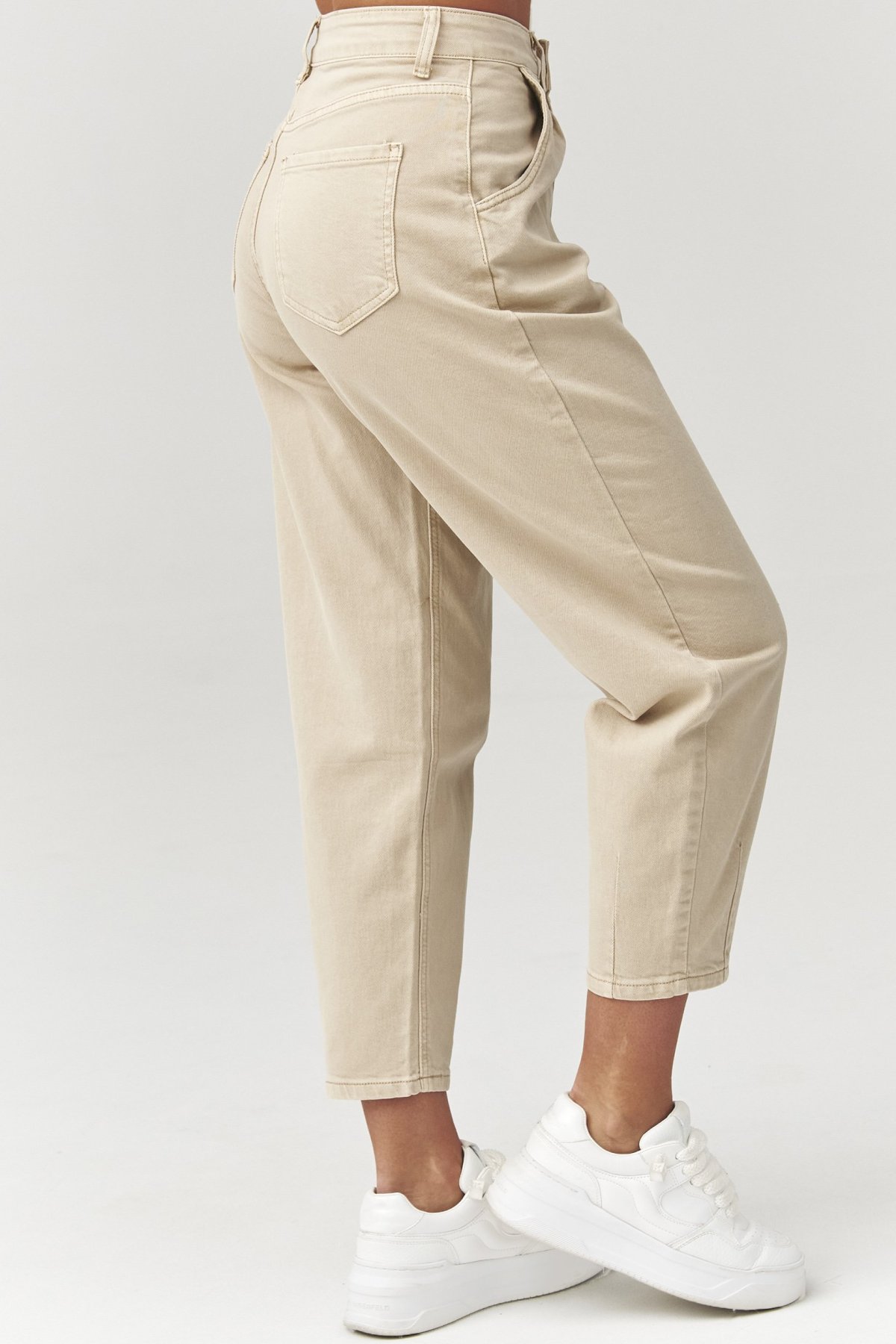 Dámské džíny v béžové barvě jsou synonymem pohodlí a ležérní elegance. Střih mom fit s vysokým pasem krásně zvýrazňuje siluetu a zaručuje volnost pohybu, zatímco zúžené nohavice dodávají outfitu moderní charakter. Vyrobené z kvalitního denimu, který drží tvar a příjemně se nosí po celý den. Díky univerzálnímu bílému odstínu se skvěle kombinují s pastelovými i kontrastními barvami – od basic triček až po elegantní halenky. Ideální volba pro ženy, které hledají stylové džíny na každý den – do práce, na procházku i na neformální setkání.