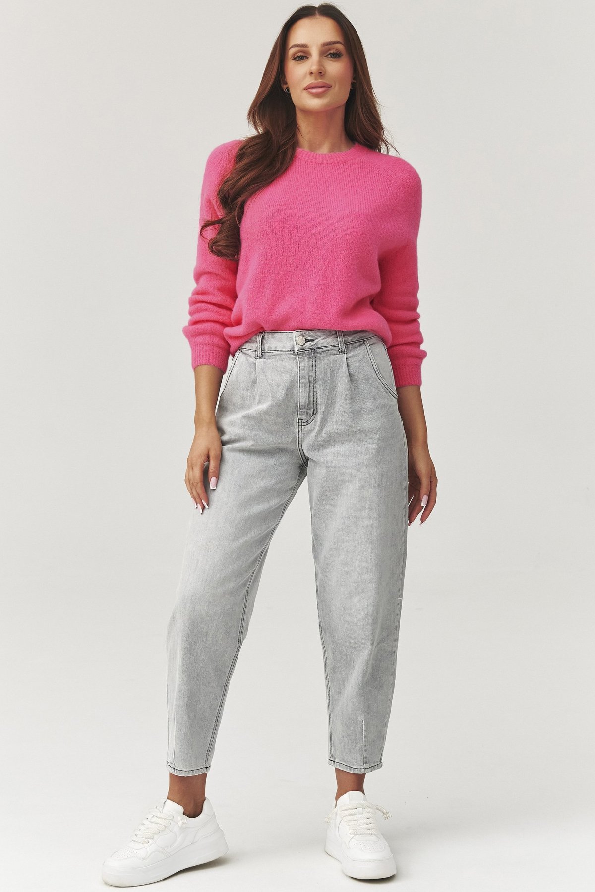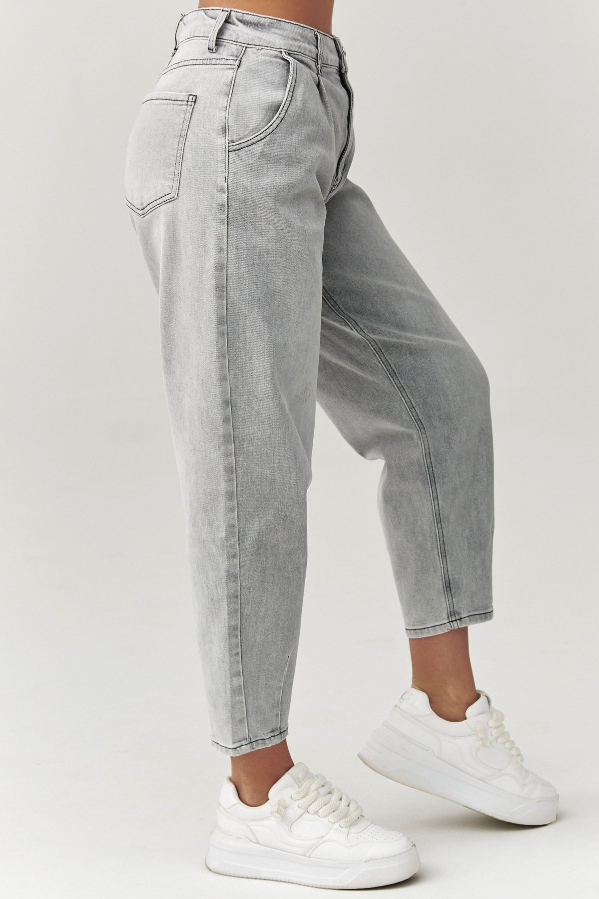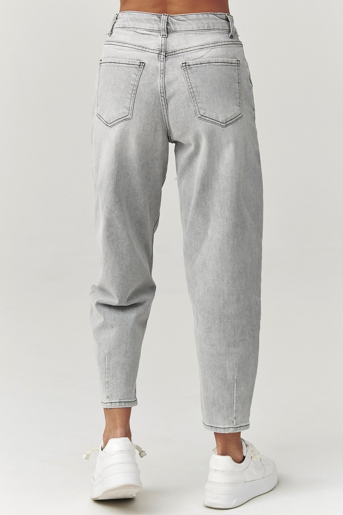 Dámské džíny ve světle šedé barvě jsou synonymem pohodlí a ležérní elegance. Střih mom fit s vysokým pasem krásně zvýrazňuje siluetu a zaručuje volnost pohybu, zatímco zúžené nohavice dodávají outfitu moderní charakter. Vyrobené z kvalitního denimu, který drží tvar a příjemně se nosí po celý den. Díky univerzálnímu bílému odstínu se skvěle kombinují s pastelovými i kontrastními barvami – od basic triček až po elegantní halenky. Ideální volba pro ženy, které hledají stylové džíny na každý den – do práce, na procházku i na neformální setkání.