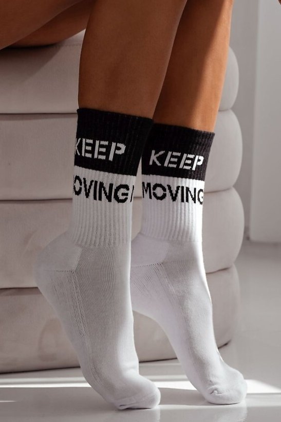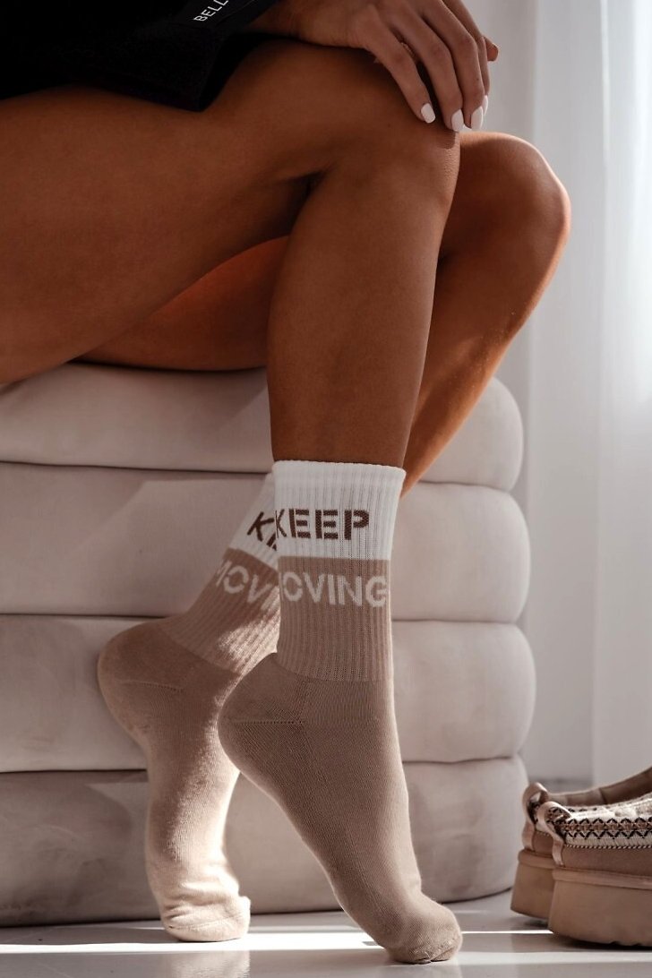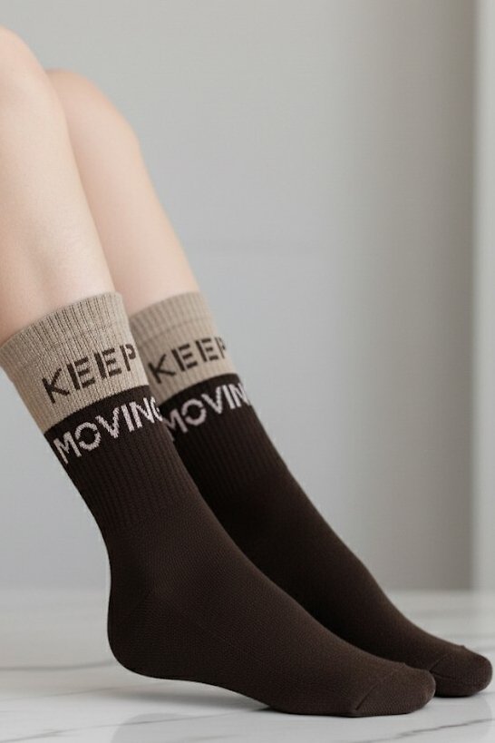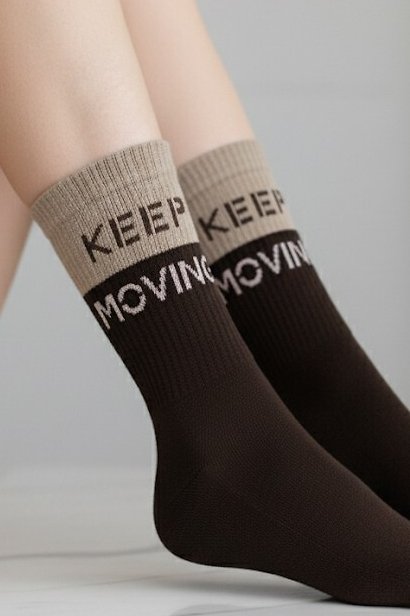 Dámské ponožky jsou ideálním spojením pohodlí, tepla a moderního stylu. Jsou vyrobeny z měkké směsi s vysokým podílem bavlny, která je příjemná na dotek a zároveň dobře odvádí vlhkost. Vnitřní strana chodidla je podšitá hřejivou froté vrstvou, takže ponožky jsou ideální nejen na chladnější dny, ale i na domácí relax. Elastický, neškrtící lem zajistí, že ponožky zůstanou na svém místě po celý den, aniž by tlačily. Dvoubarevný design s motivačním nápisem dodává modelu sportovní i městský šmrnc – skvěle doplní mikinu, legíny..