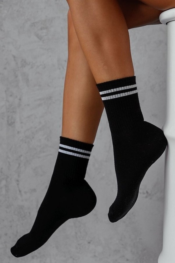 Stylové dámské ponožky s dvojitým kontrastním pruhem představují ideální spojení pohodlí a ležérní elegance. Vyrobené z měkké, prodyšné bavlněné směsi poskytují příjemný pocit při nošení po celý den. Elastický lem zajišťuje stabilní padnutí bez nepříjemného škrcení, zatímco příměs elastanu přispívá k dlouhodobé tvarové stálosti. Tyto ponožky se skvěle hodí jak k teniskám a sportovnímu oblečení, tak i k městským outfitům s šaty nebo šortkami. Praktický a stylový doplněk, který nesmí chybět v šatníku moderní ženy.
