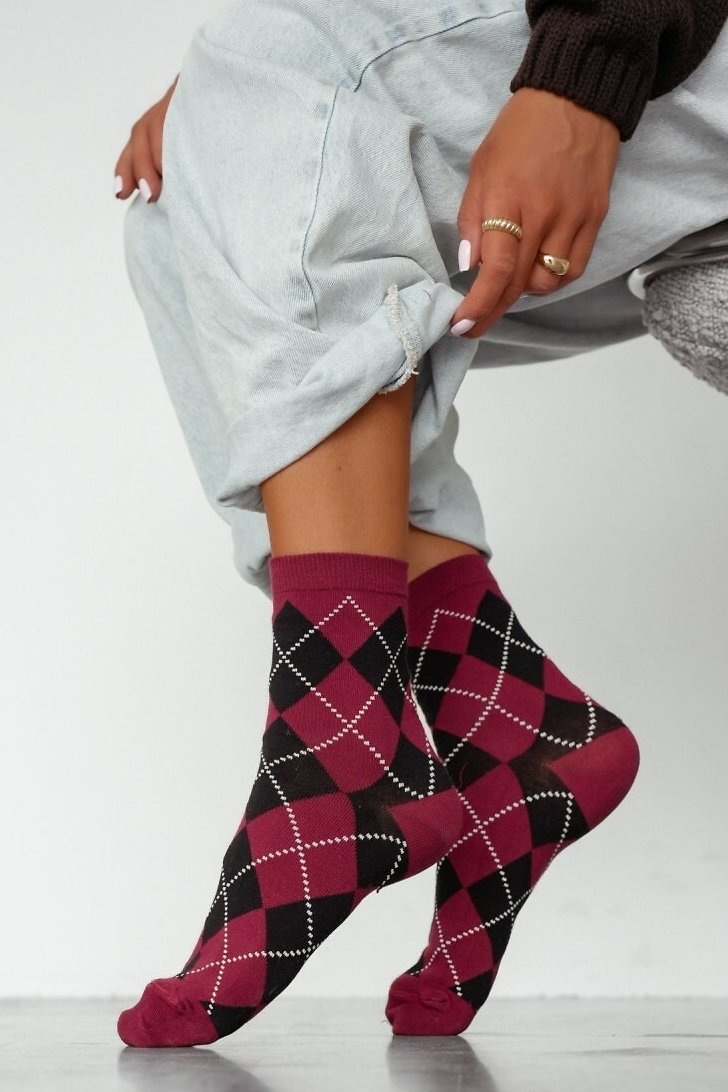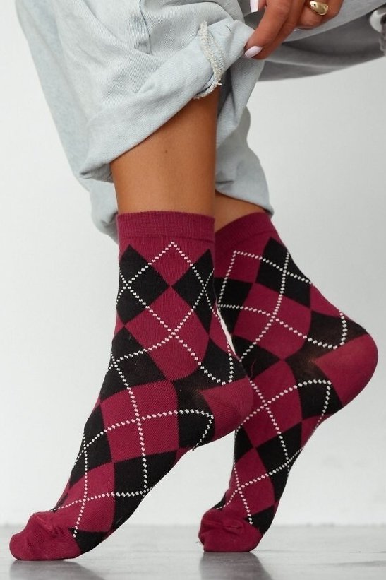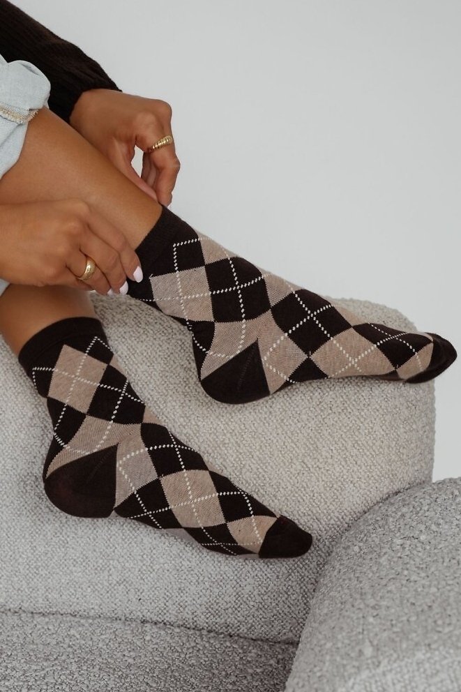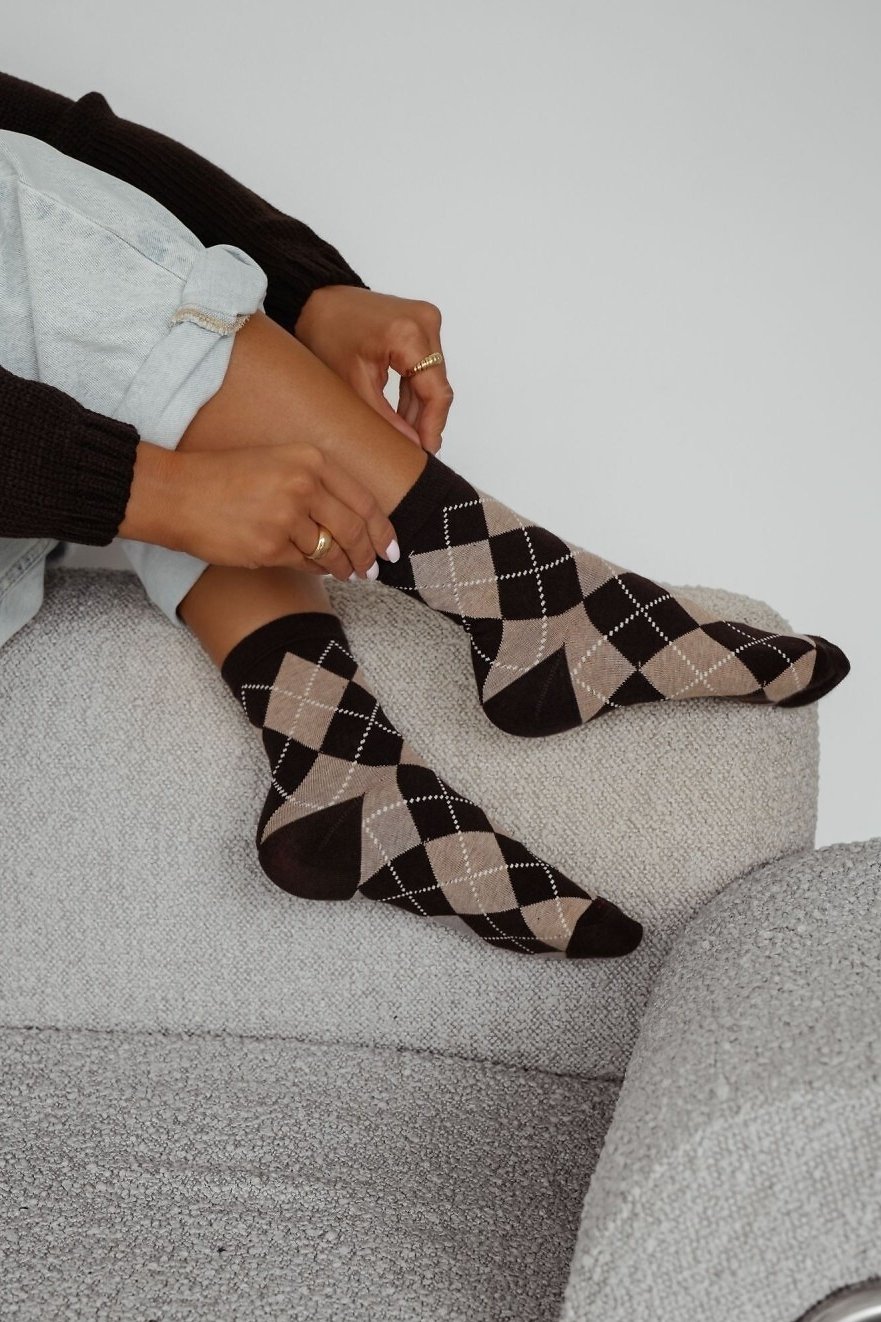 Dámské ponožky s nadčasovým argyle vzorem dodají vašemu outfitu elegantní i hravý nádech. Vyrobené z měkké, prodyšné bavlněné směsi poskytují komfort po celý den a díky příměsi elastanu se dokonale přizpůsobí tvaru nohy. Plochý šev zabraňuje otlakům, zatímco pružný lem drží ponožky na místě bez nepříjemného škrcení. Skvěle se hodí k džínům, mokasínám i domácím outfitům – ideální volba pro ženy, které oceňují pohodlí a klasický design s moderním dotekem.