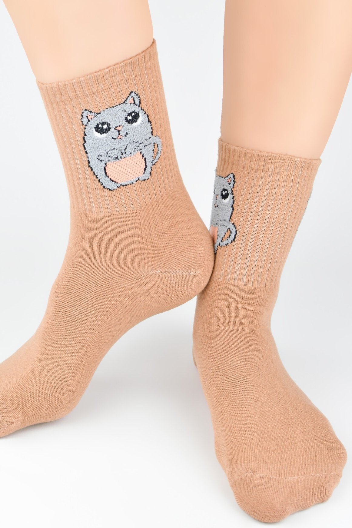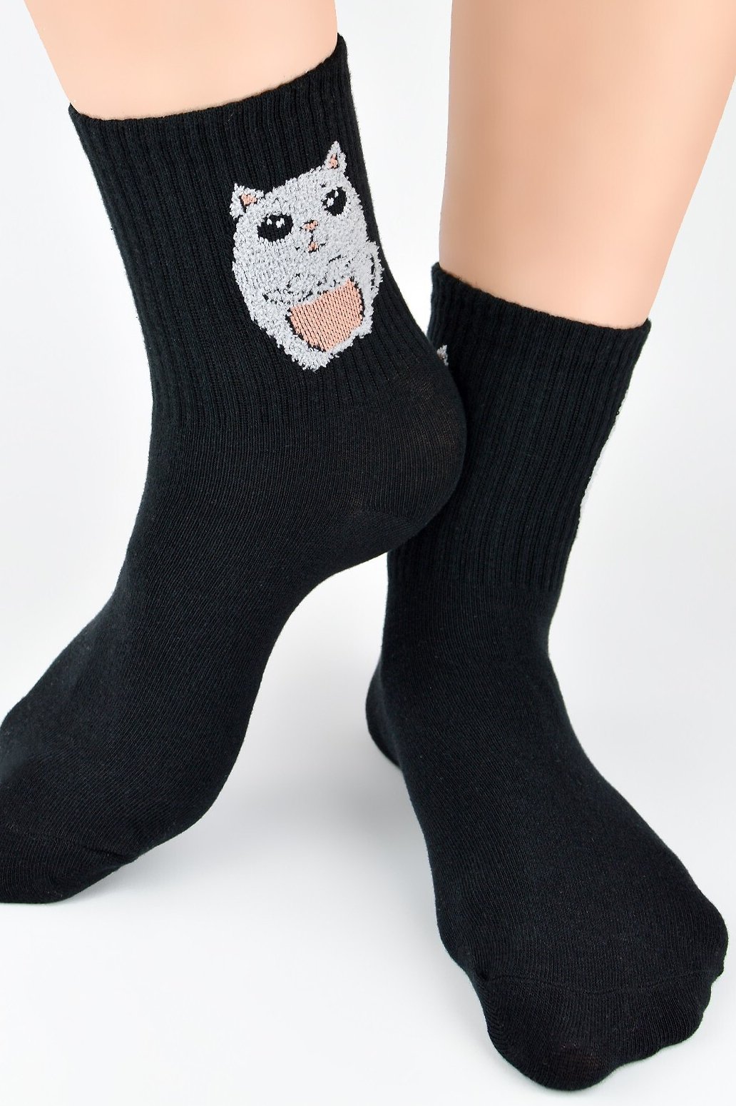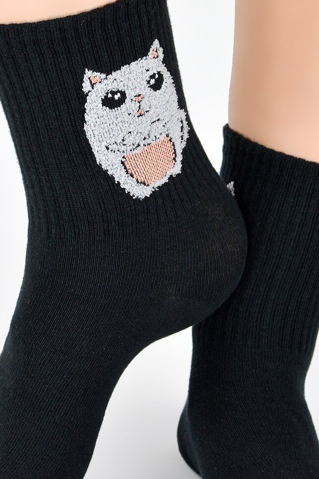 Stylové dámské ponožky z měkké bavlněné směsi zaručí komfortní nošení po celý den. Díky jemnému žebrovanému zakončení dobře drží na noze, aniž by tlačily. Veselý motiv myšky dodává hravý a originální vzhled, který oživí každý outfit. Ploché švy zabraňují otlakům, takže jsou ideální i pro citlivější pokožku. Perfektní volba pro každodenní nošení nebo jako milý dárek, který potěší úsměvem.