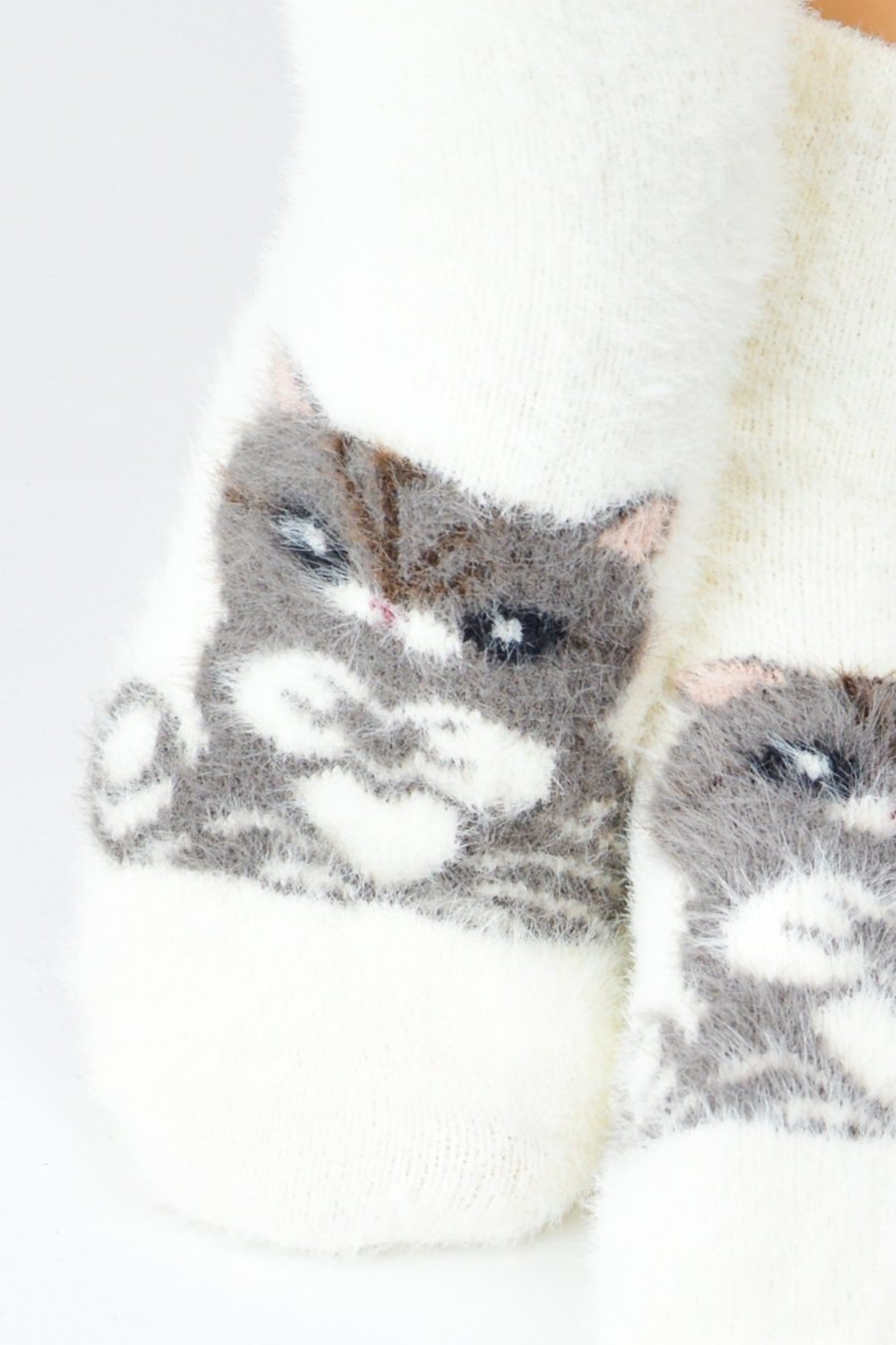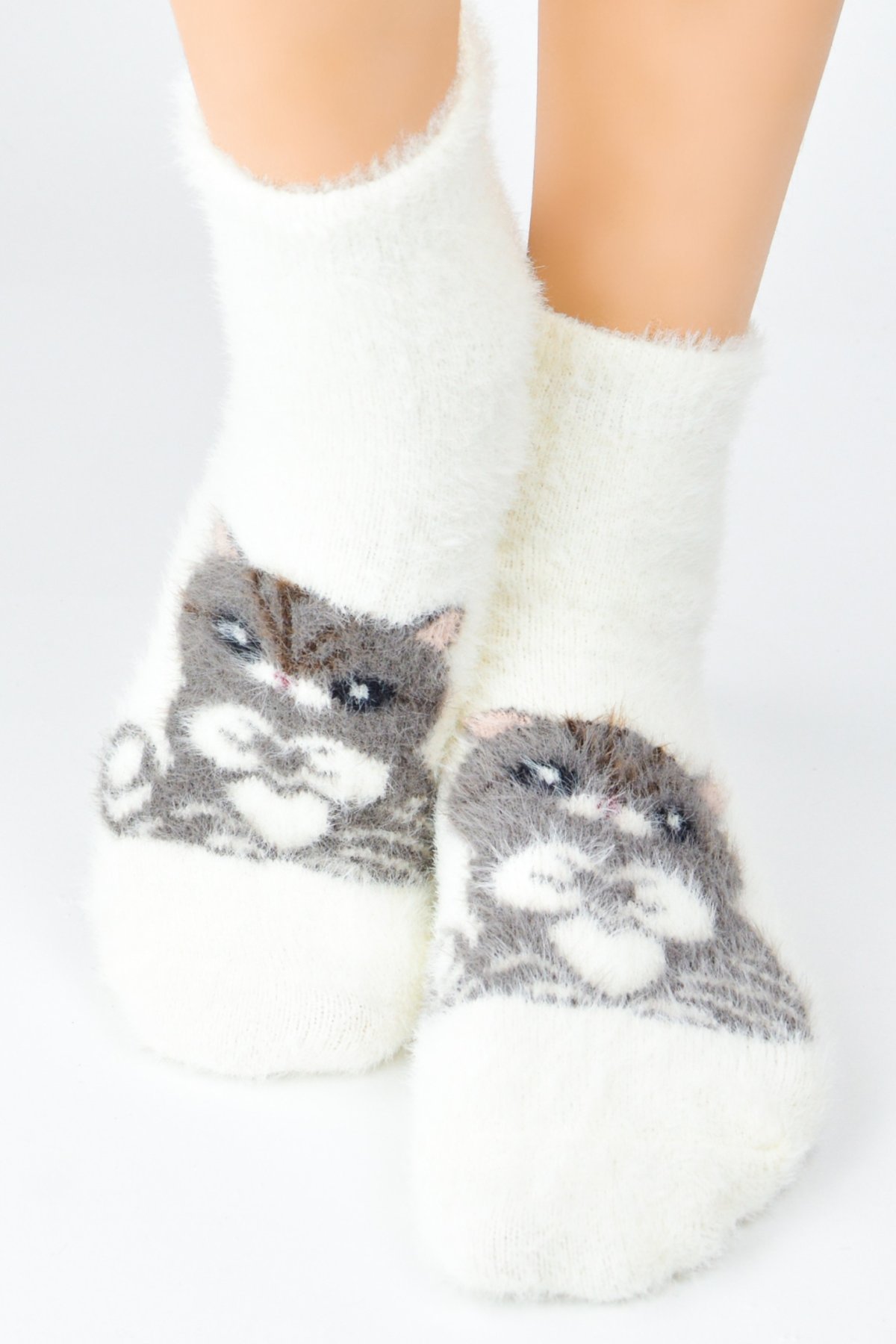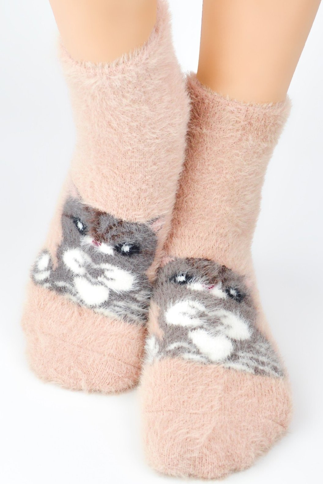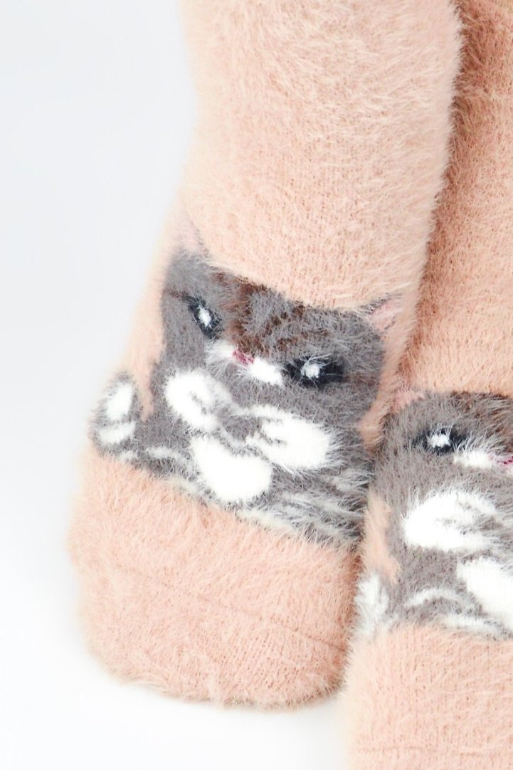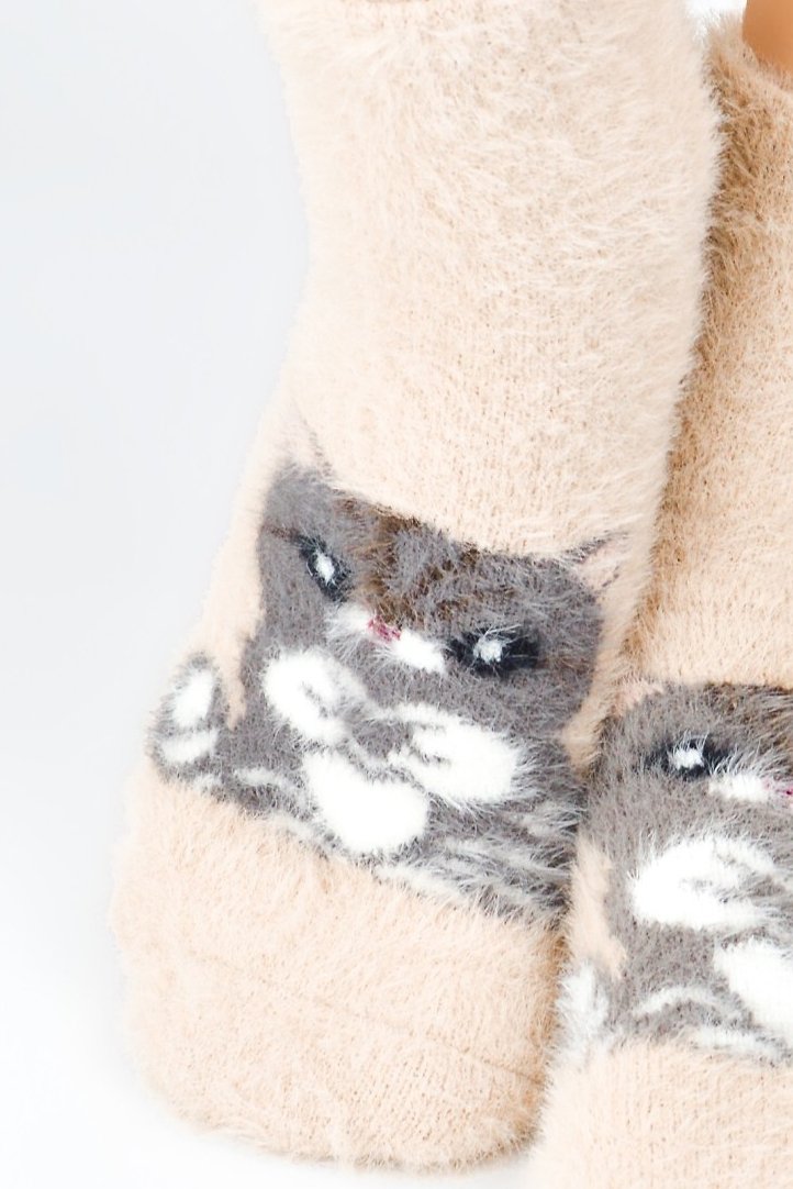 Tyto hebké dámské ponožky s motivem kočičky jsou dokonalou volbou pro chladné dny. Vyrobené z mimořádně měkké, nadýchané pleteniny, která příjemně zahřeje a zajistí pohodlí po celý den. Díky volnému, neškrtícímu lemu perfektně drží na noze, aniž by způsobovaly otlaky.