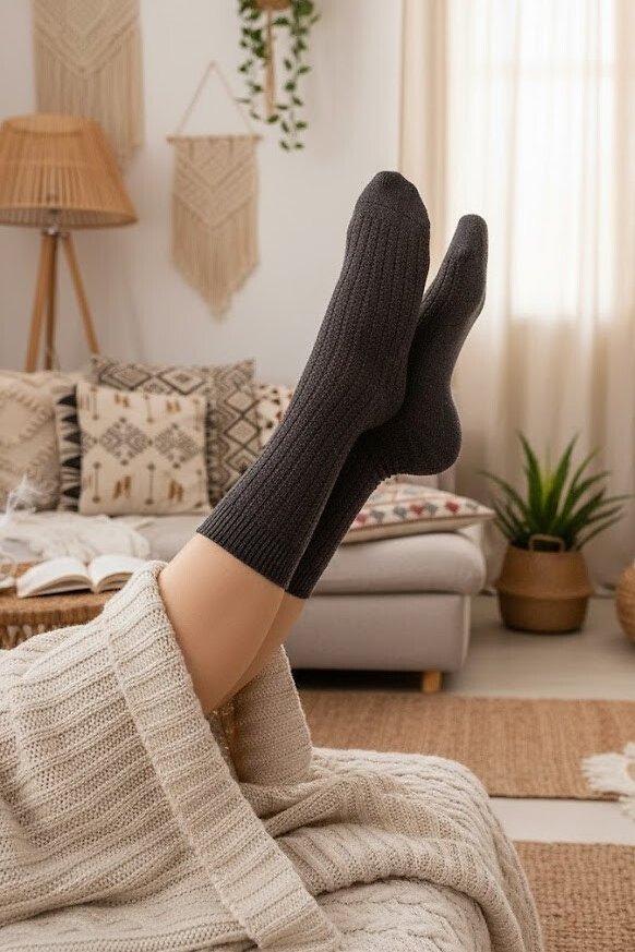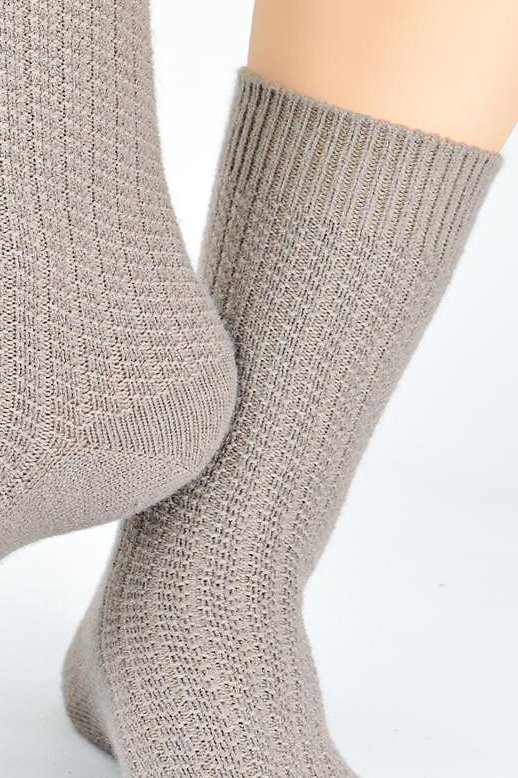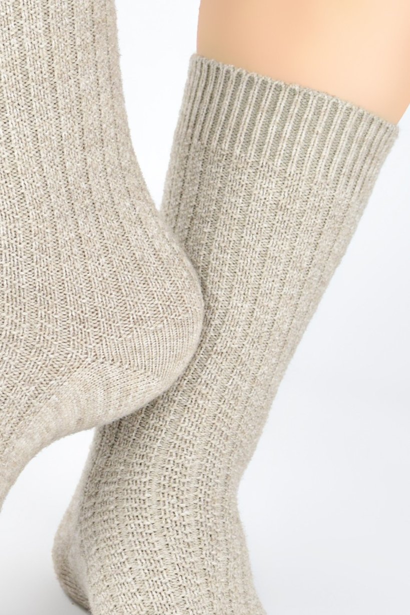 Dámské ponožky, které zaujmou jemnou, měkkou strukturou a pruhovaným žakárovým vzorem. Díky směsi akrylu, polyamidu a vlny poskytují příjemné teplo a měkkost při každém kroku. Plochý šev a neškrtící lem se postarají o pohodlí i při delším nošení. Skvěle doplní domácí i zimní outfit, ať už do bot, nebo na relax doma.
