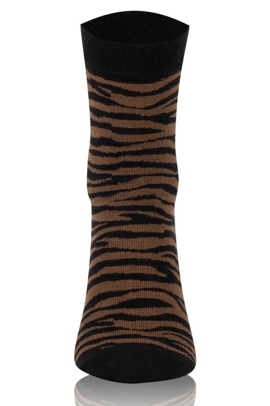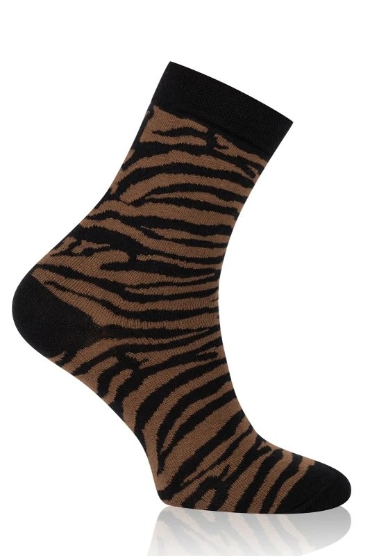 Dlouhé ponožky s originálním vzorem zebry v hnědo-černém provedení