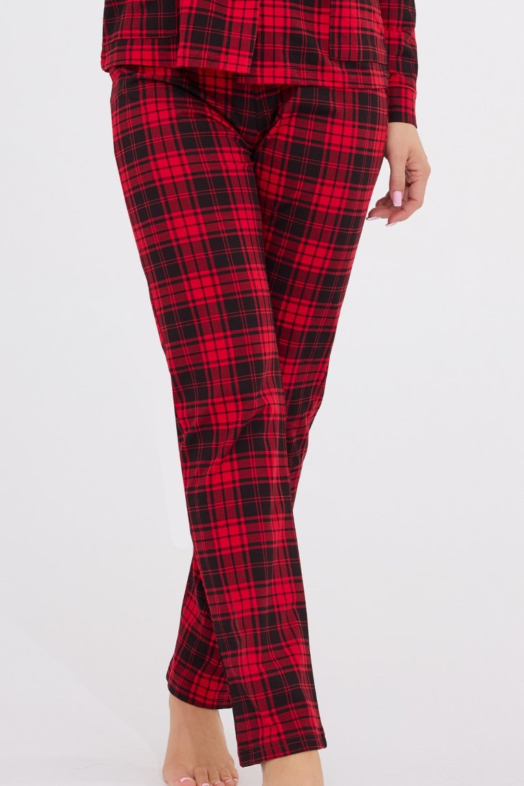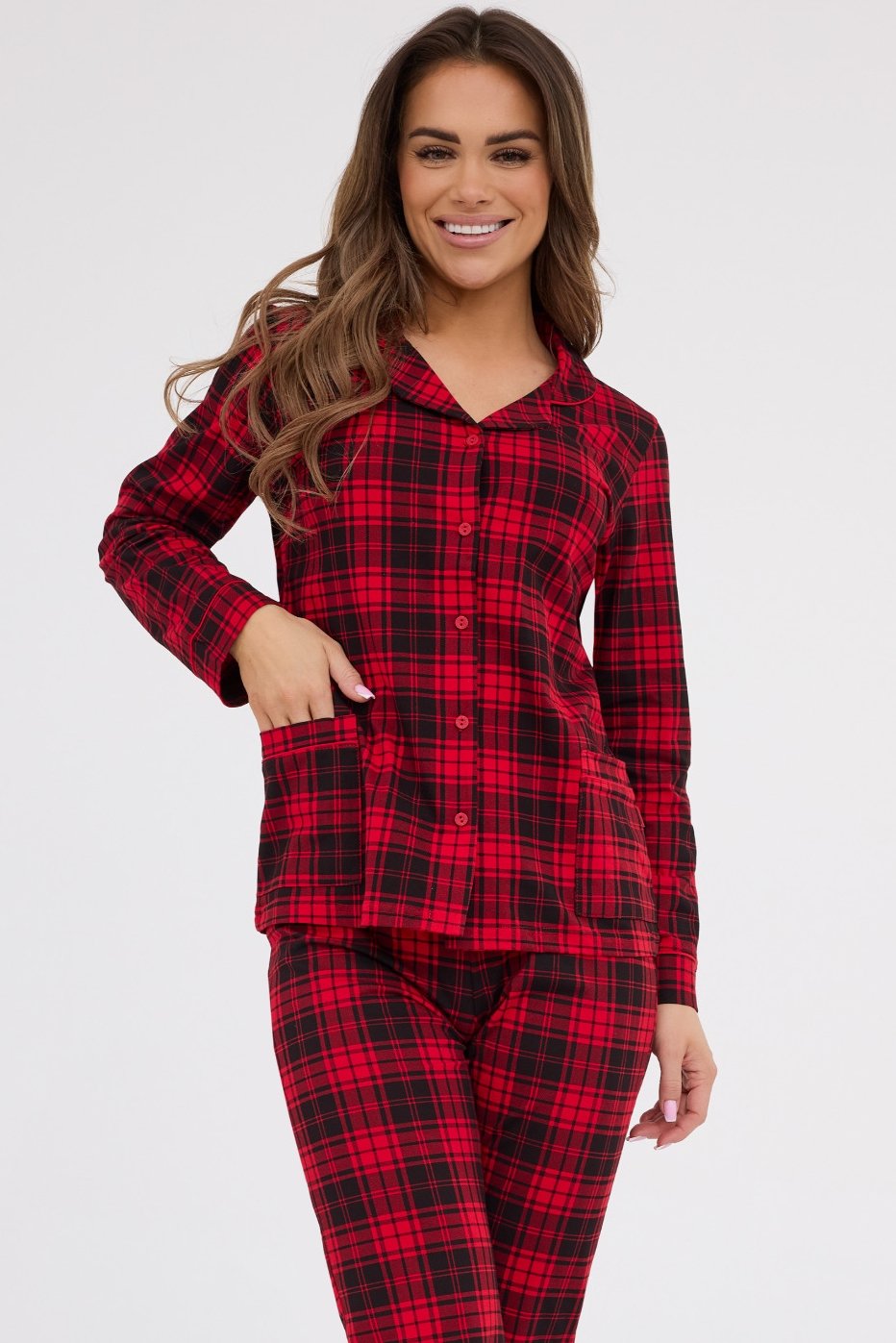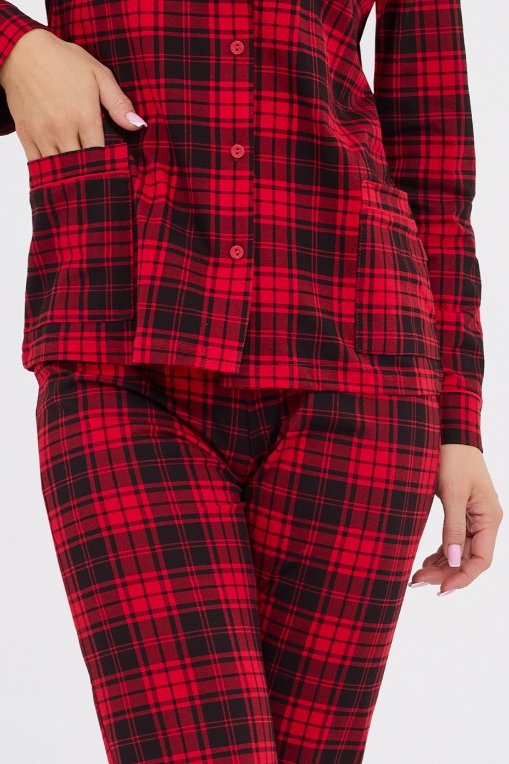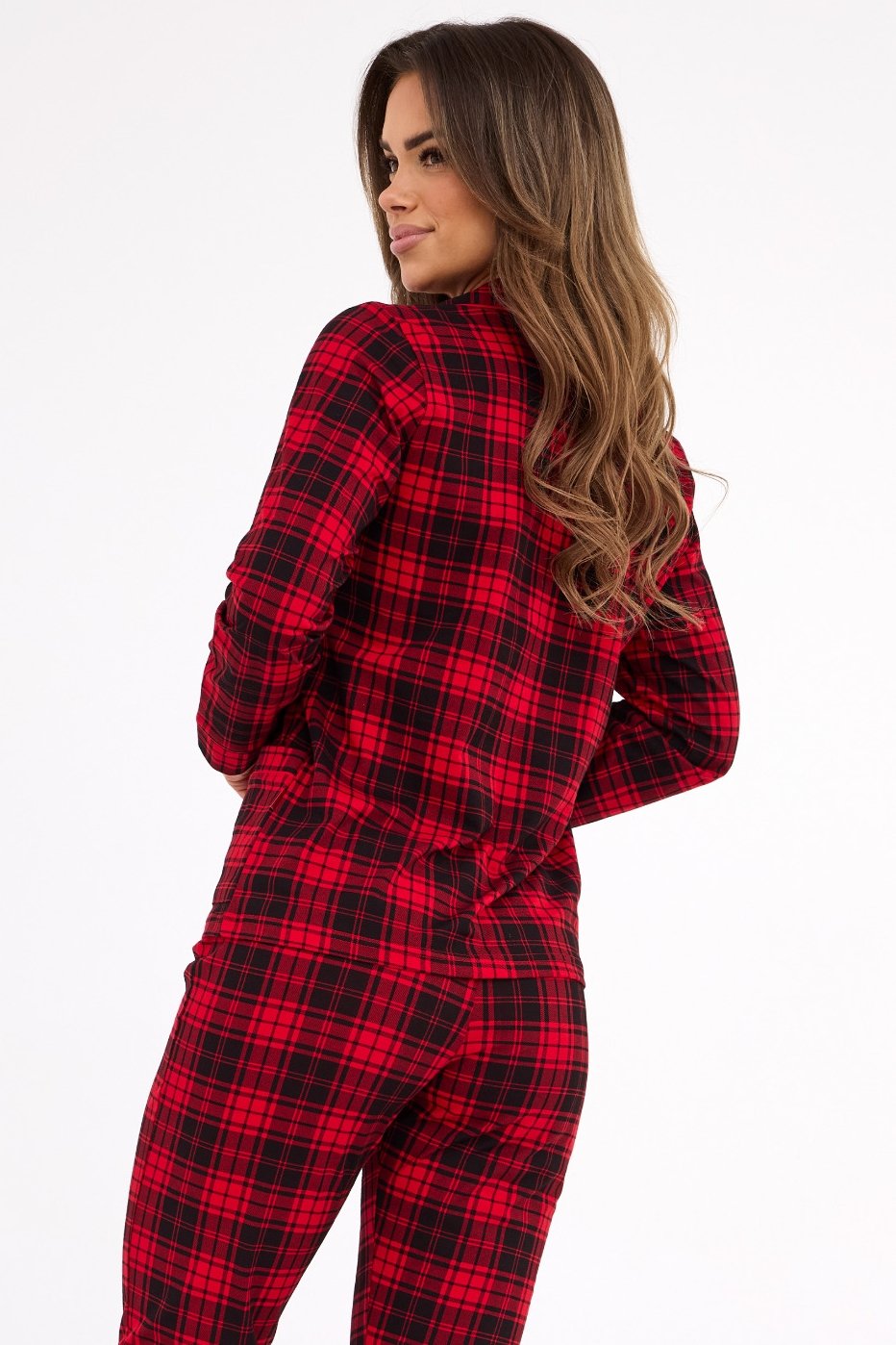 Horní díl ve stylu košile s límečkem působí stylově a díky celopropínacímu zapínání na knoflíky je velmi pohodlný při oblékání. Kostkovaný vzor dodává pyžamu nadčasový charakter a podtrhuje jeho klasický vzhled. Dlouhé kalhoty s elastickým pasem poskytují maximální komfort při nošení a neomezují v pohybu.