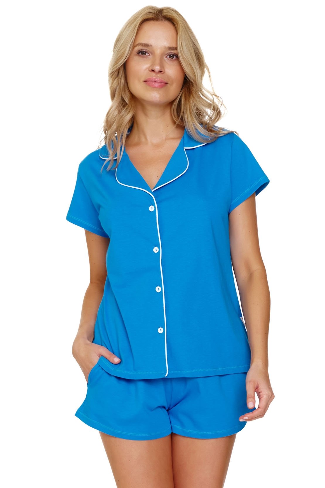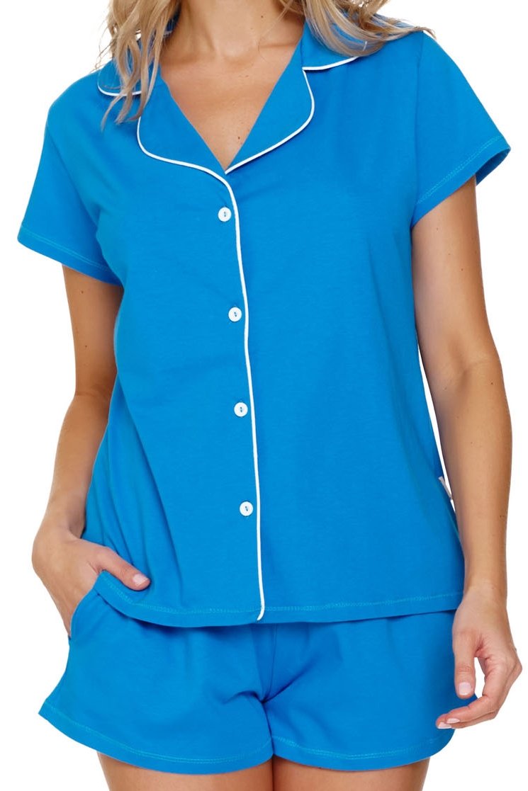 Dámské pyžamo, které zaujme svou kombinací elegance, pohodlí a šetrnosti k přírodě. Vyrobené z organické bavlny, která je měkká, prodyšná a šetrná i k citlivé pokožce. Horní díl s krátkým rukávem, knoflíkovým zapínáním a límečkem působí elegantně a nadčasově, krátké šortky s kapsami zajišťují maximální pohodlí. Kontrastní lemování dodává celému modelu stylový akcent. Pyžamo je ideální pro ženy, které si potrpí na kvalitní materiály, ženský vzhled a precizní zpracování. Perfektní také jako dárek – elegantní, ekologické a mimořádně příjemné na nošení.
