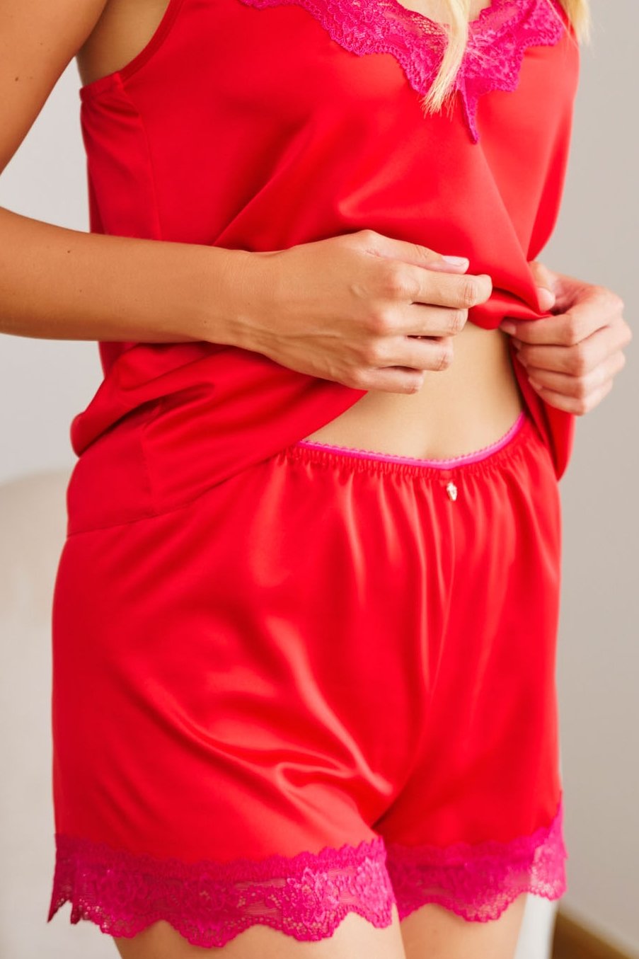 - dámské saténové pyžamo – top na ramínkách a krátké šortky