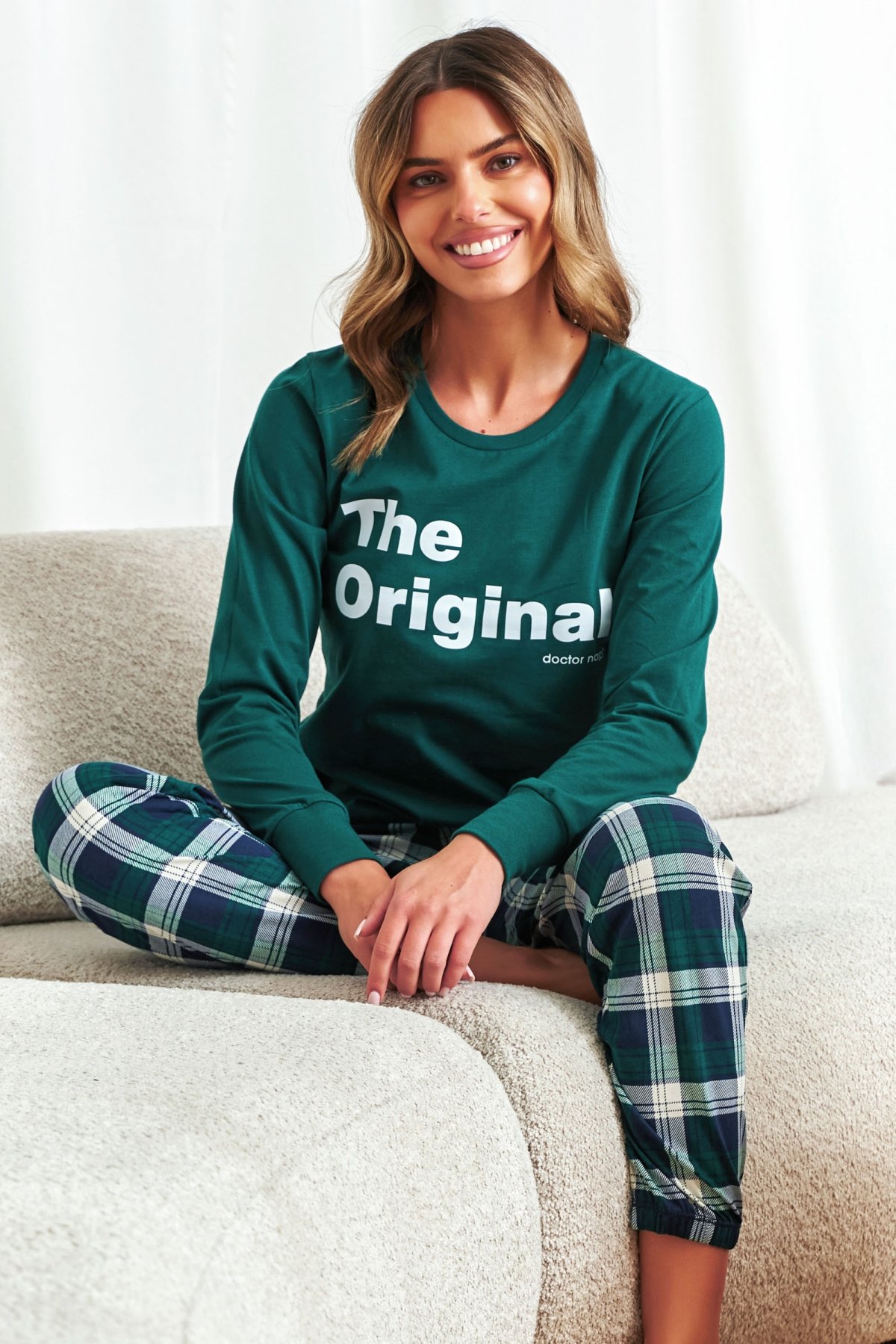 pánské pyžamo z měkké 100% bavlny triko s dlouhým rukávem a potiskem „The Original“ kostkované kalhoty s pružnou gumou…
